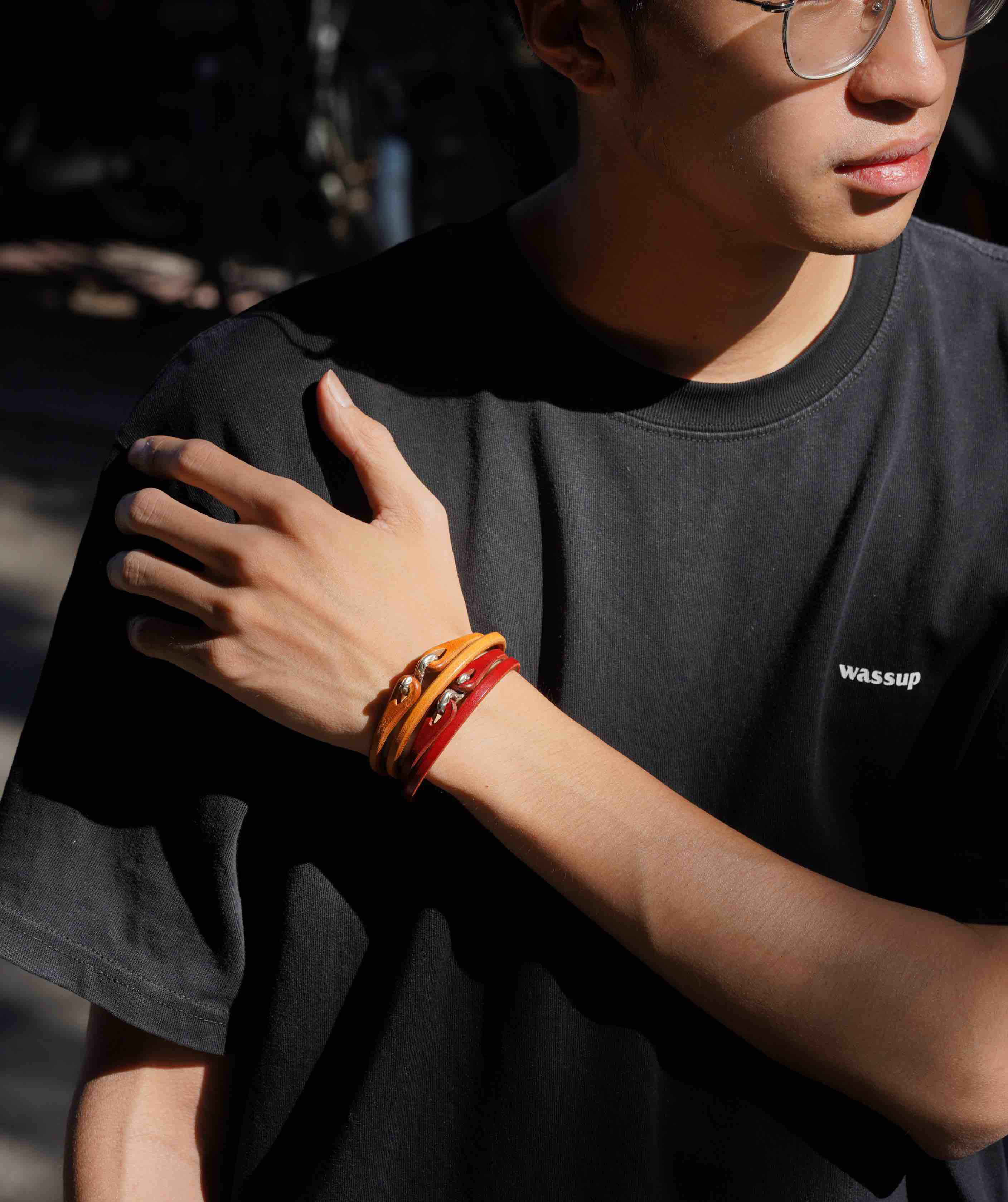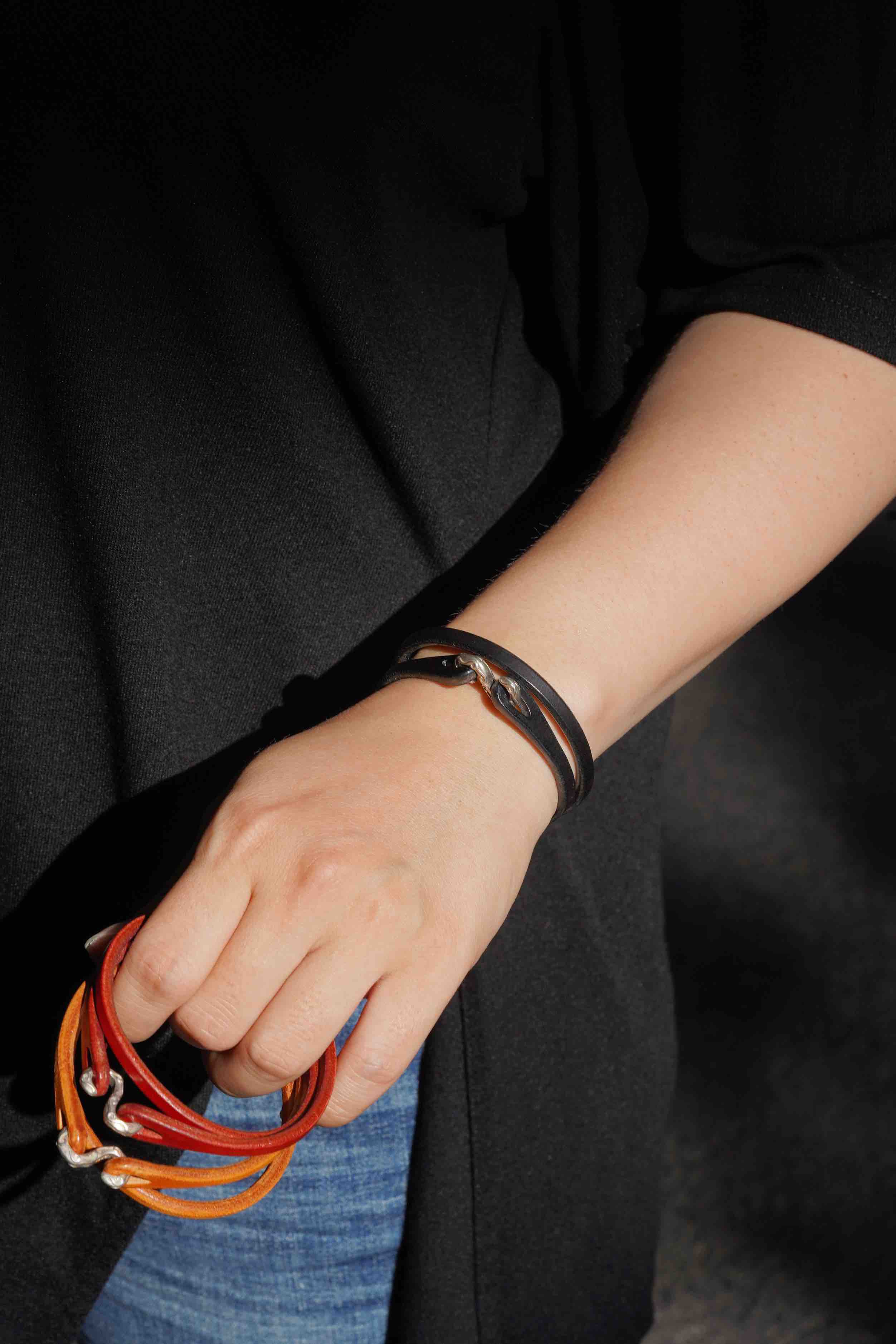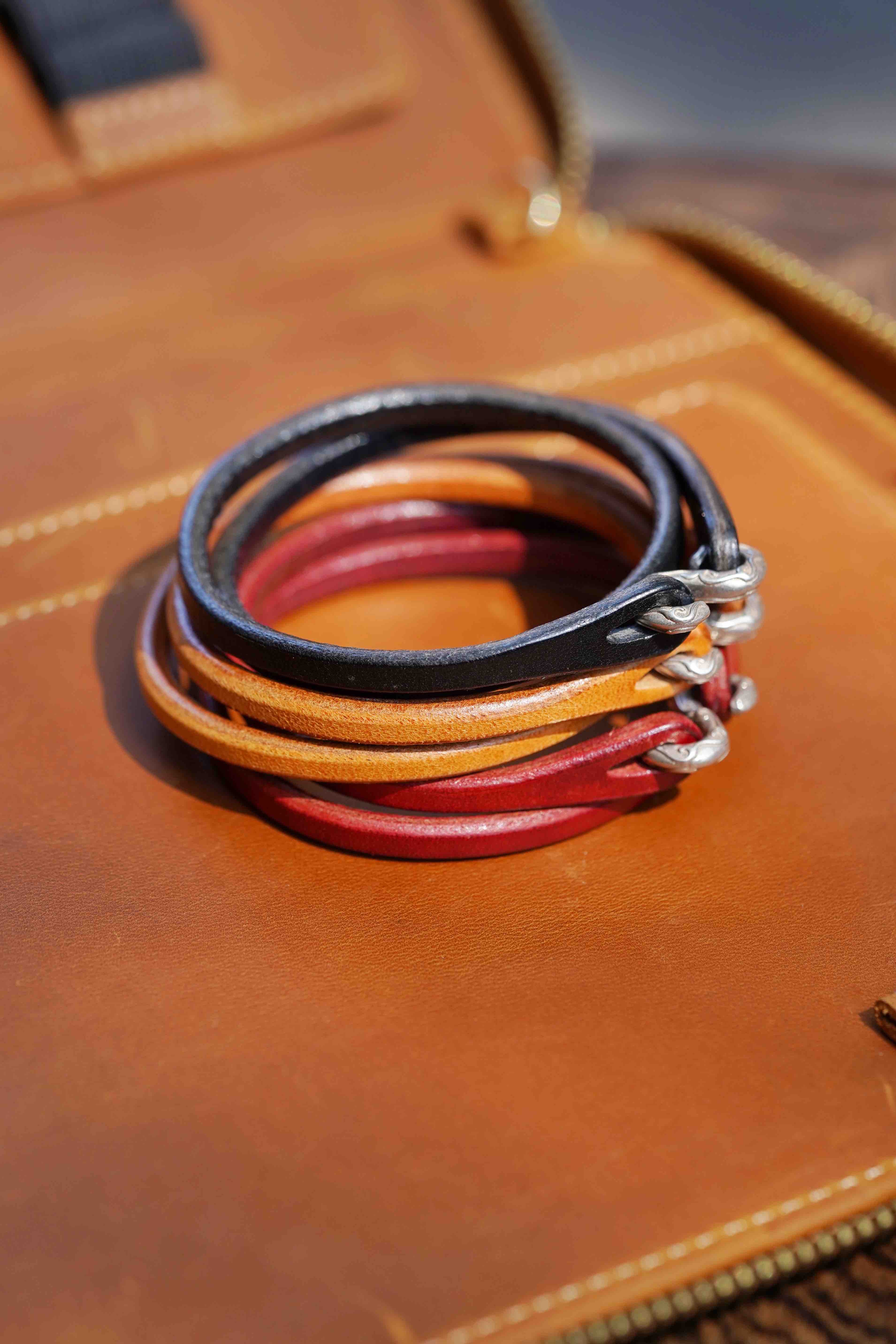 甚至可以上手戴两个不同颜色也好看,皮质的作品夏日就特别有力量感。