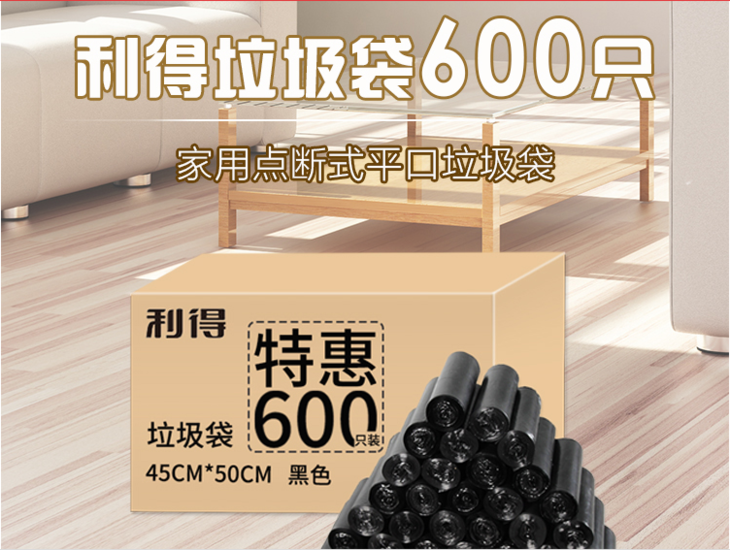 一张魅力红酒卡+利得家用办公经济款600只垃圾袋 45*50cm(平口黑色)-CG