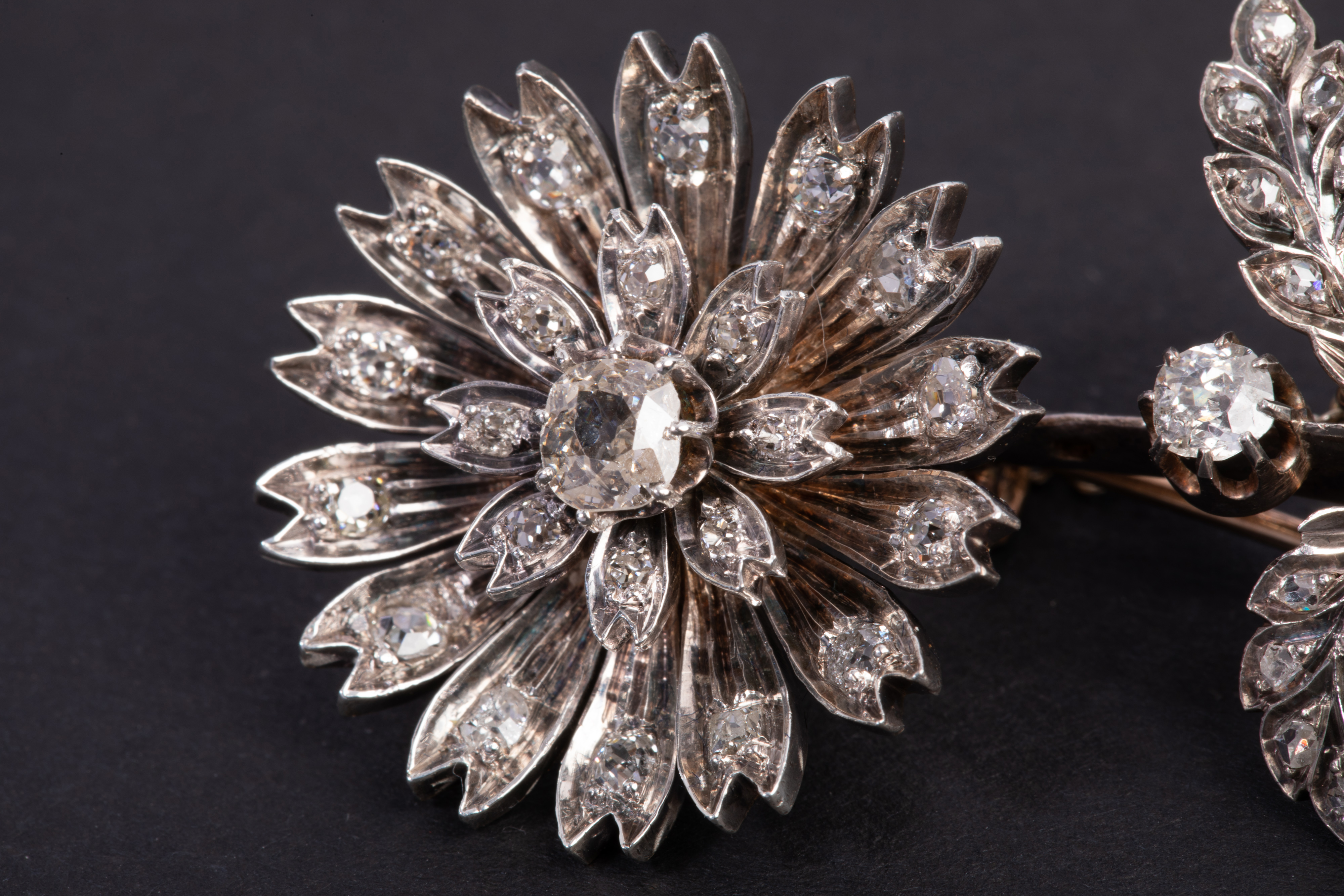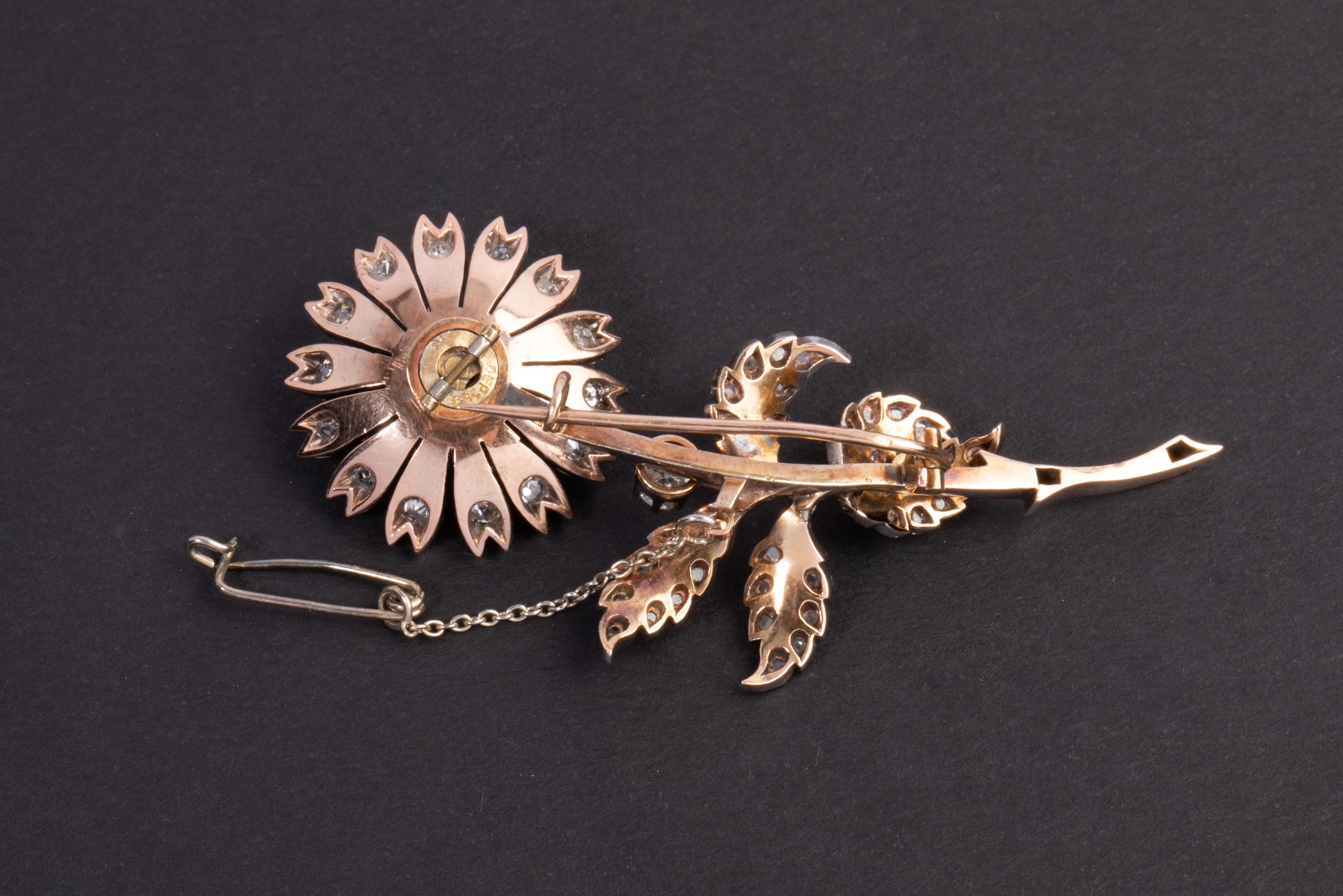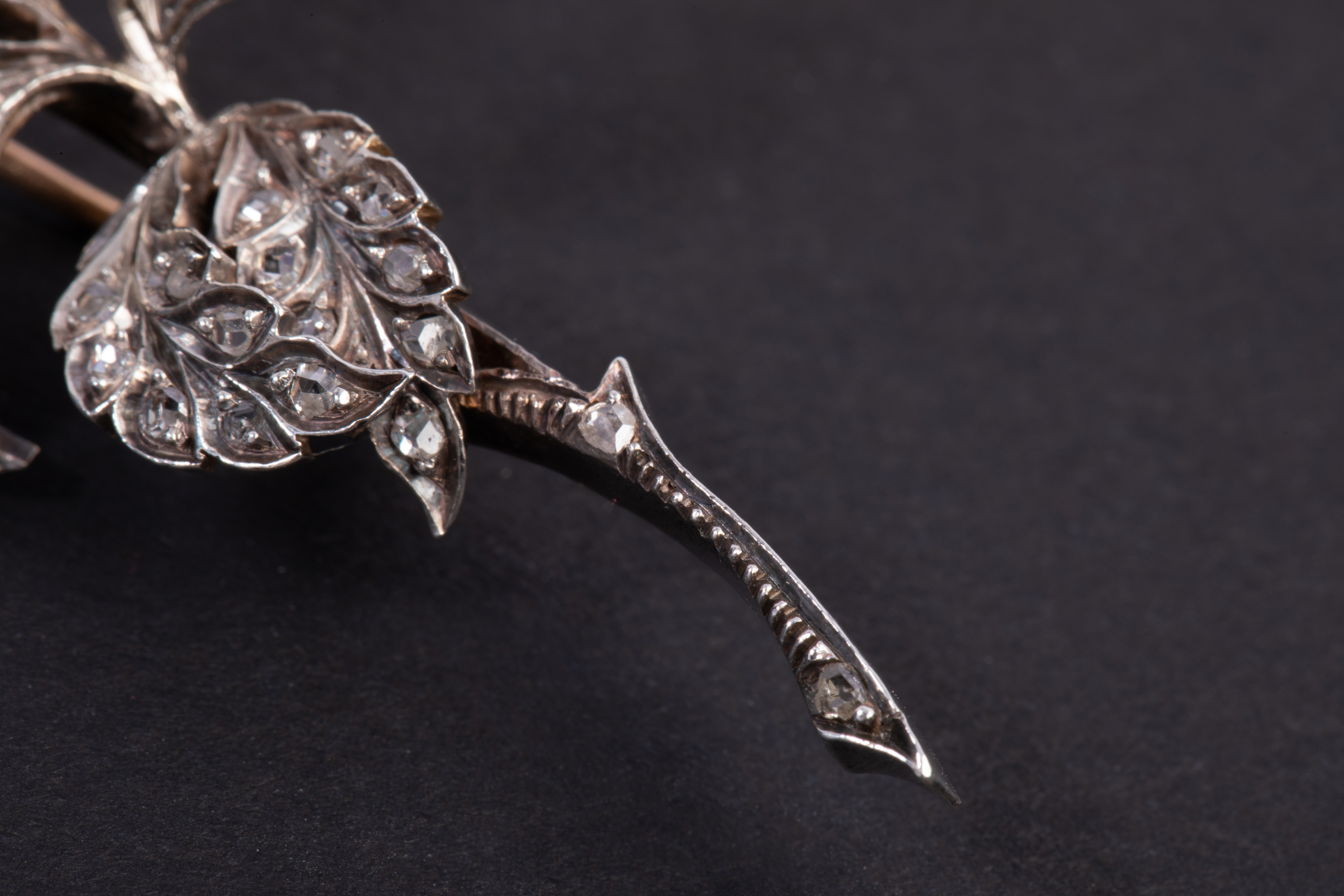 独角鹿西洋古董珠宝首法国18k金银镶嵌钻石玫瑰切钻石颤抖花胸针