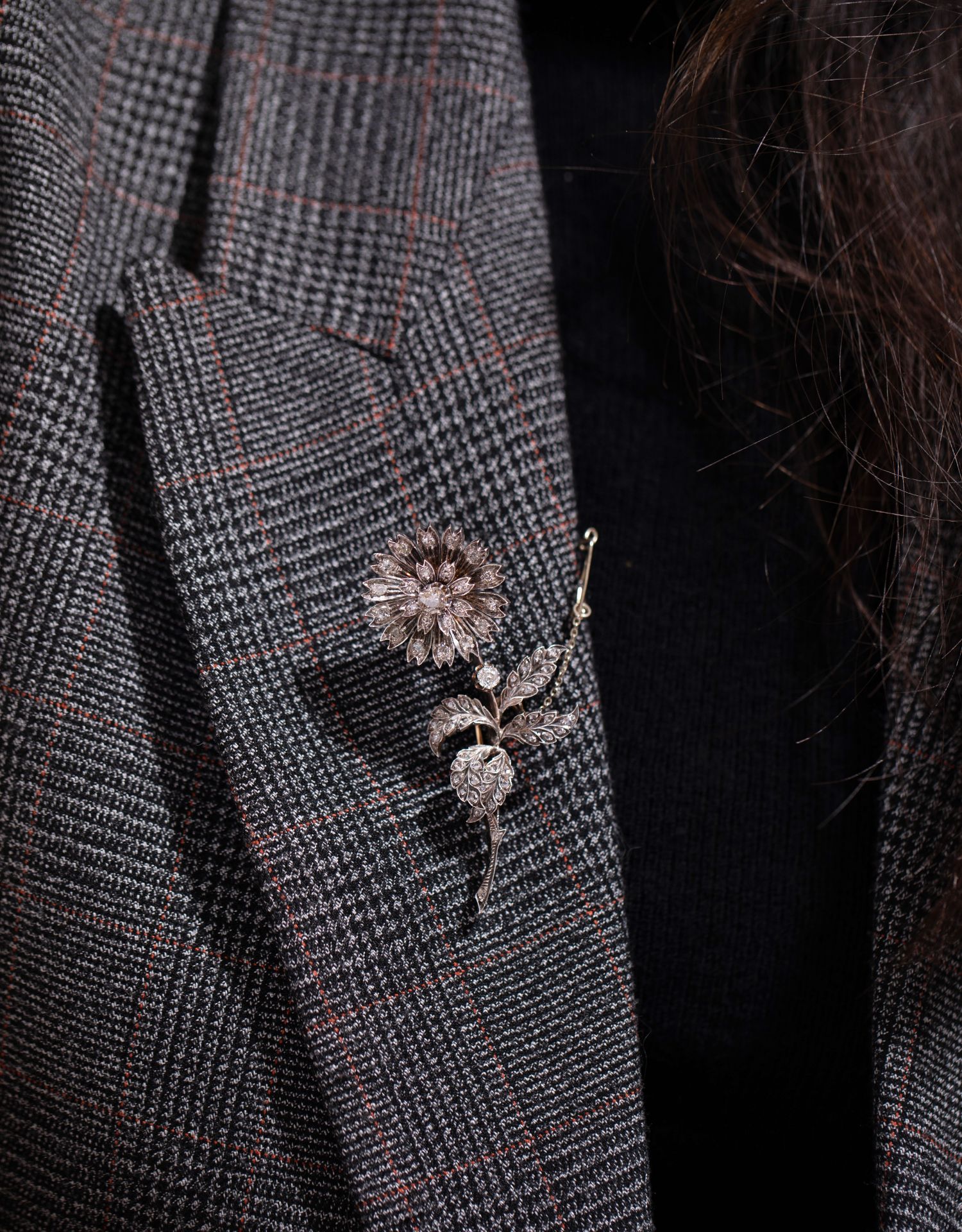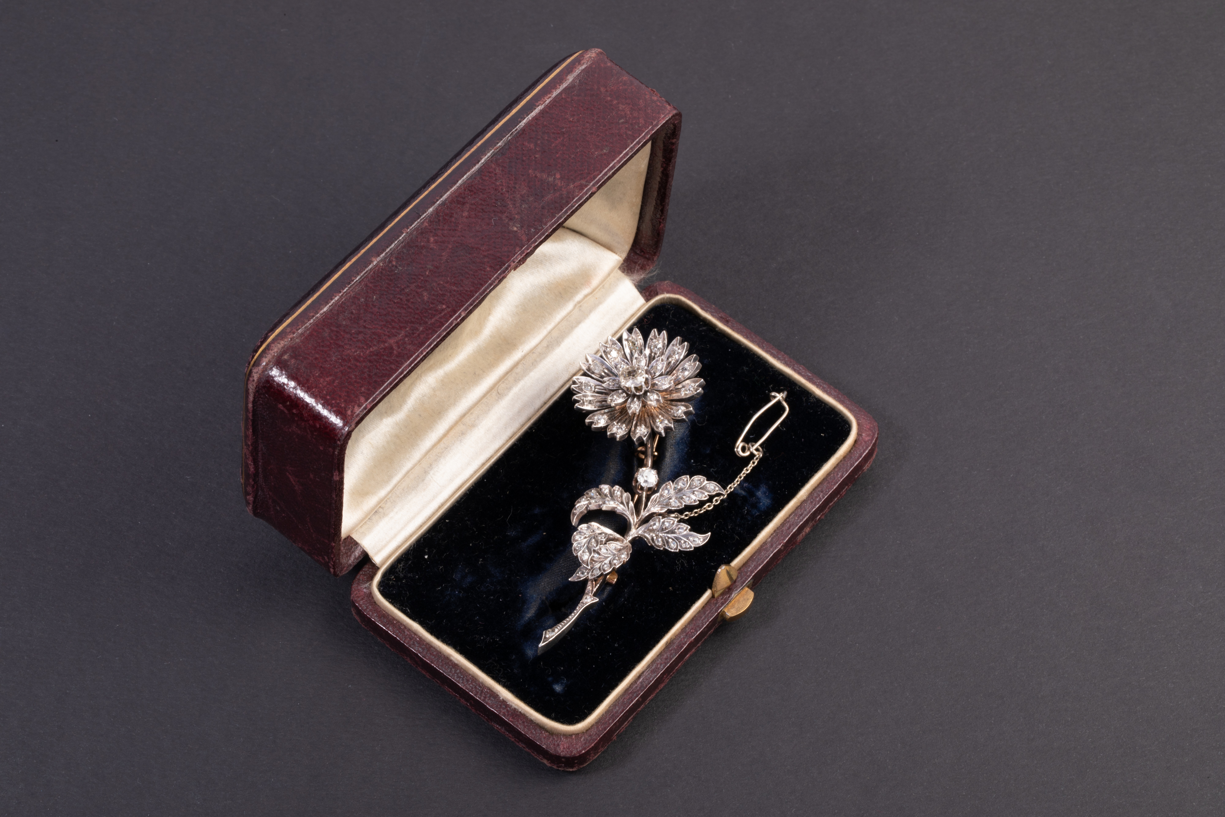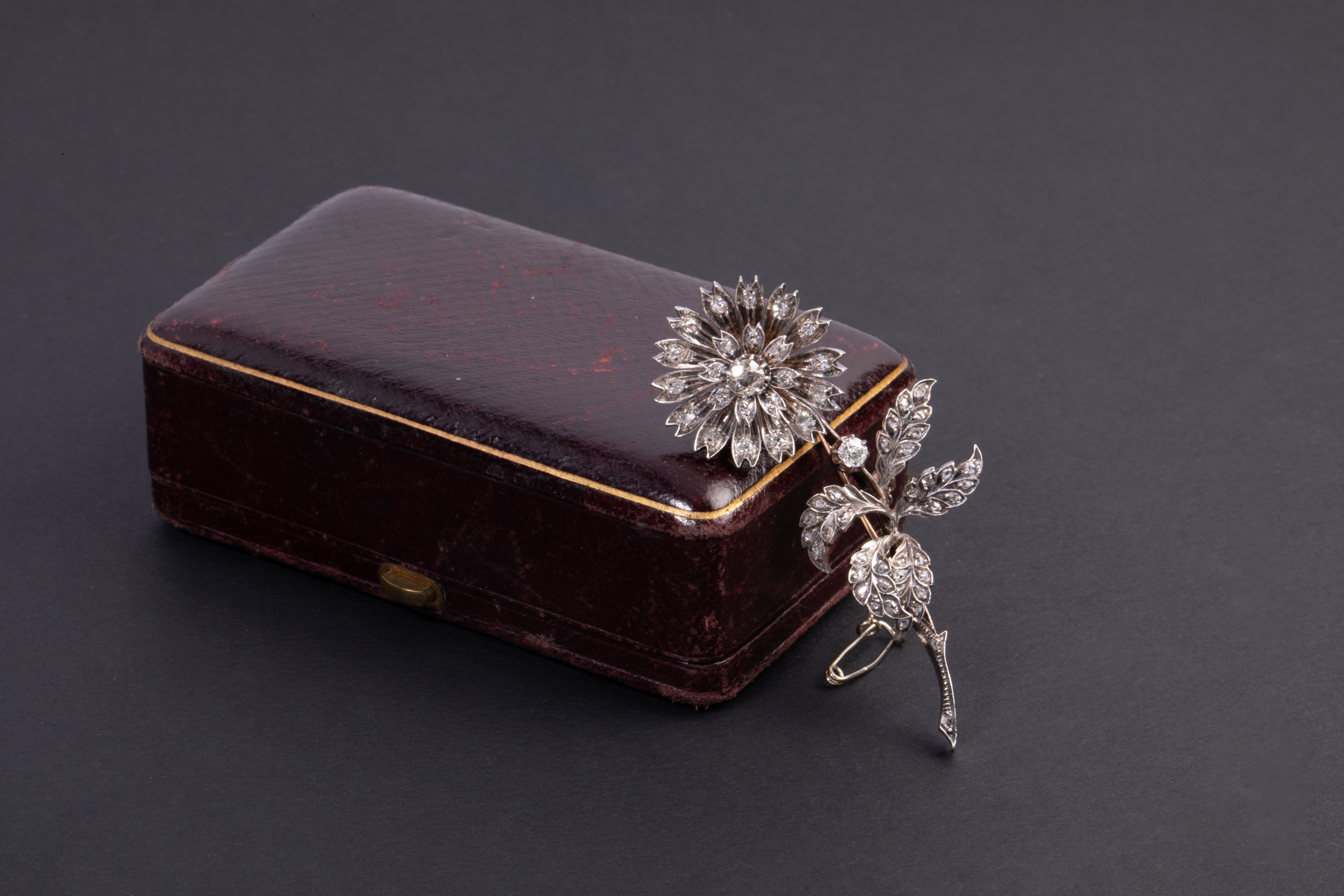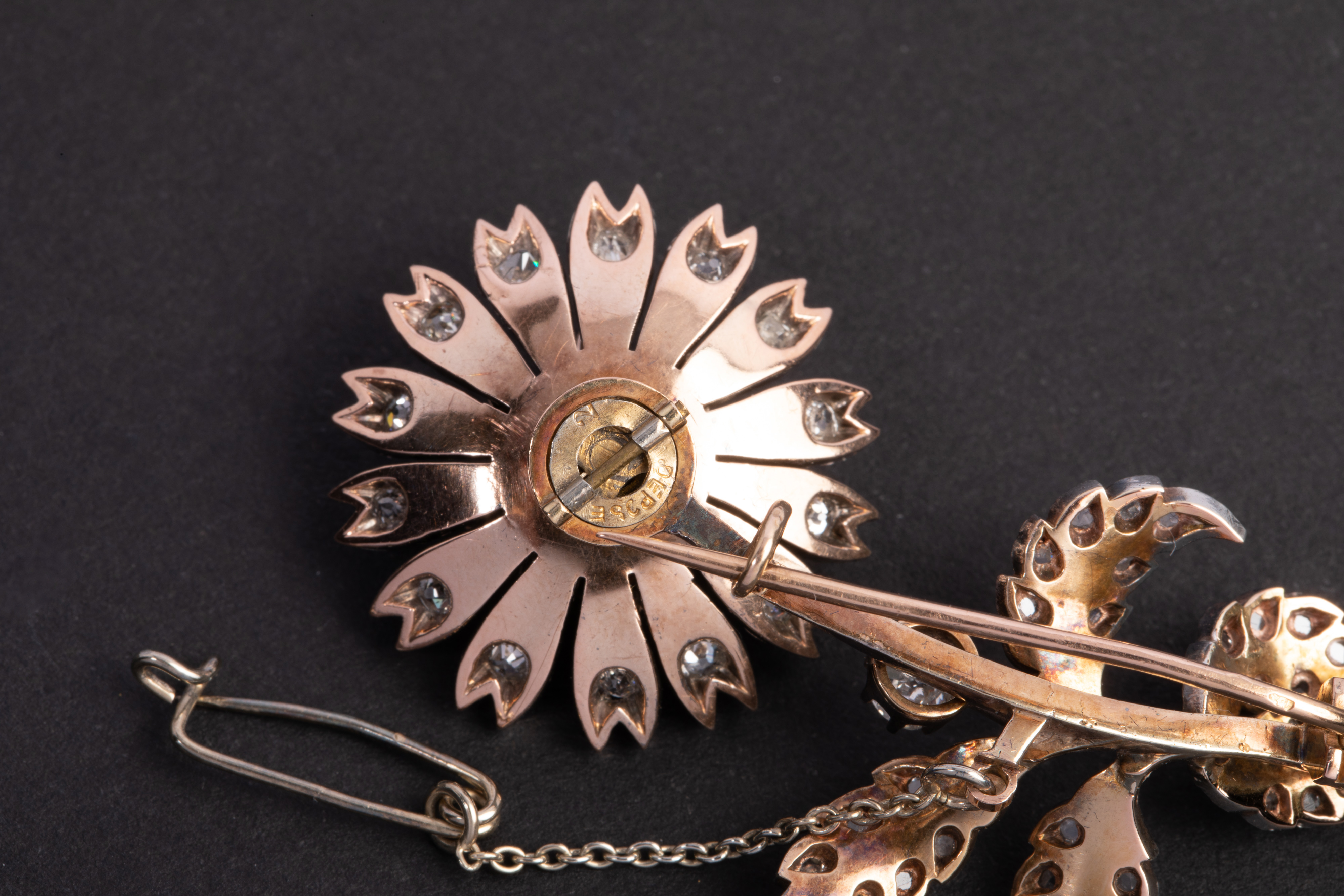独角鹿西洋古董珠宝首法国18k金银镶嵌钻石玫瑰切钻石颤抖花胸针