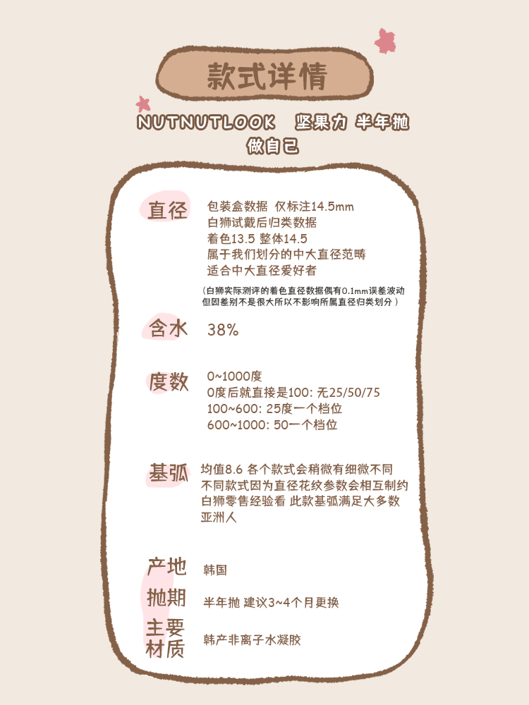坚果力NUTNUTLOOK做自己 14.5mm半年抛中大直径高光美瞳隐形眼镜 白狮旗下自营品牌赠送伴侣盒 半年抛2片