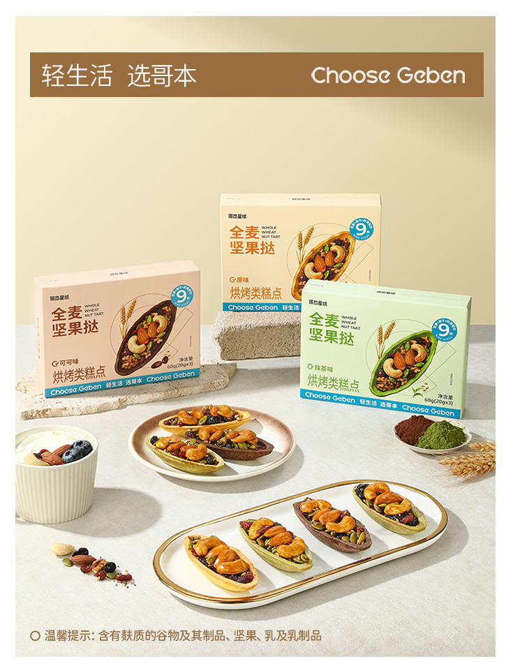【退酮过渡】【生酮不可】哥本™全麦坚果挞(原味/抹茶味/可可味)60g/盒