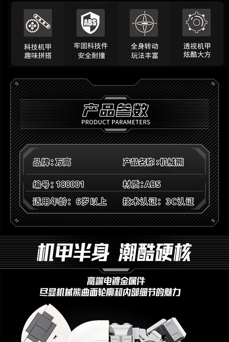 【万高】兼容乐高暴力熊机械熊透视高达机甲拼装积木摆件成人高难度玩具男