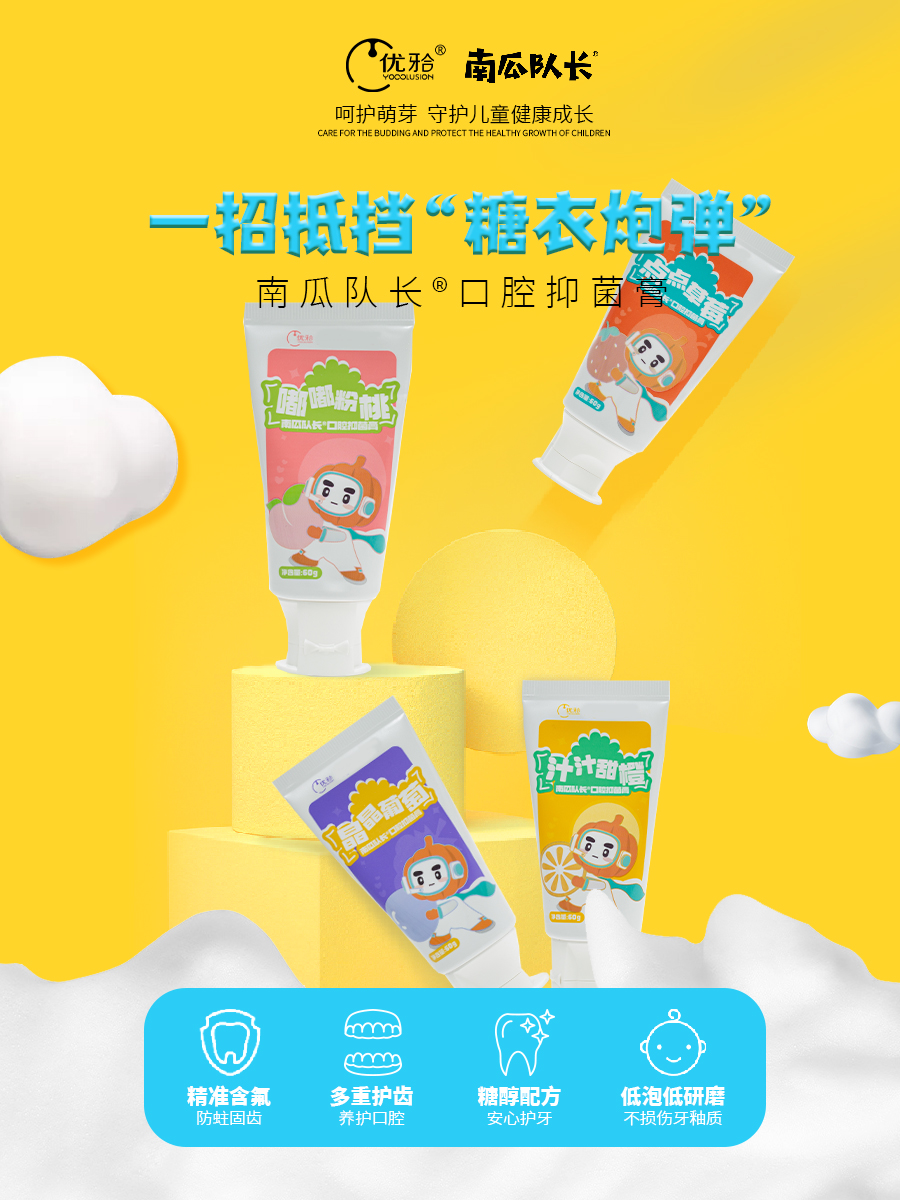 【优牙合】南瓜队长新款口腔抑菌膏防蛀健齿儿童牙膏