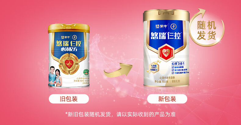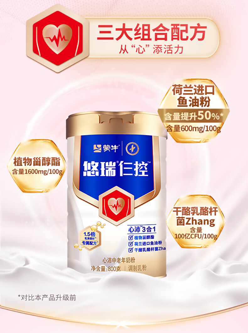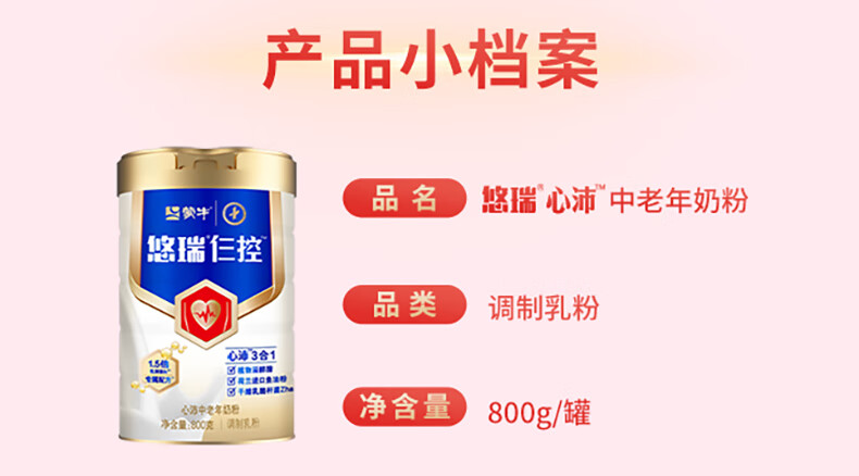 蒙牛悠瑞心沛中老年奶粉800g/罐 添加鱼油粉 营养高钙 早餐冲饮