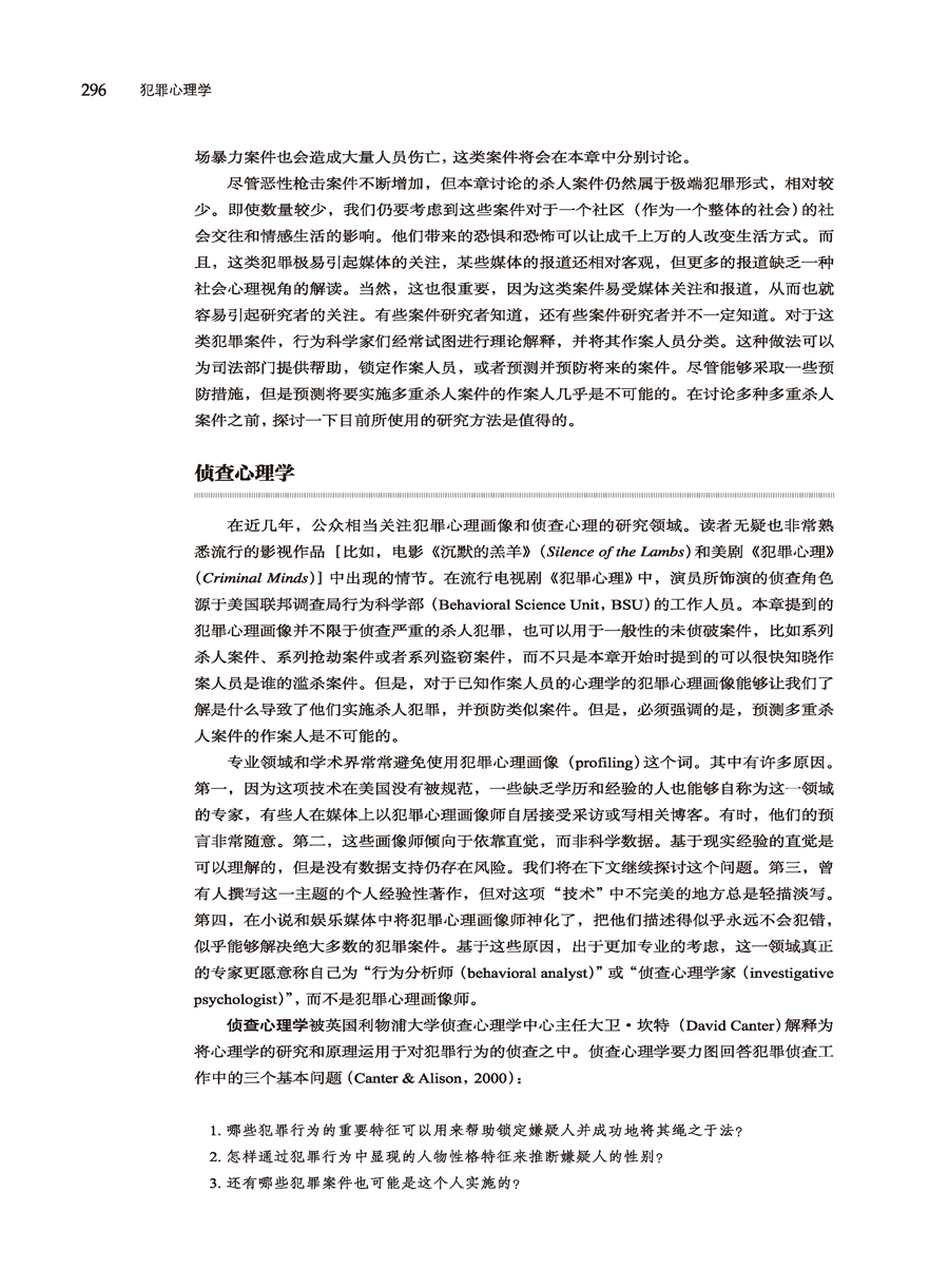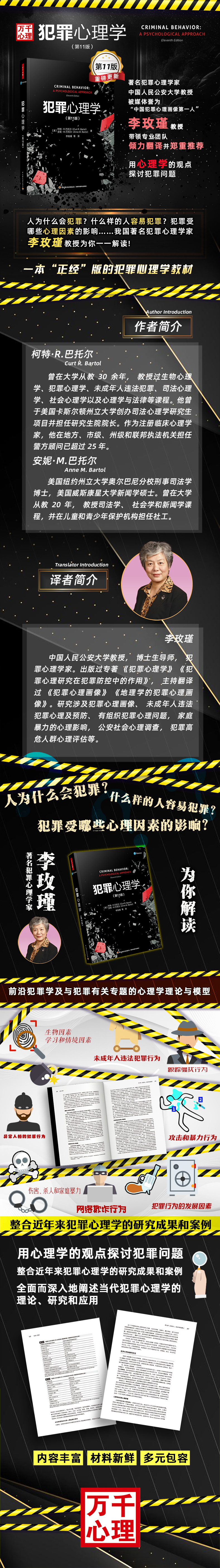 本书既可作学习犯罪心理学的专业入门教材,供相关专业的师生使用,又可为需要犯罪心理学知识的公检法司人员提供专业知识,还可为对犯罪心理现象充满好奇心的读者提供一本“正经”版的犯罪心理学教材,甚至可为从事犯罪学、刑法学、社会学、监狱学、司法精神医学等专业研究的学者提供美国*的犯罪心理研究成果。