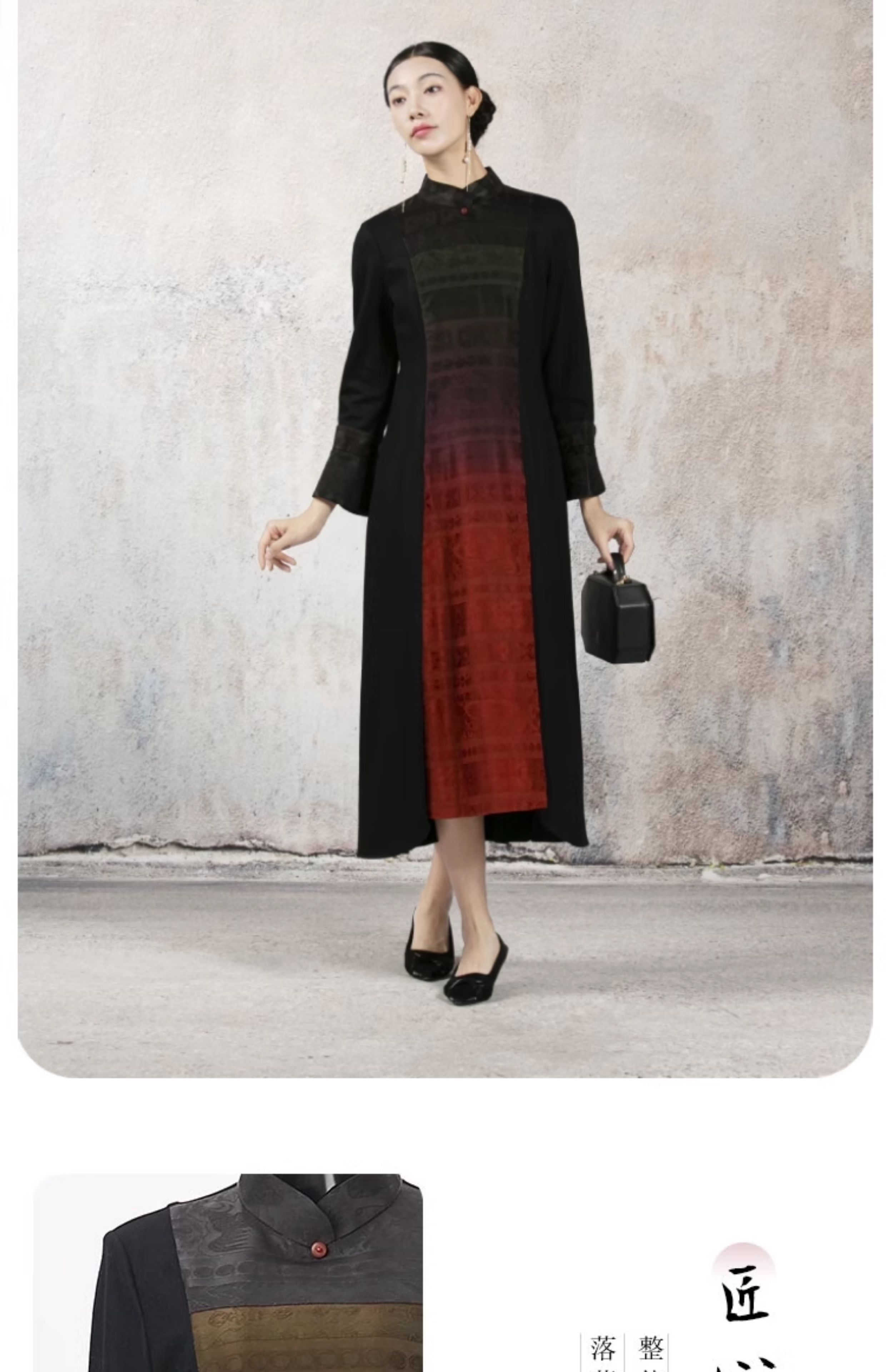 吉祥衣家新中式典雅气质中国风复古时尚大气秋冬女装凤鸣声连衣裙