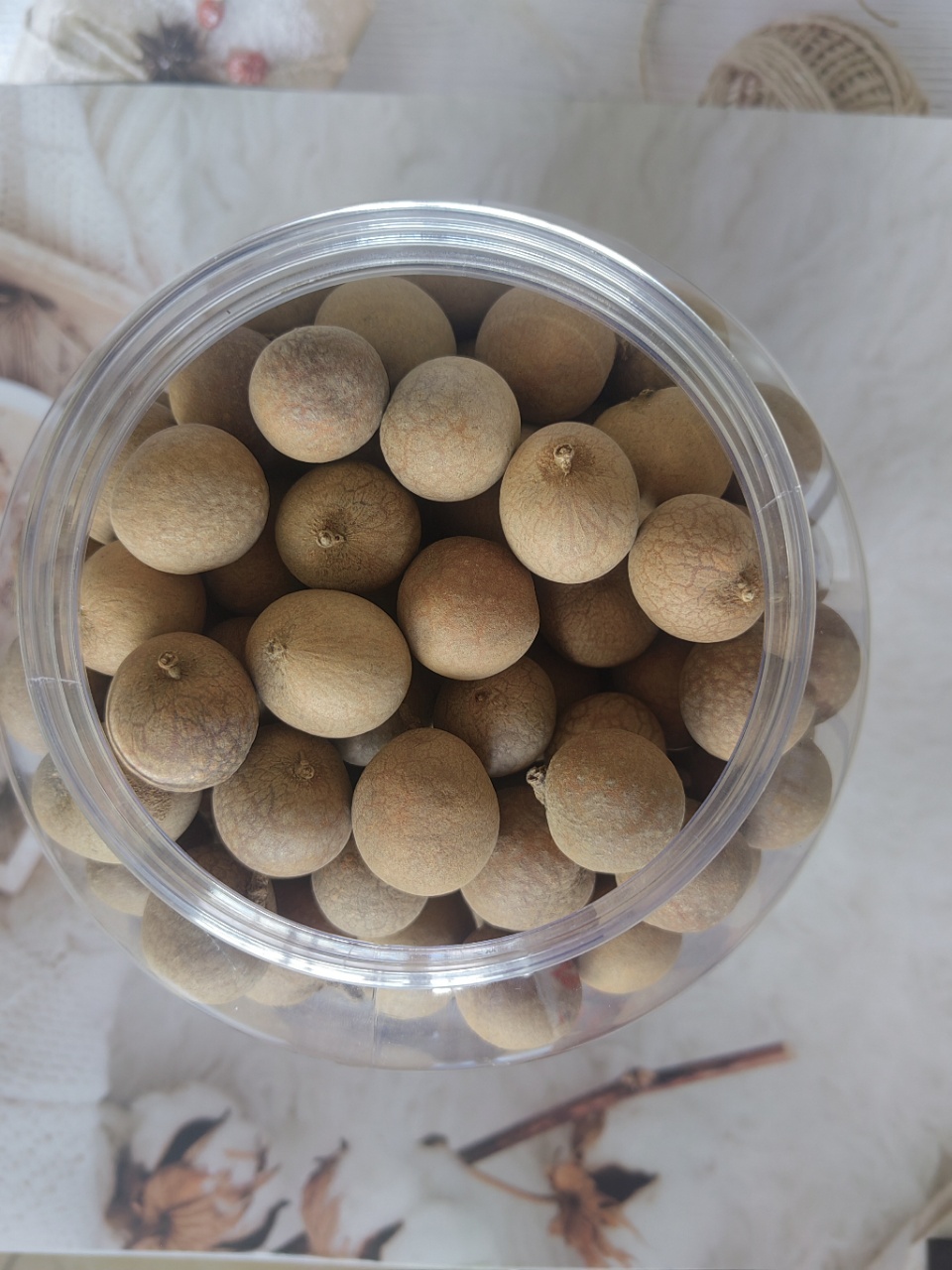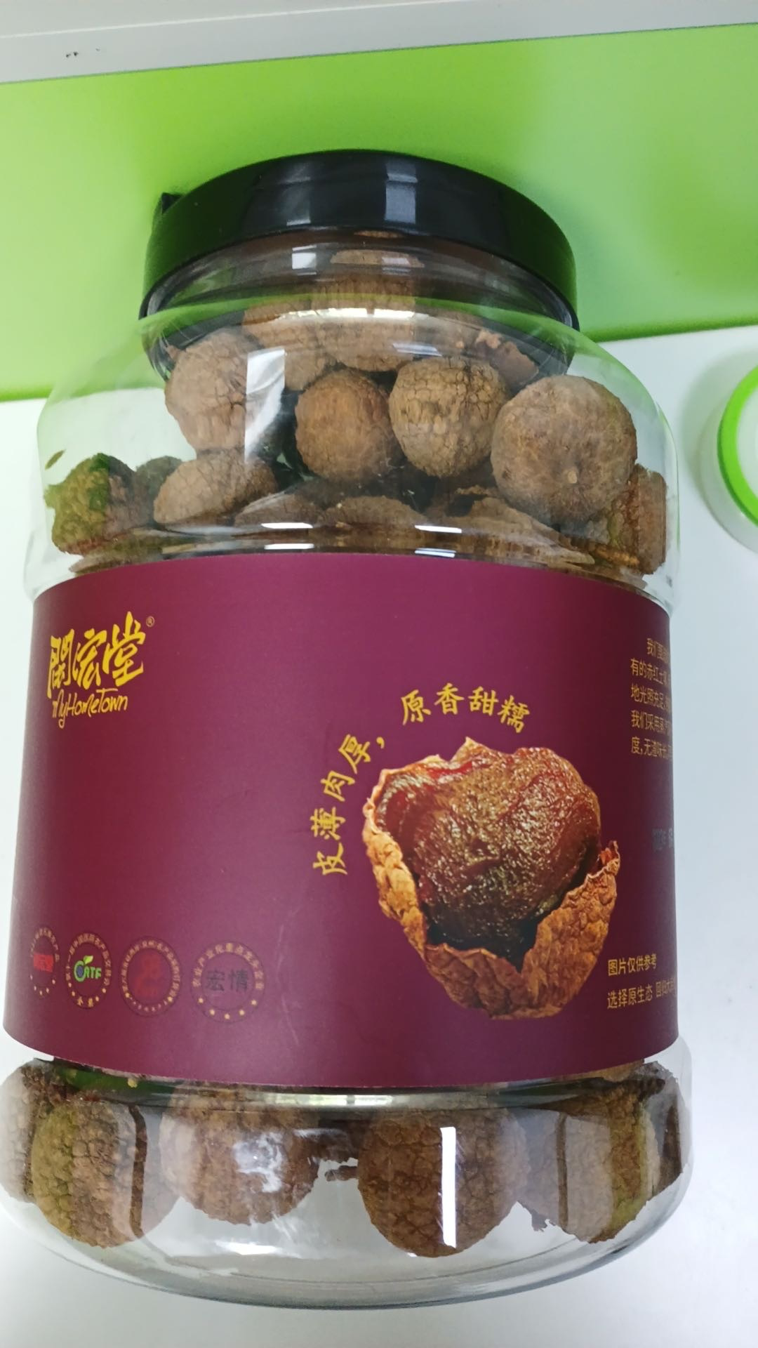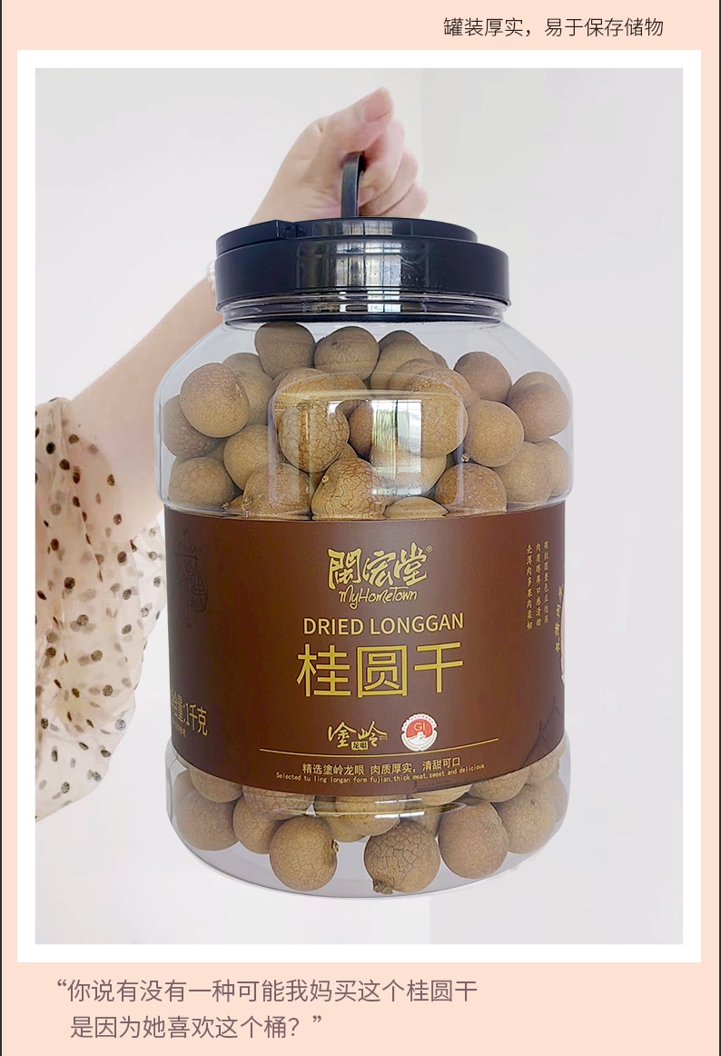 闽宏堂1000克桂圆干打开盖子后,一阵果香扑鼻,拿起来颗颗饱满。