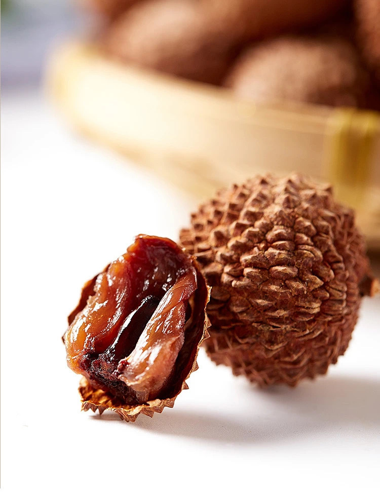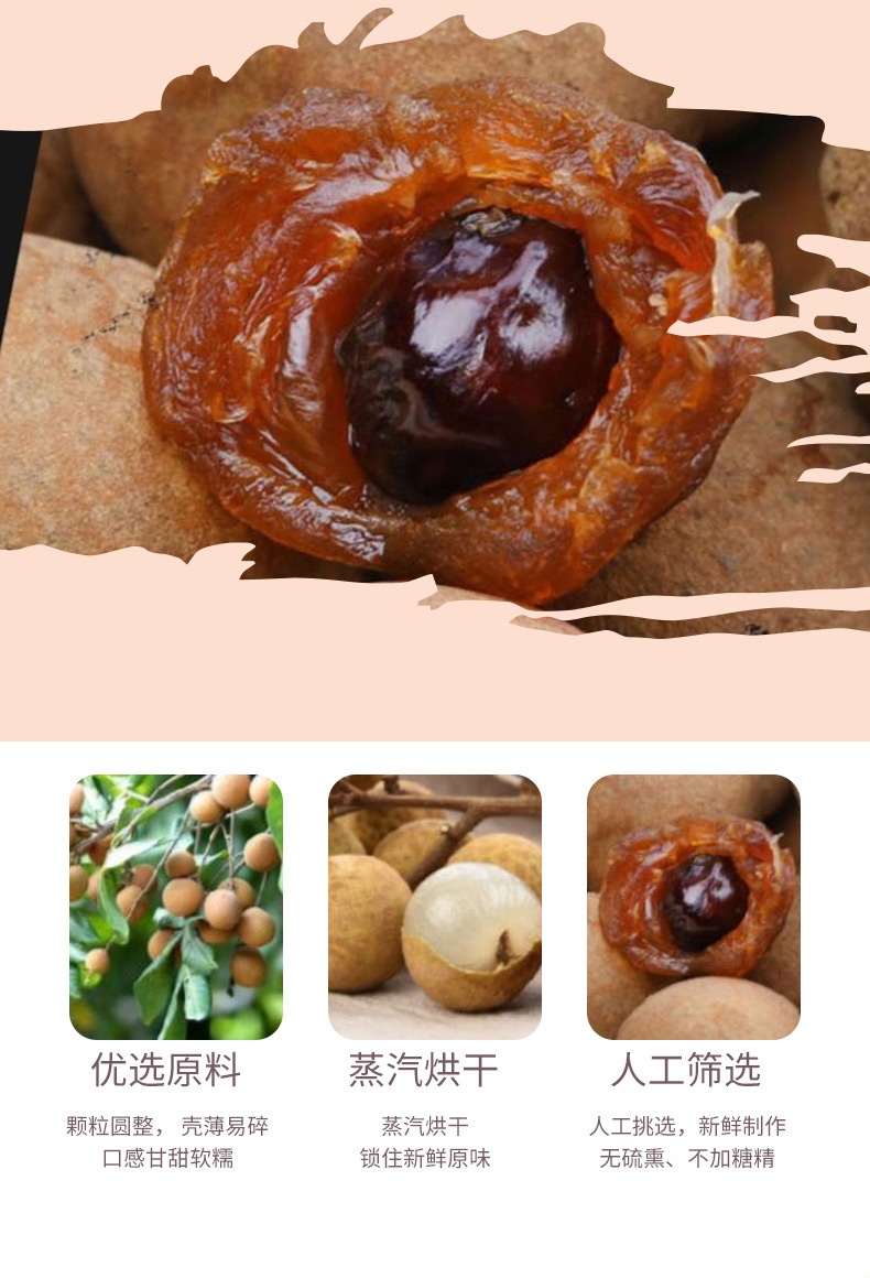 f、桂圆干核比较小,肉质鲜美,采用蒸汽烘干方便快捷,易于保存果糖等成分的营养美味