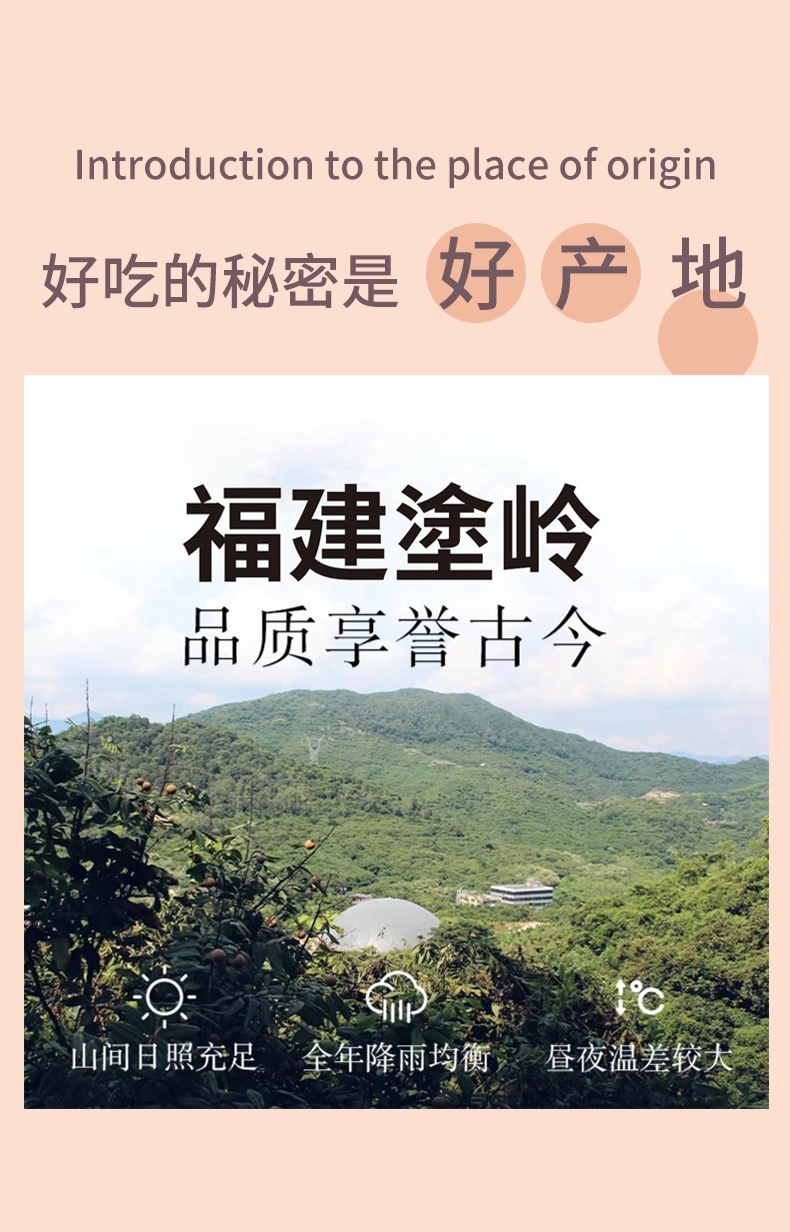 h、好桂圆源自好产地:源产地位于福建沿海中部,亚热带海洋季风气候,独特的地理环境日照充足,雨量适中,日夜温差大,有利于糖分的累积