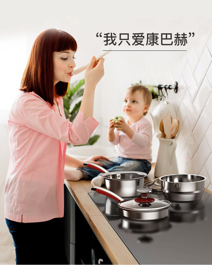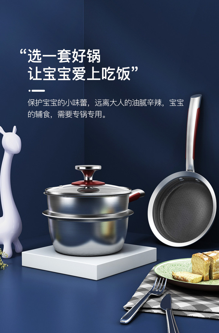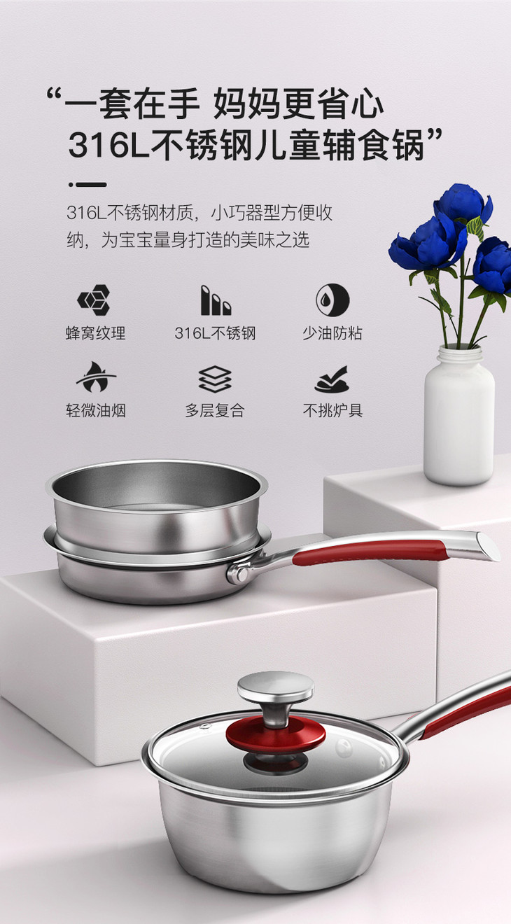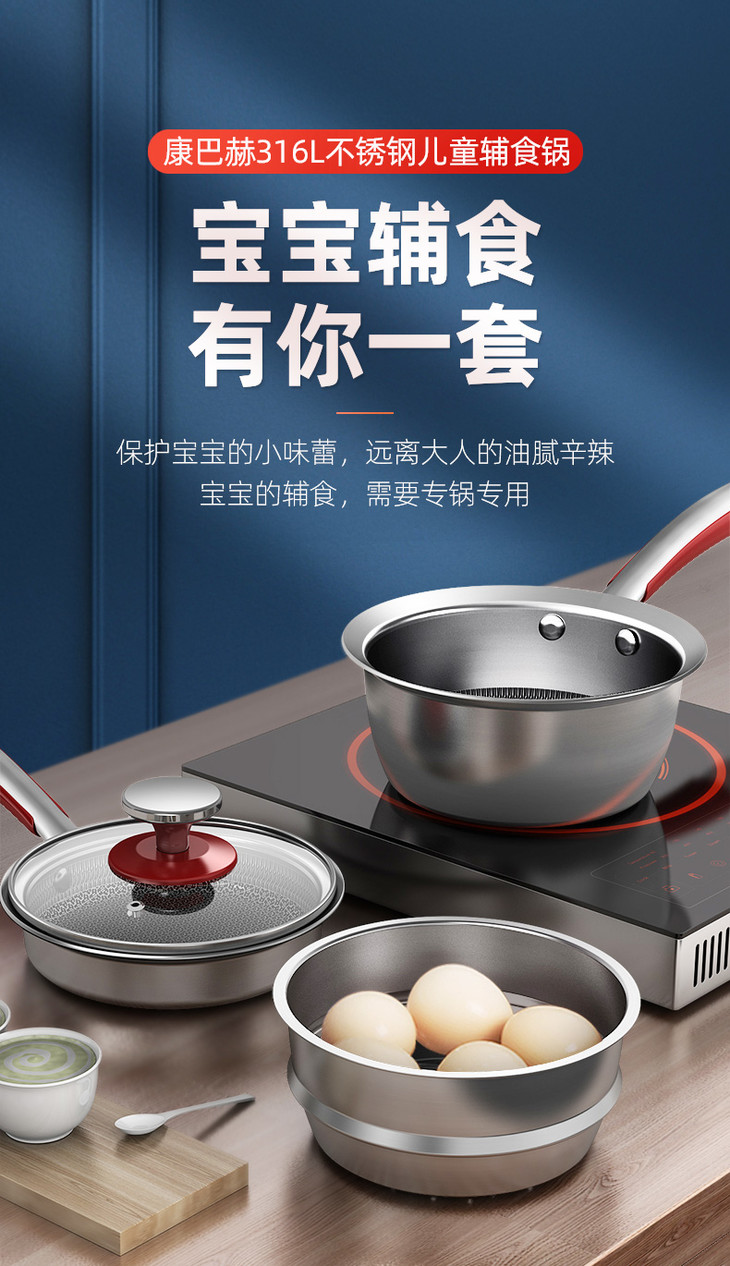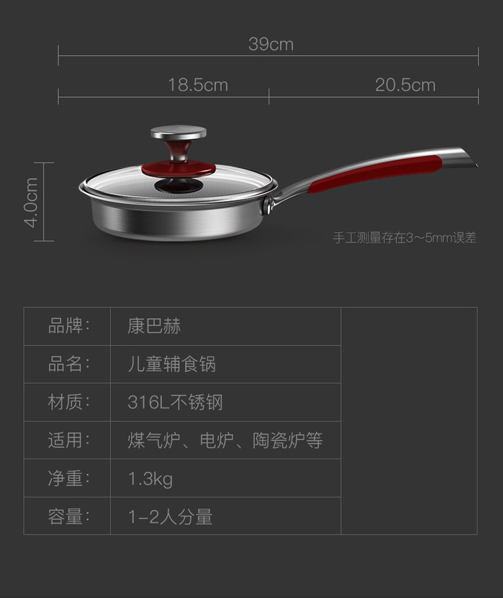 【康巴赫】316L不锈钢宝宝辅食锅/奶锅/不粘锅/煎锅(蜂窝涂层)