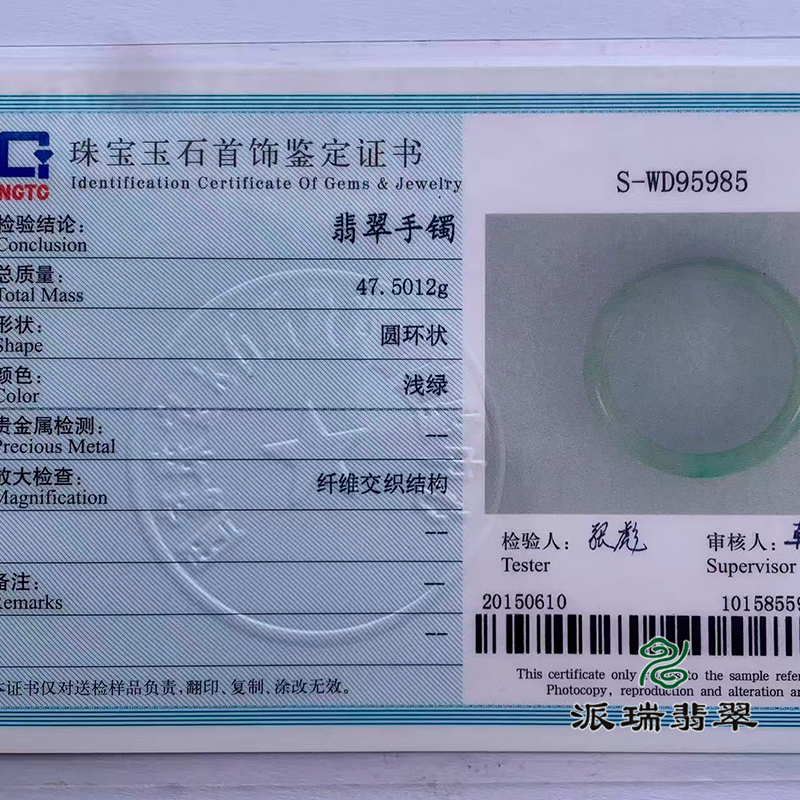 派瑞翡翠 翡翠手镯 糯种 浅绿