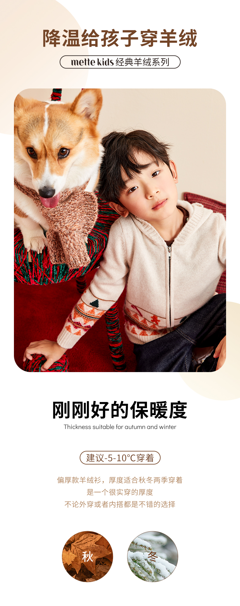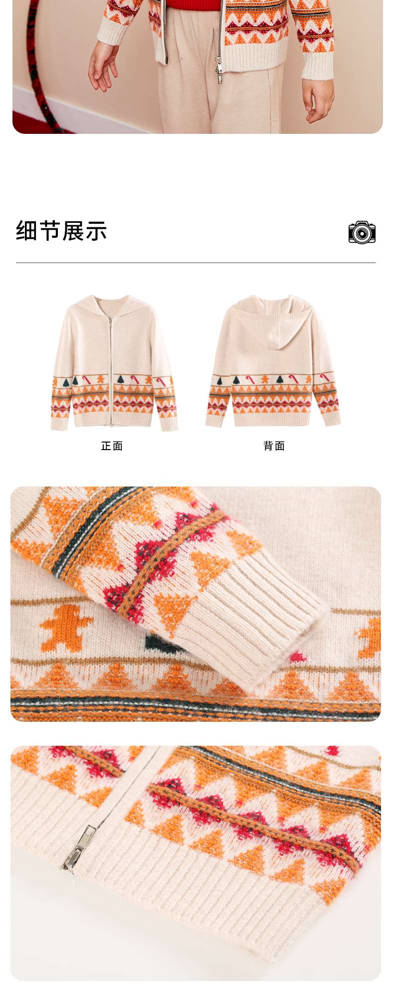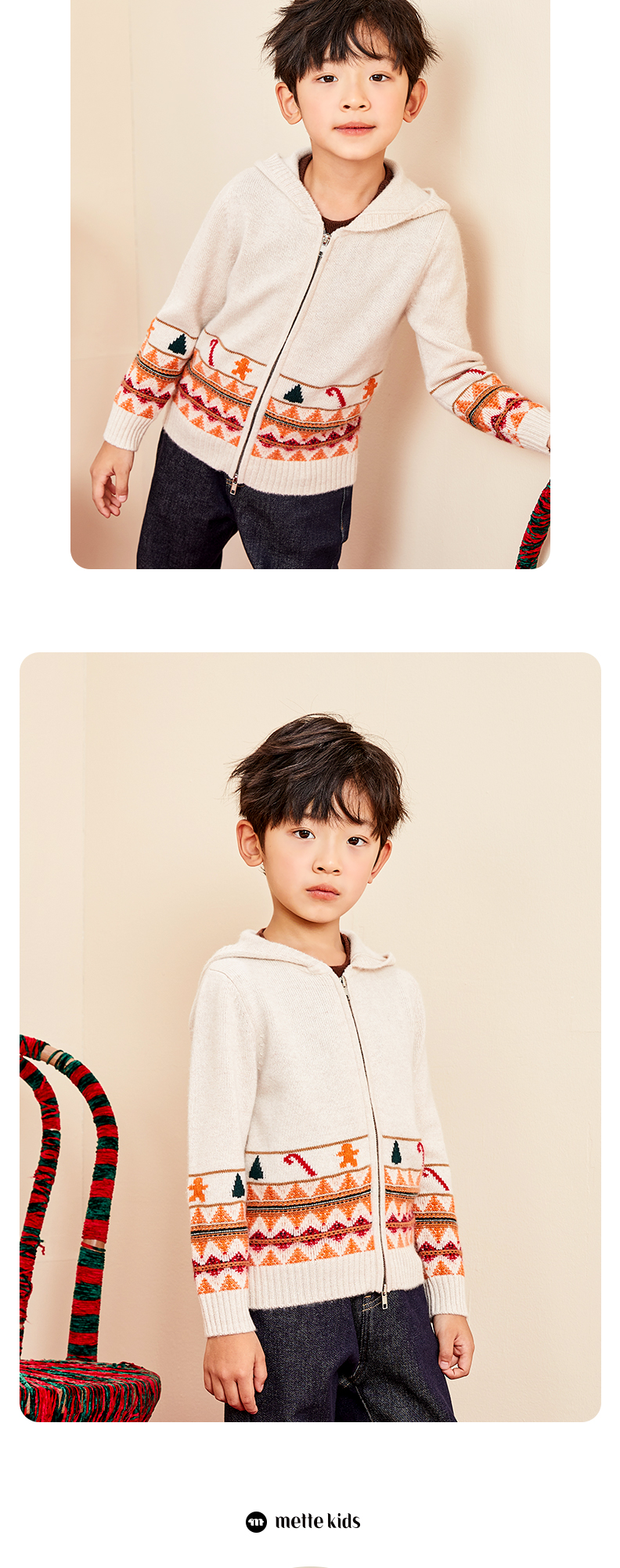 mettekids儿童羊绒衫春秋新款男童女童休闲连帽针织开衫大童毛衣