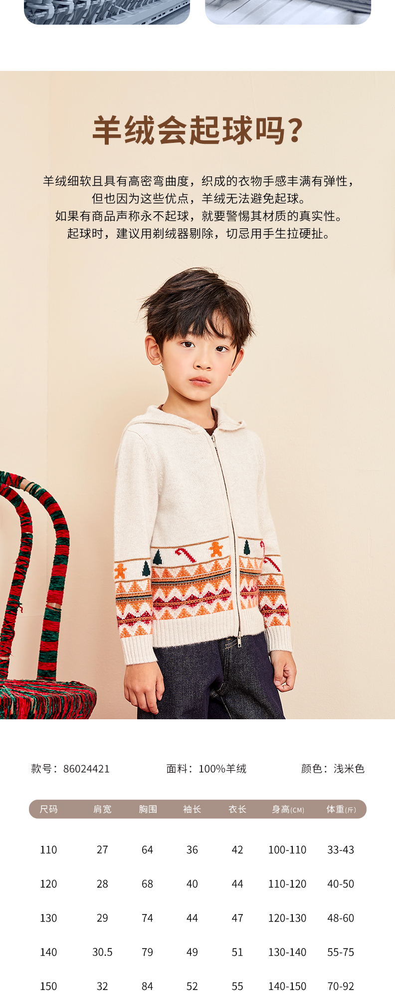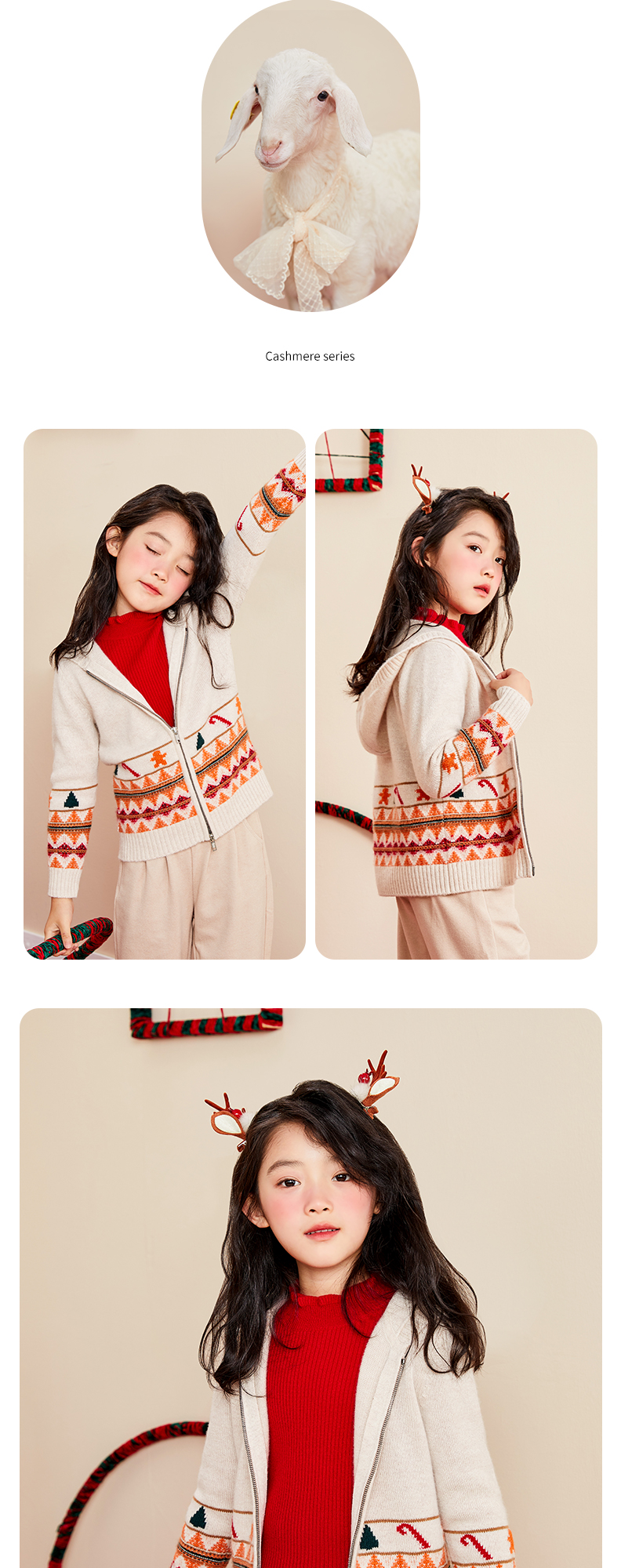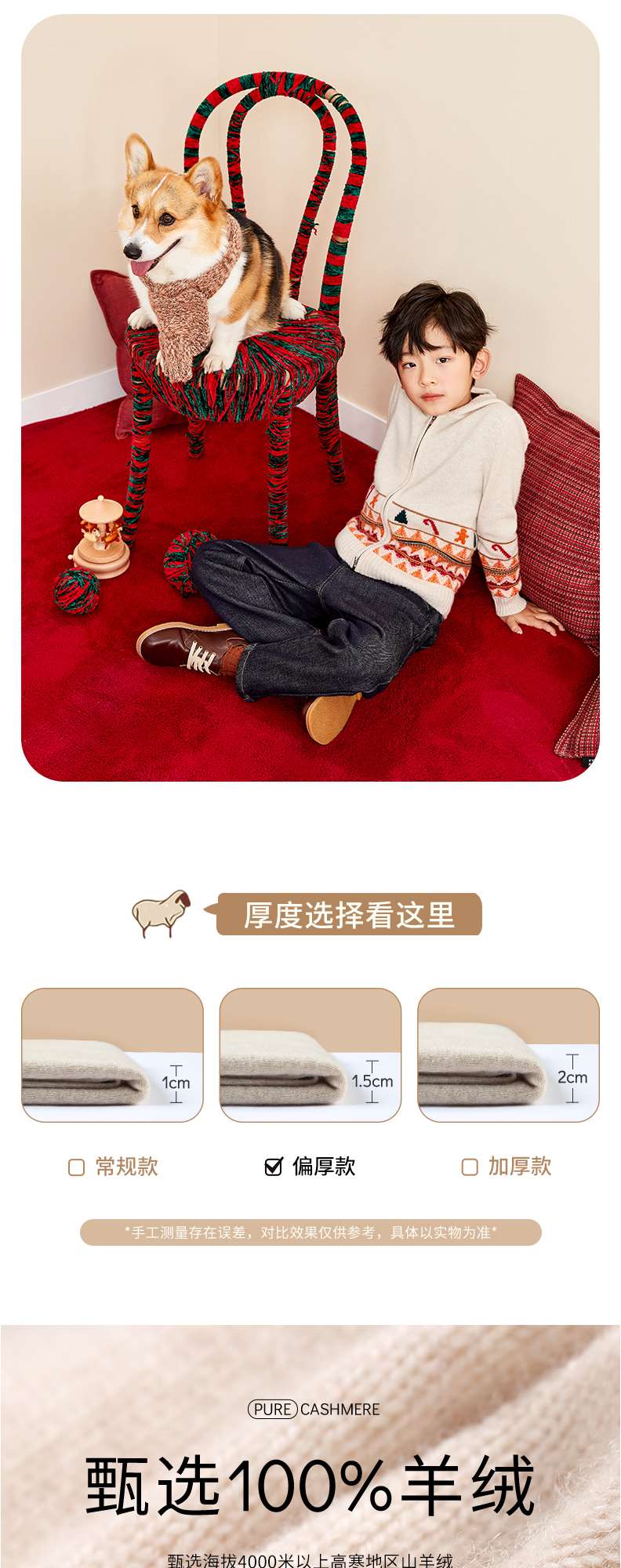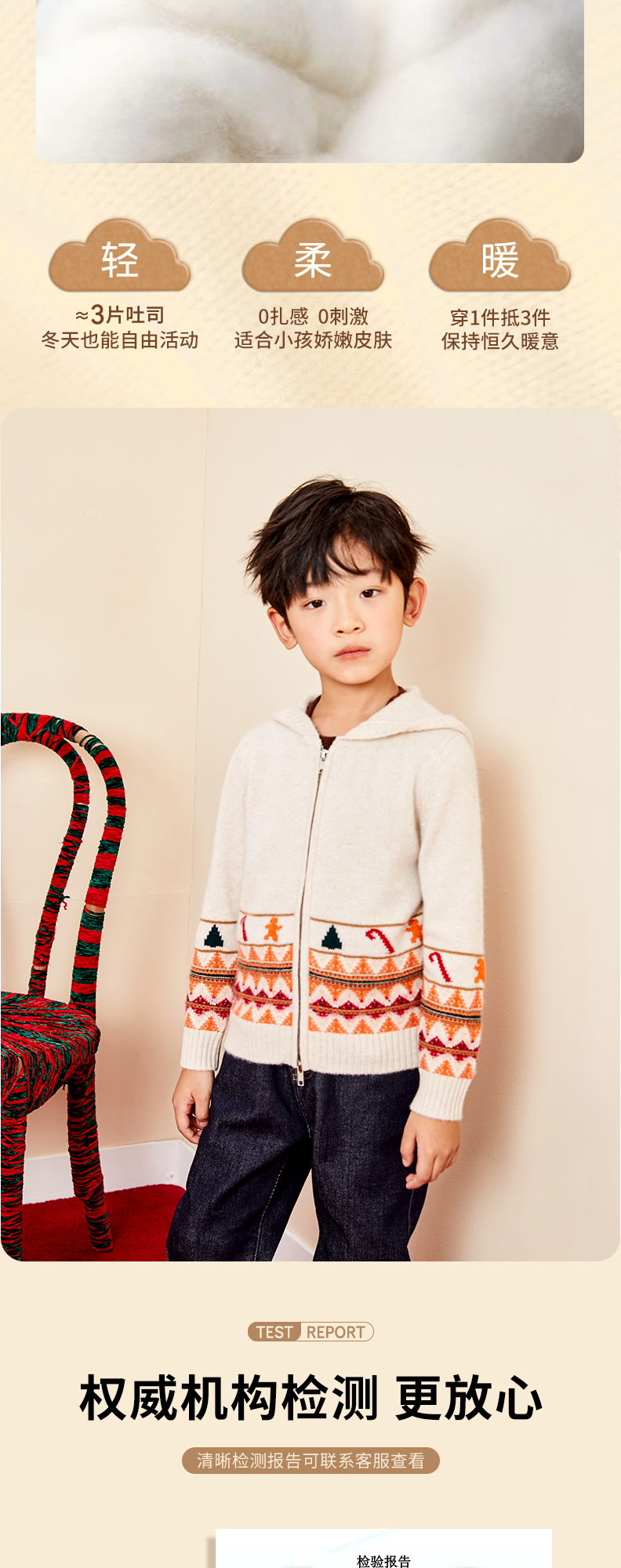 mettekids儿童羊绒衫春秋新款男童女童休闲连帽针织开衫大童毛衣