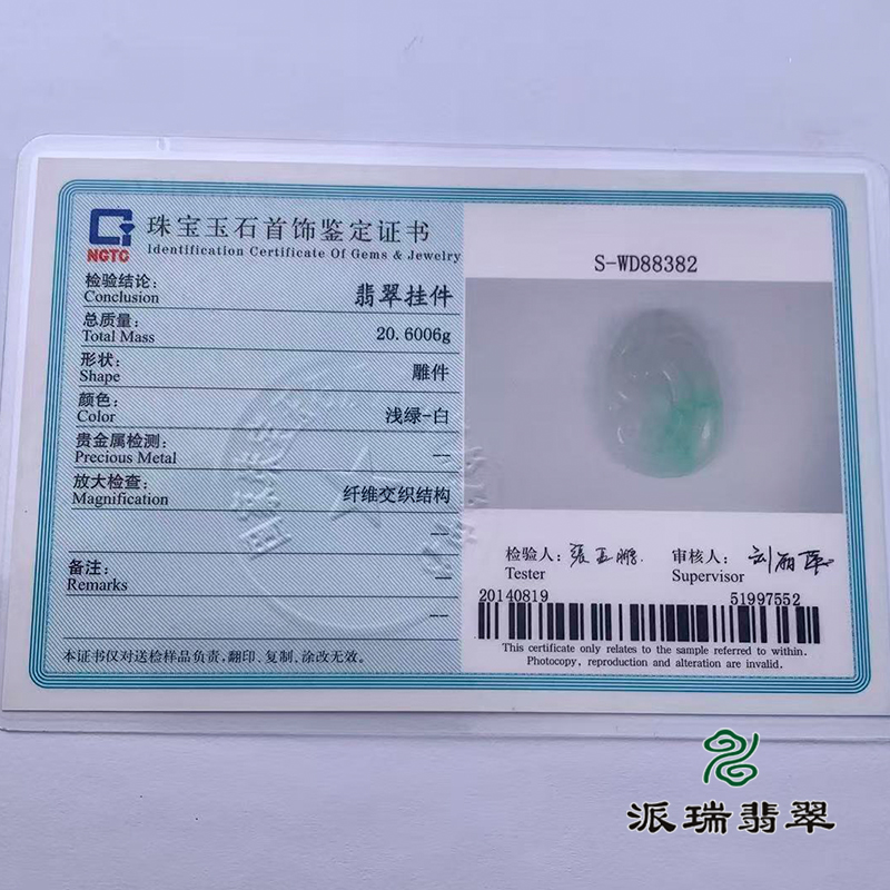 派瑞翡翠 翡翠挂件 糯种 浅绿