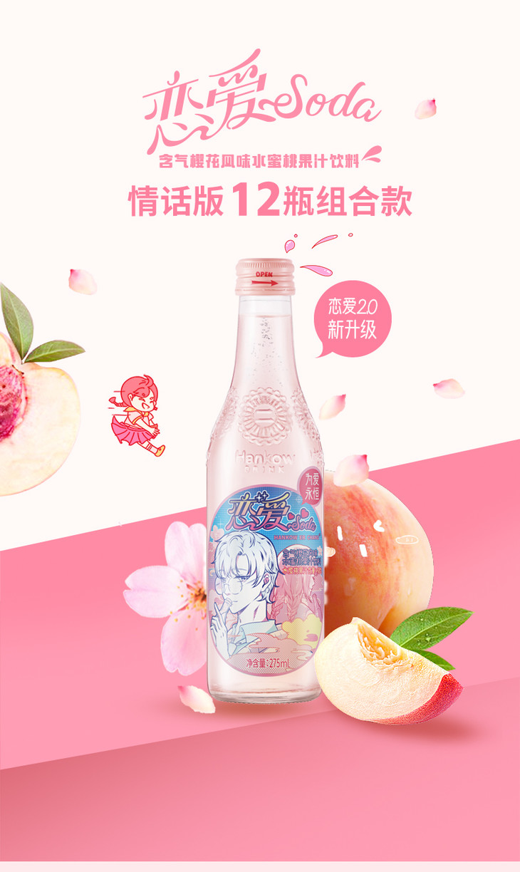 汉口二厂樱花风味水蜜桃果汁饮料恋爱soda汽水275ml