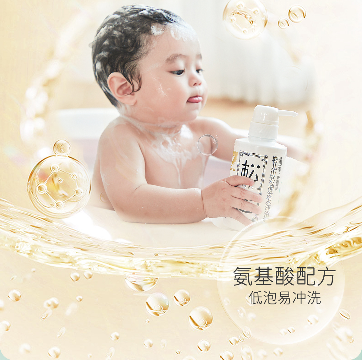 松达婴儿护肤山茶油洗发水沐浴露洗护二合一新生儿沐浴液宝宝儿童洗发水300ml
