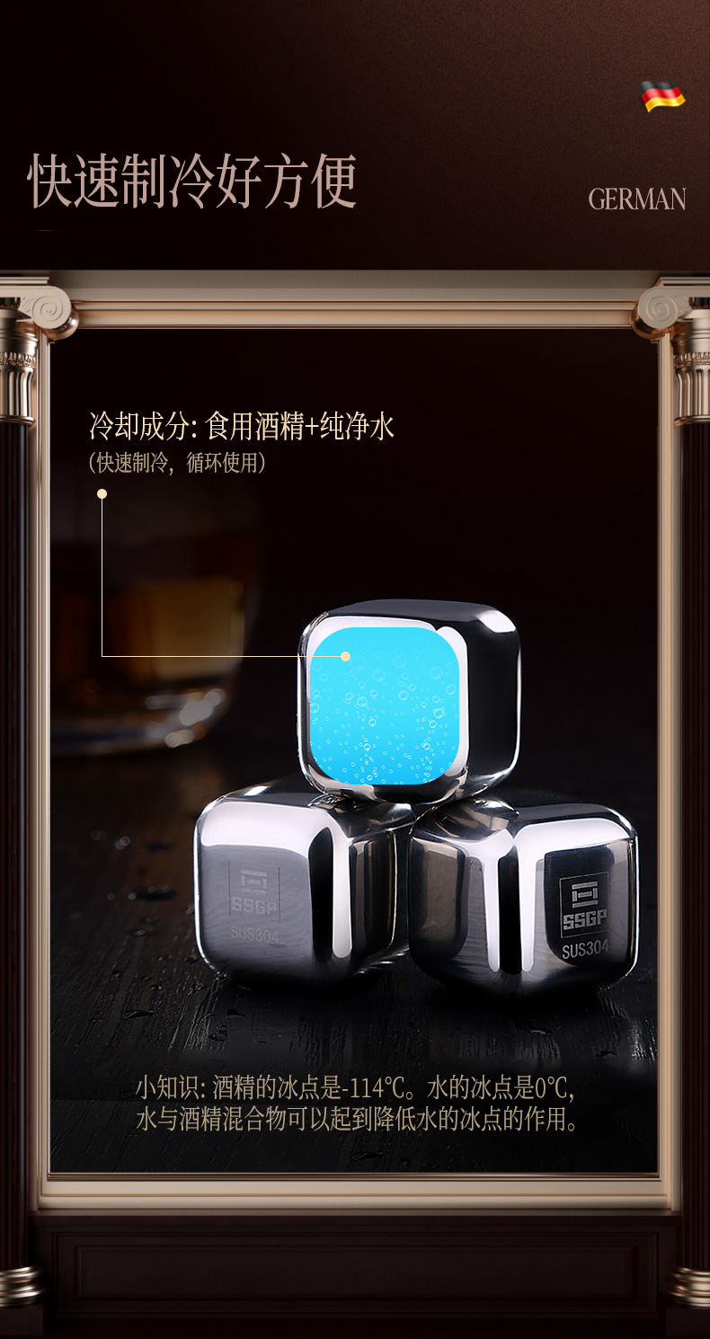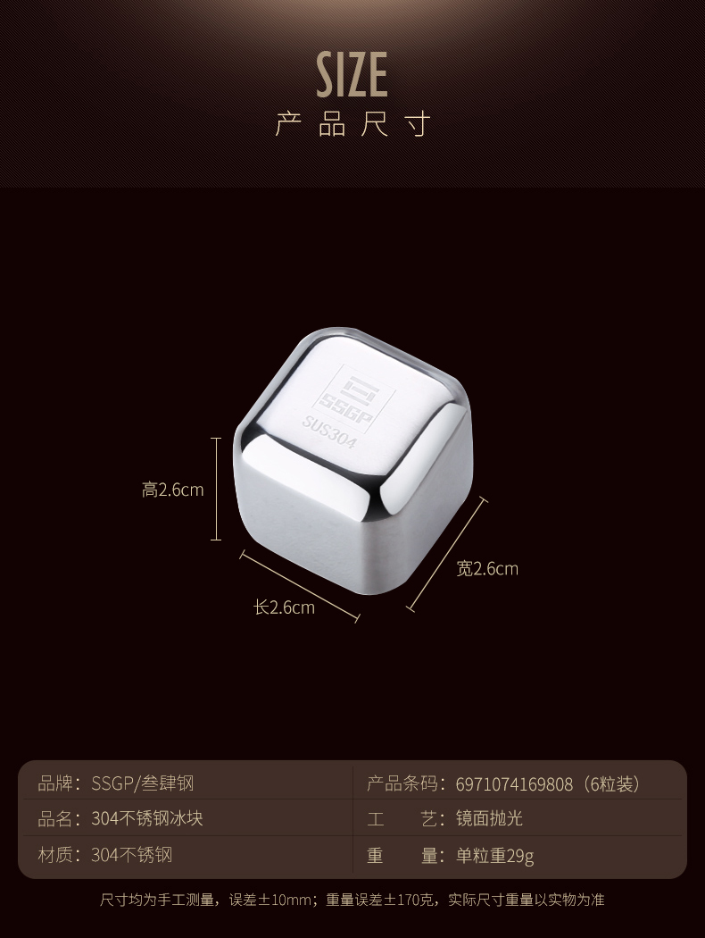 【萨菲隆之息】德国匠心工艺 SSGP304不锈钢冰块 冰粒可乐 啤酒 冻汽水 冷冻 冰镇 神器