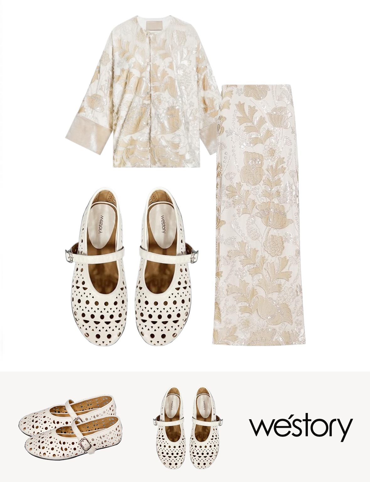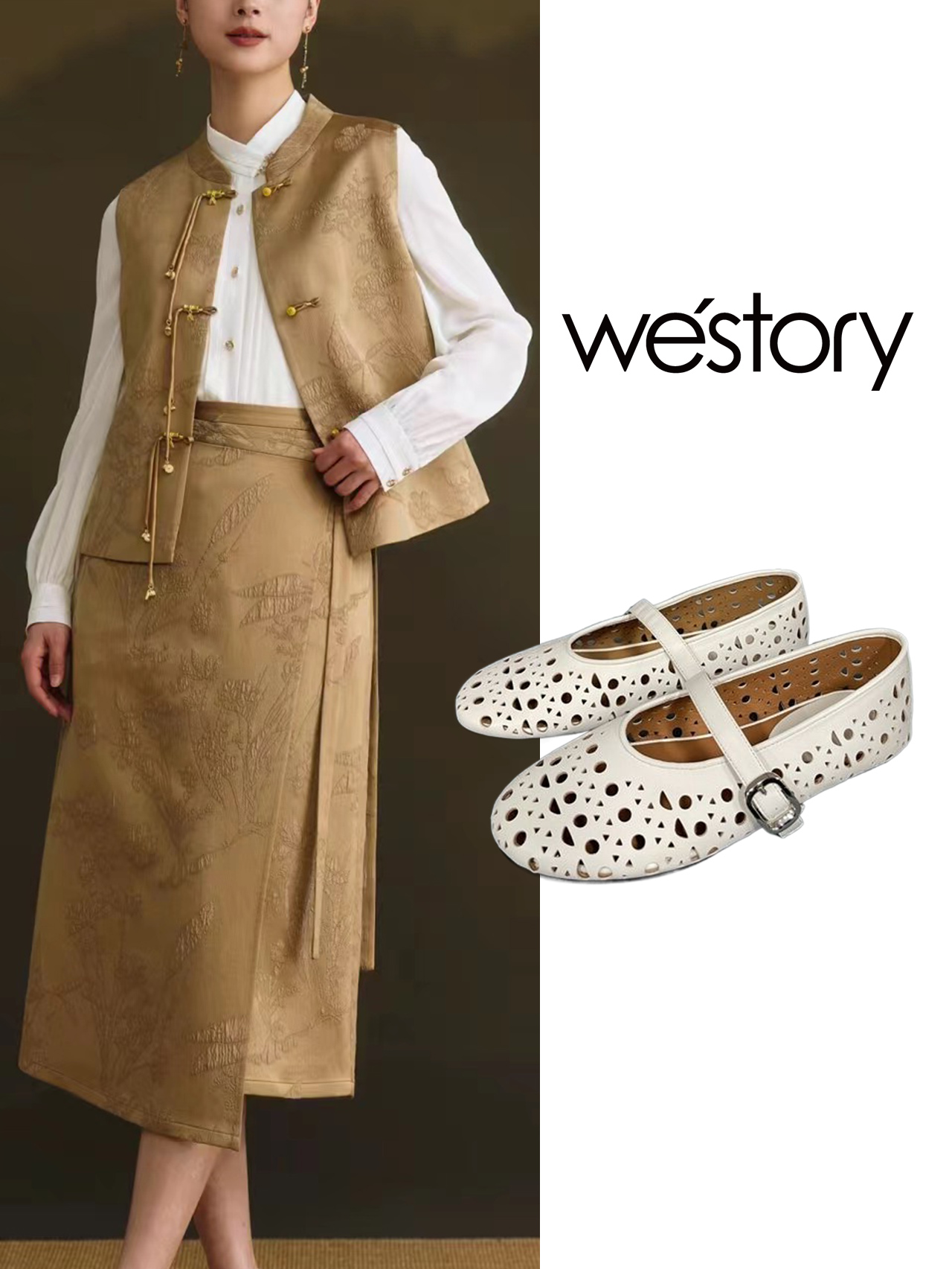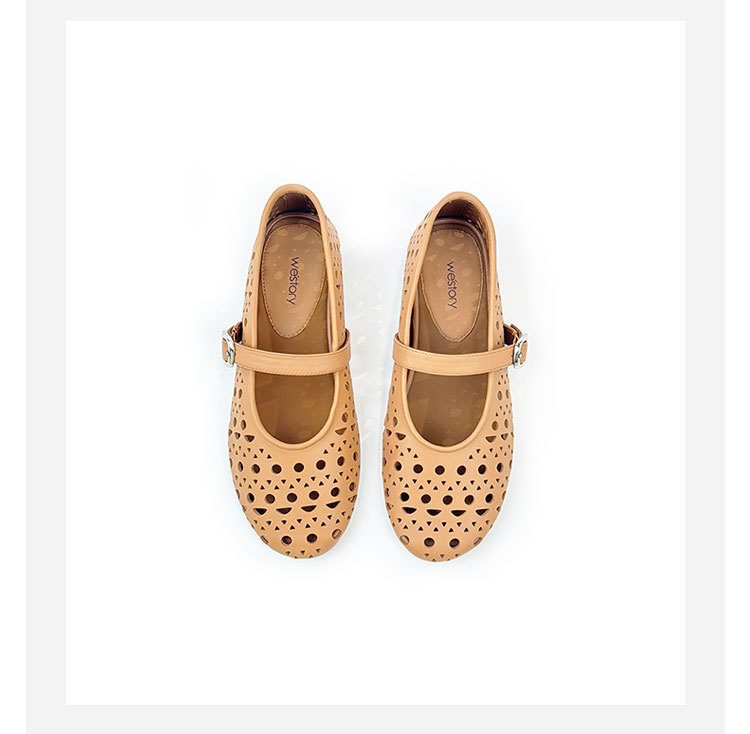 westory平跟单鞋新中式国风鞋玛丽珍洞洞鞋W24AH57681