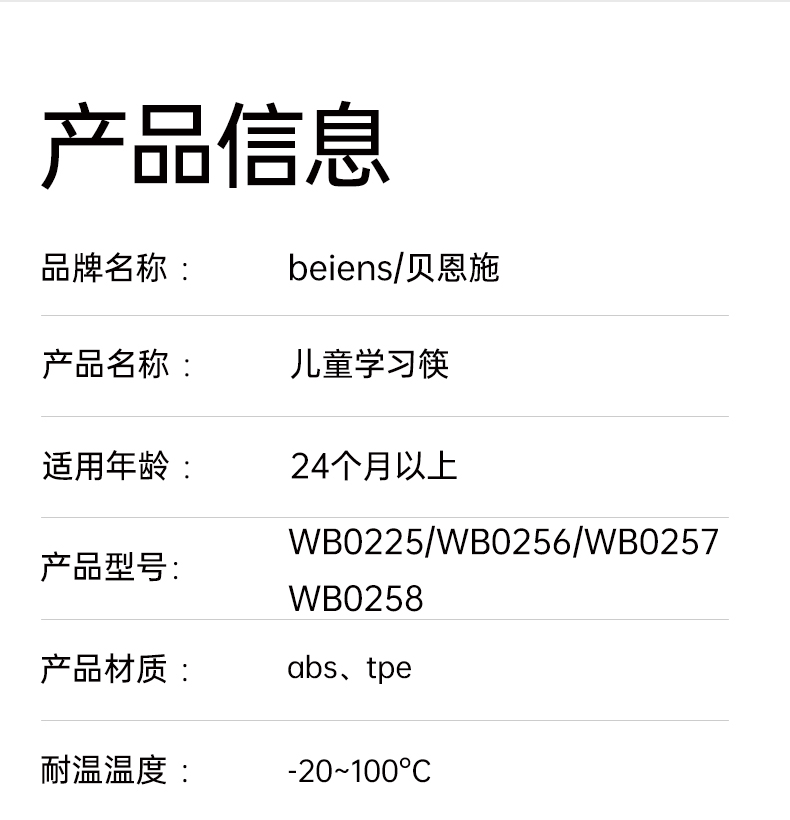 贝恩施儿童筷子虎口学习筷训练筷宝宝吃饭神器小孩专用餐具3-6岁