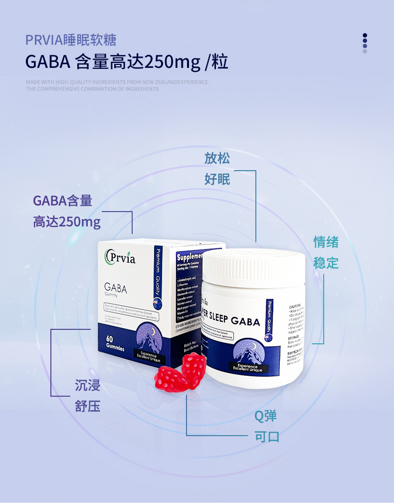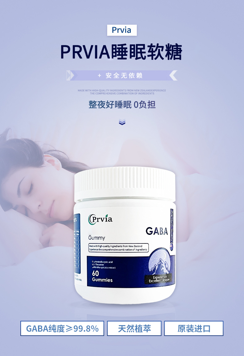 【香港直邮 】新西兰Prvia睡眠软糖 每颗含GABA250mg 维生素B6 酸甜Q弹 60粒/瓶