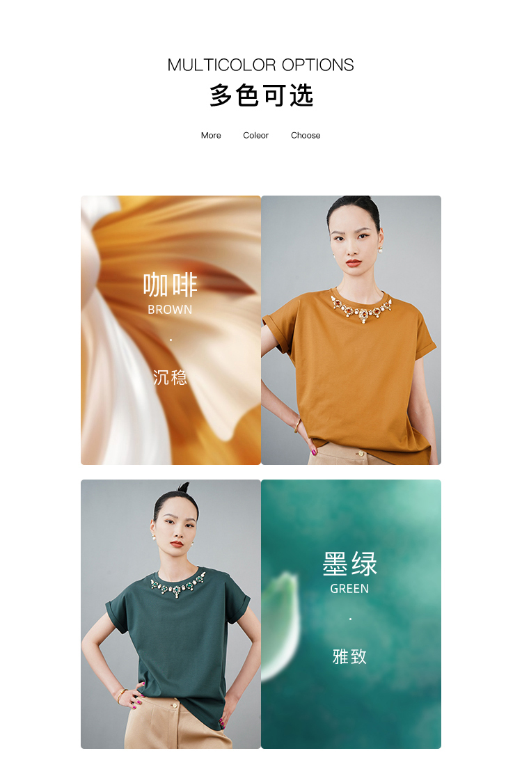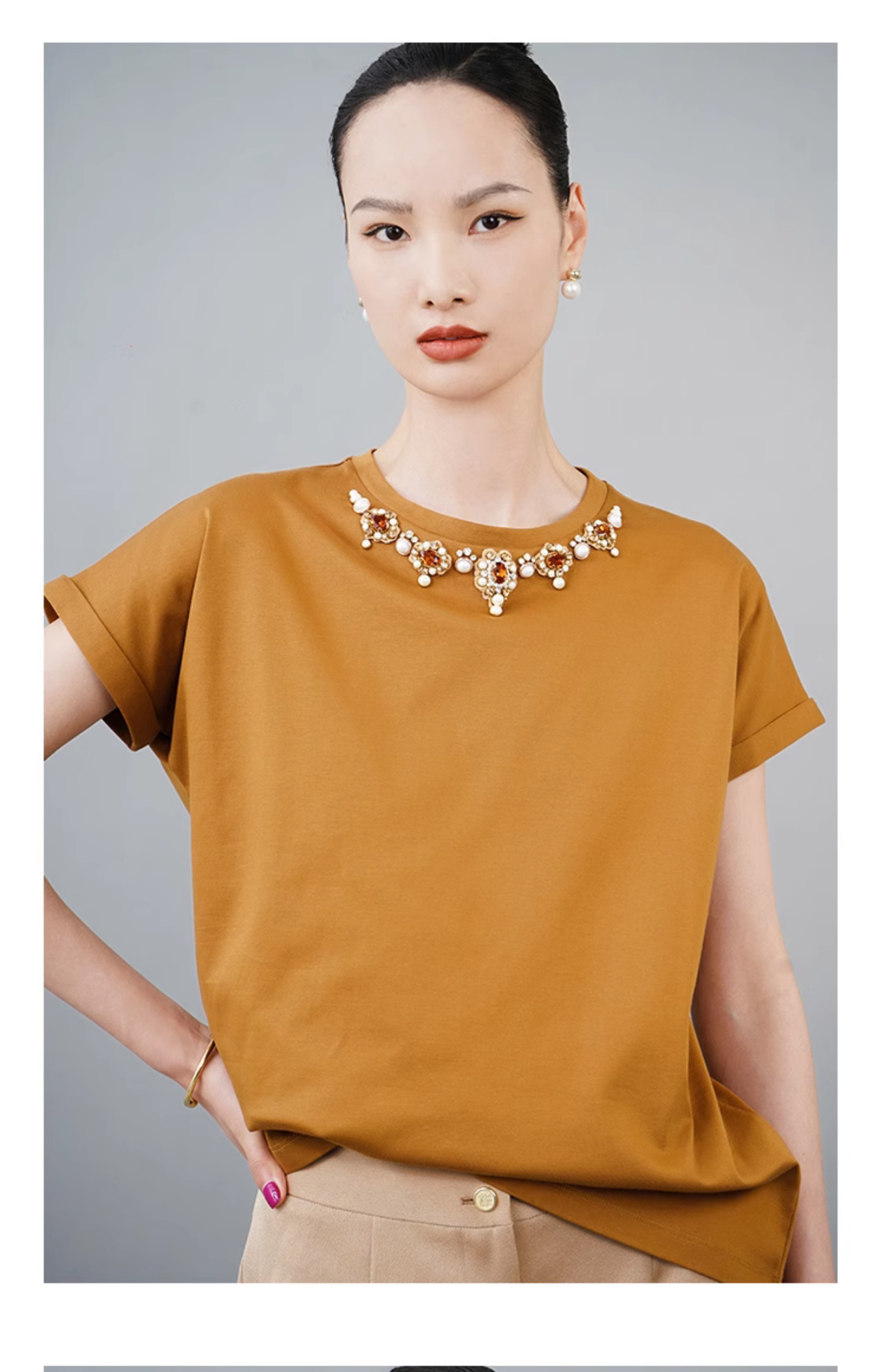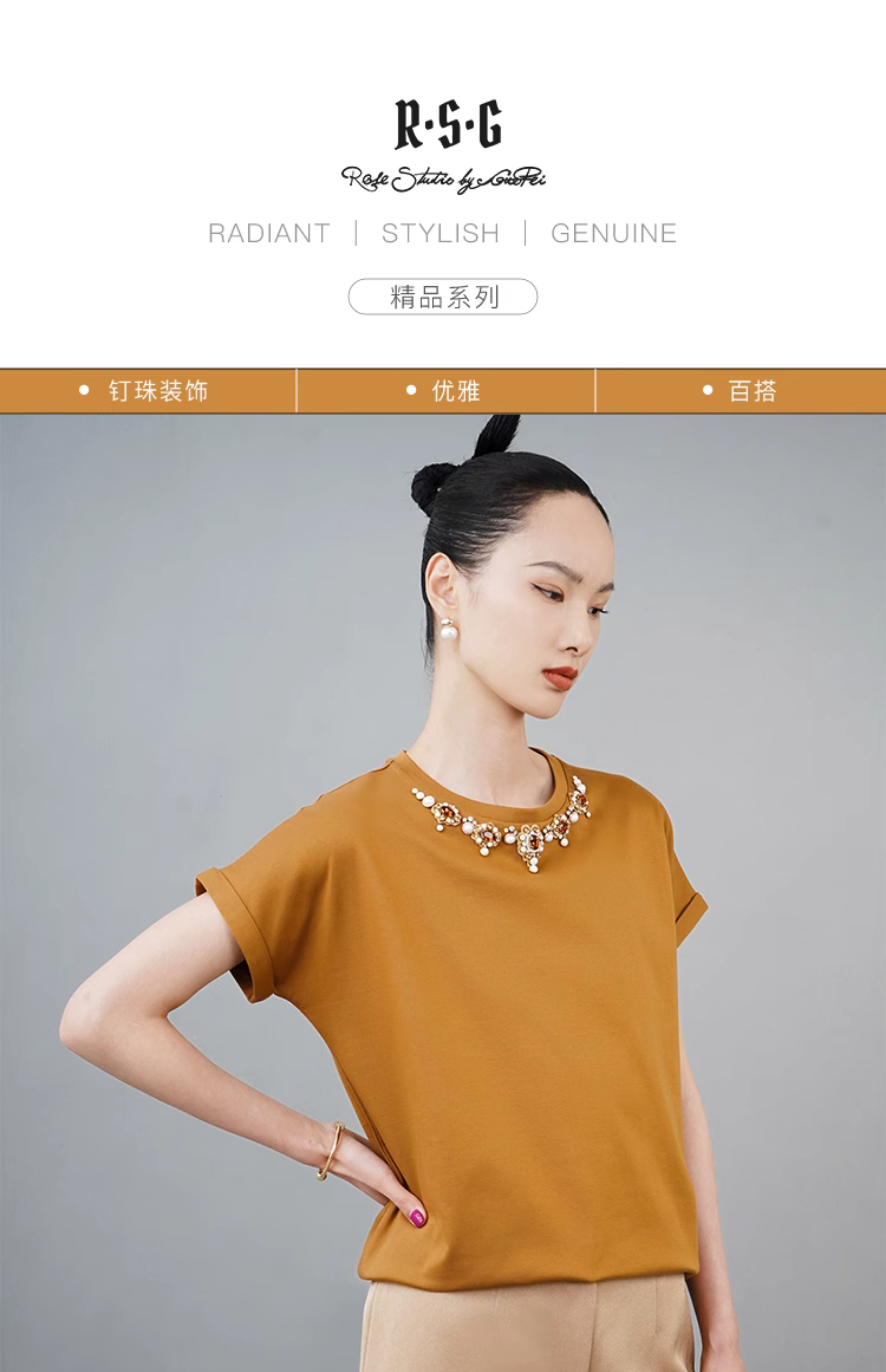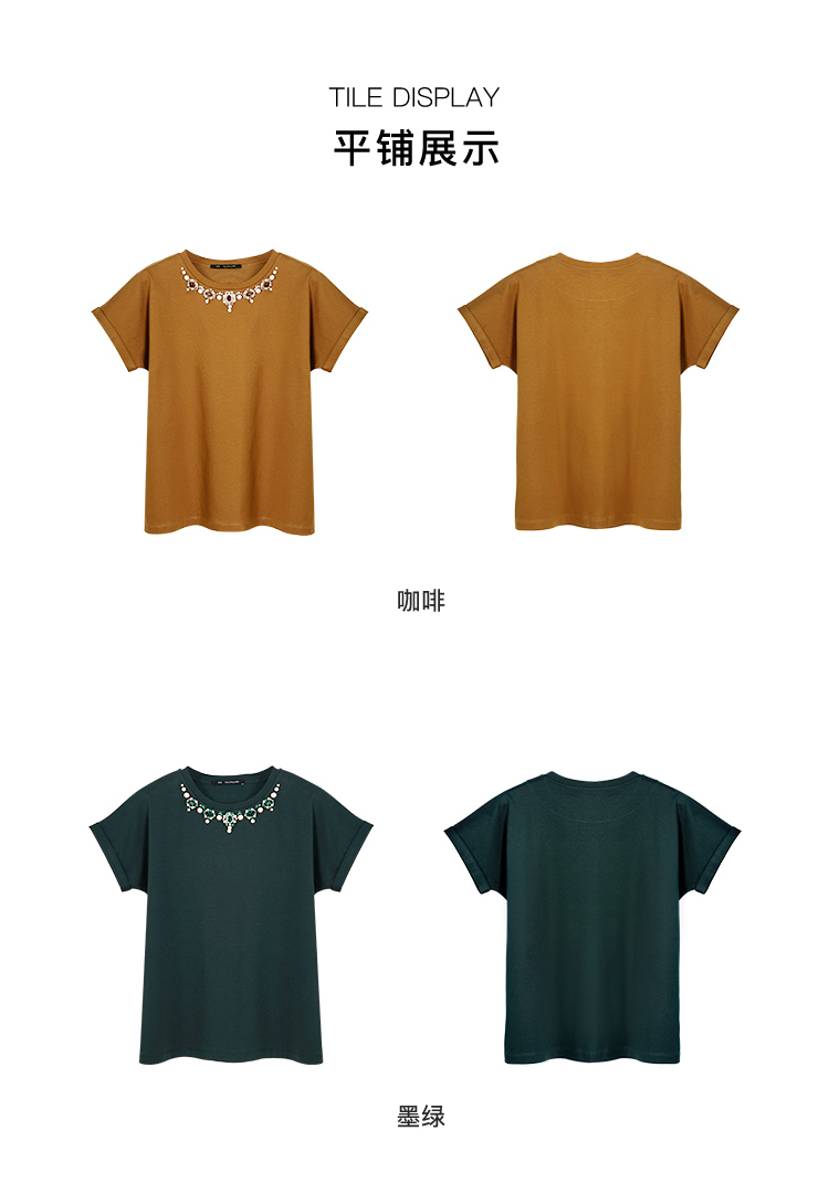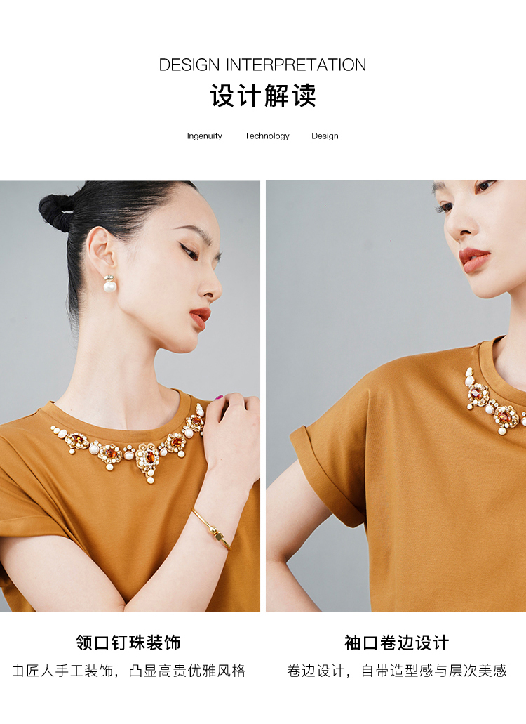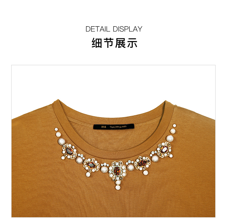 RSG郭培成衣品牌巴洛克宫廷风奢华钻饰连肩袖纯棉T恤