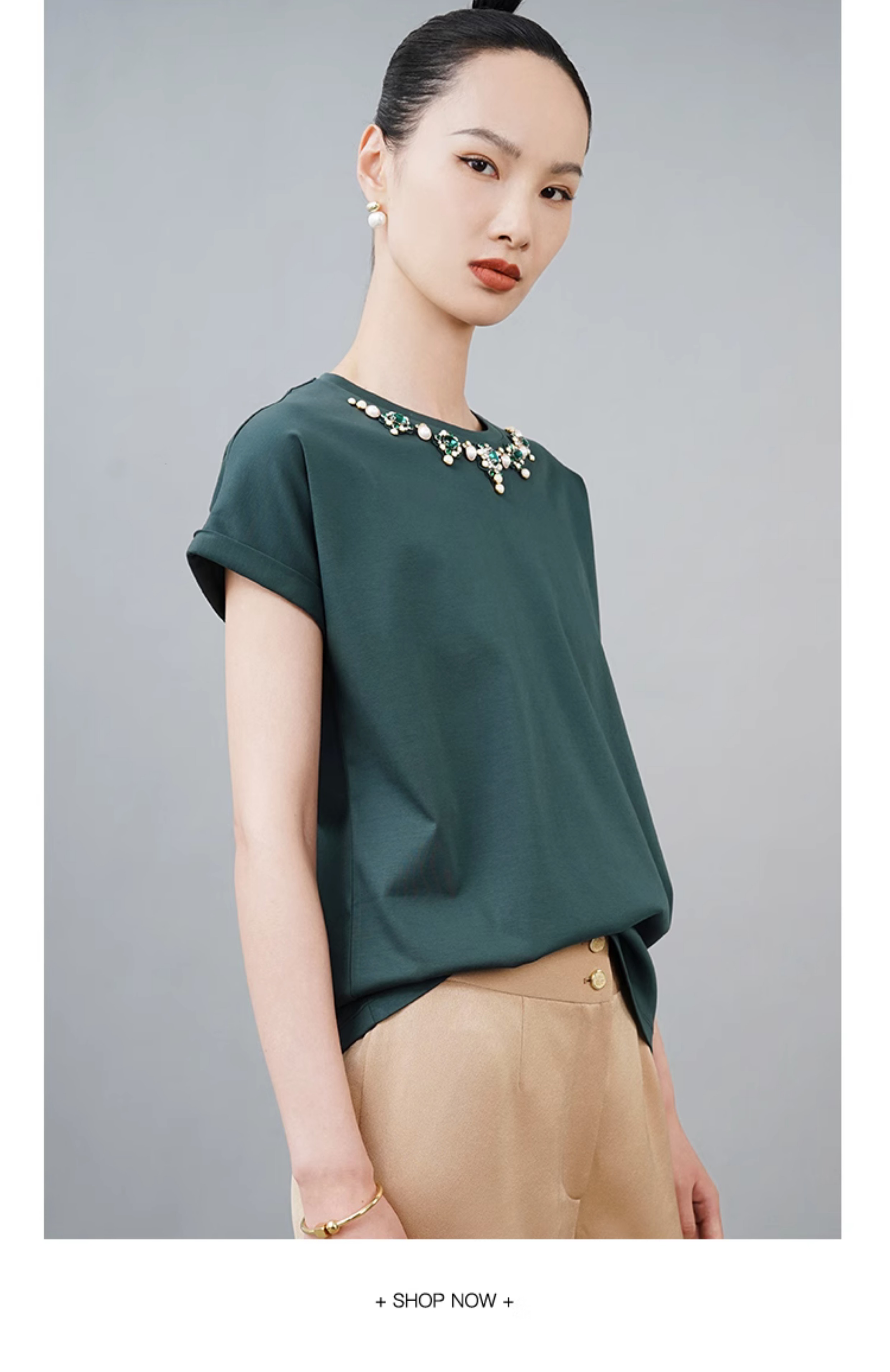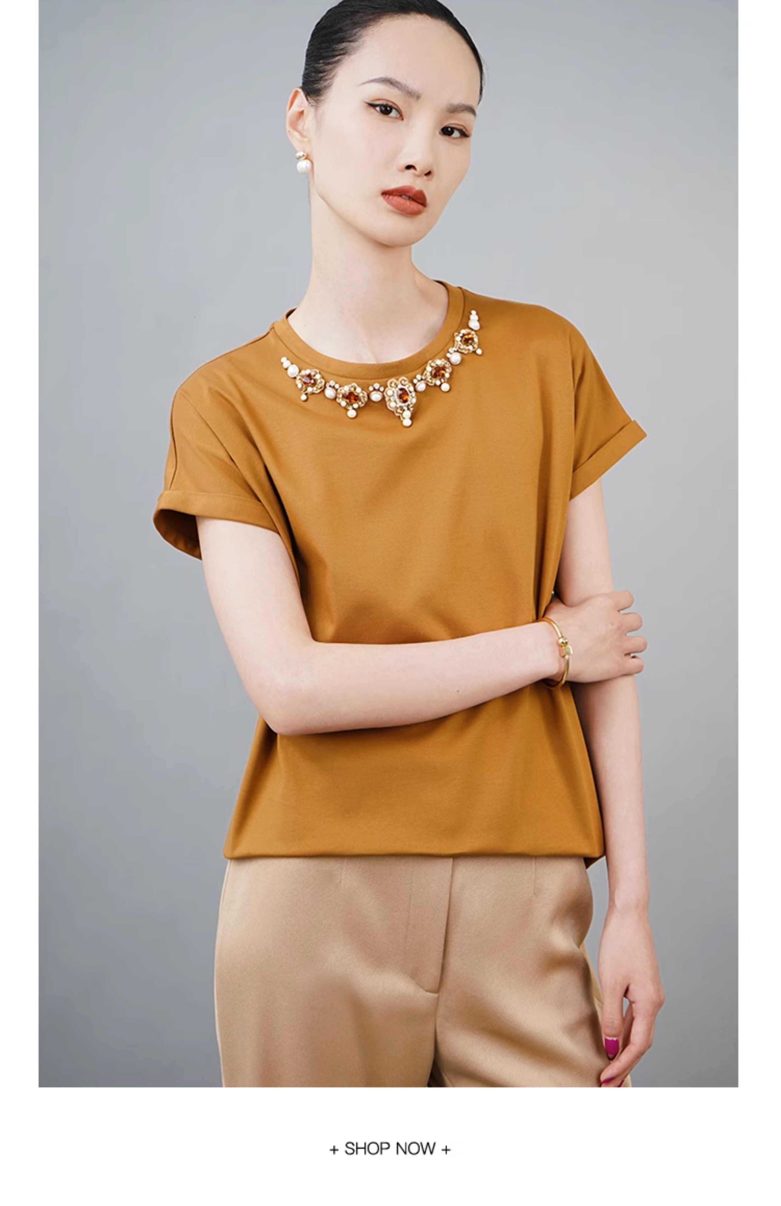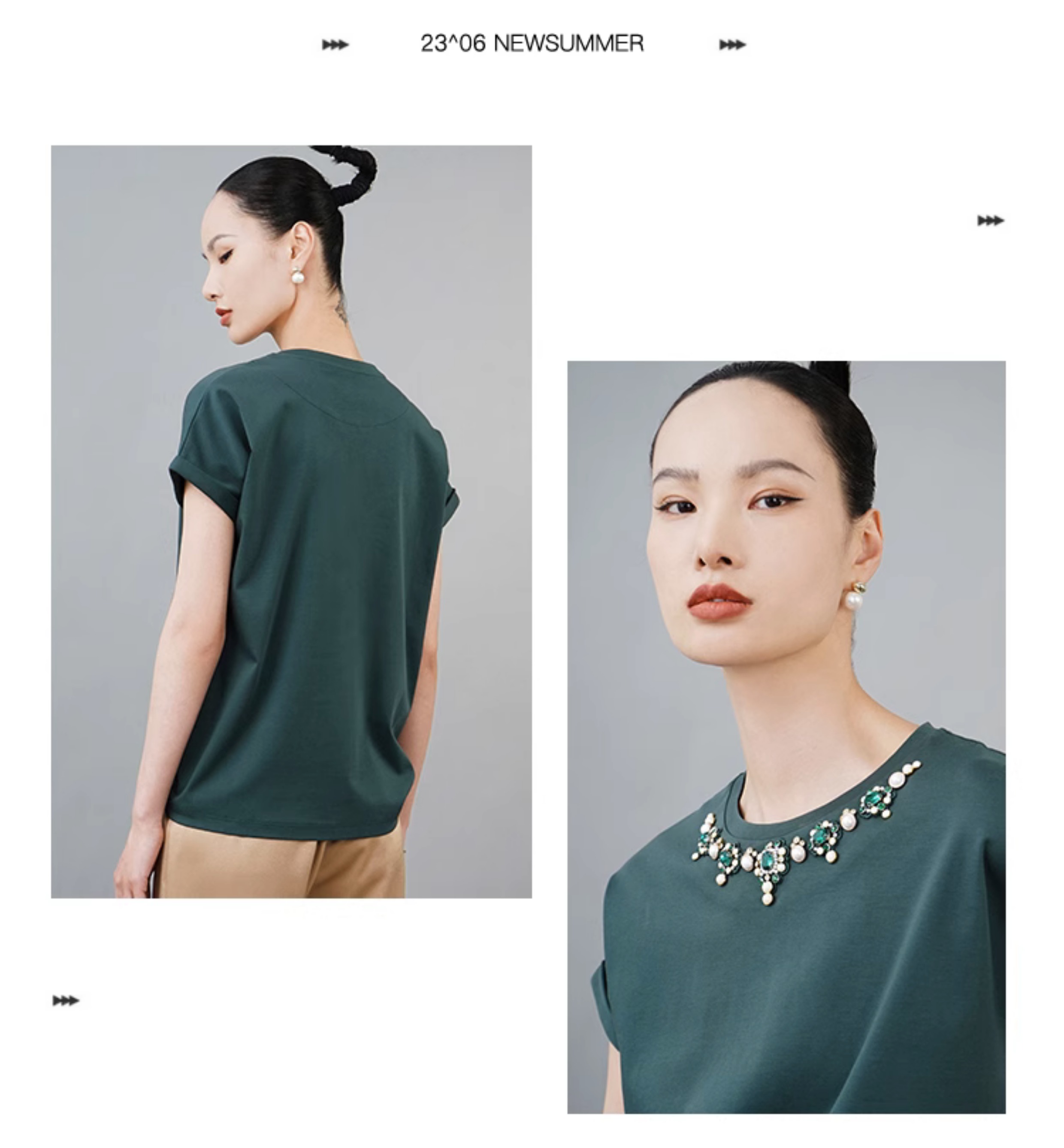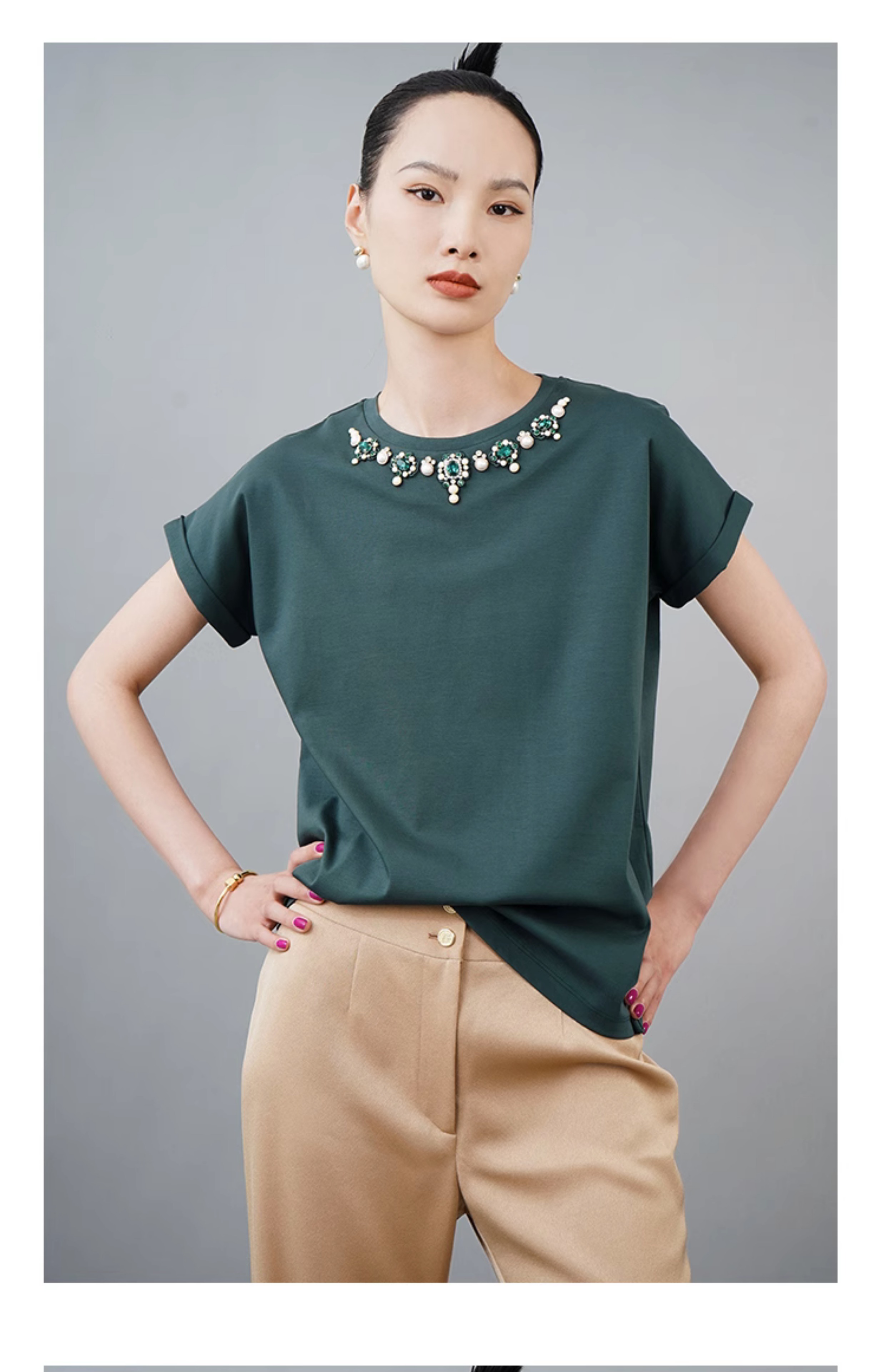 RSG郭培成衣品牌巴洛克宫廷风奢华钻饰连肩袖纯棉T恤