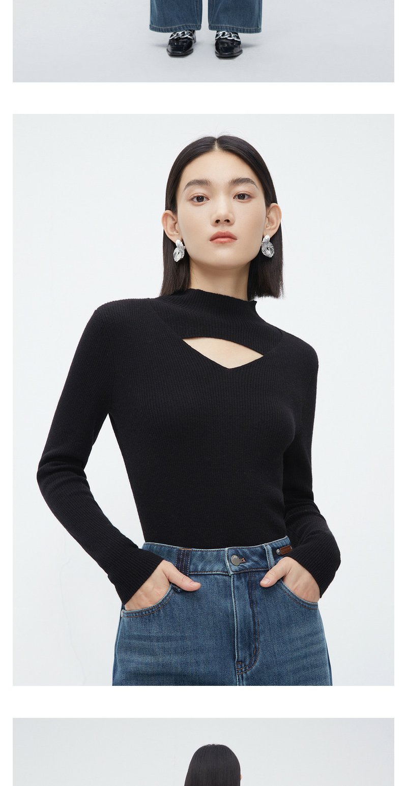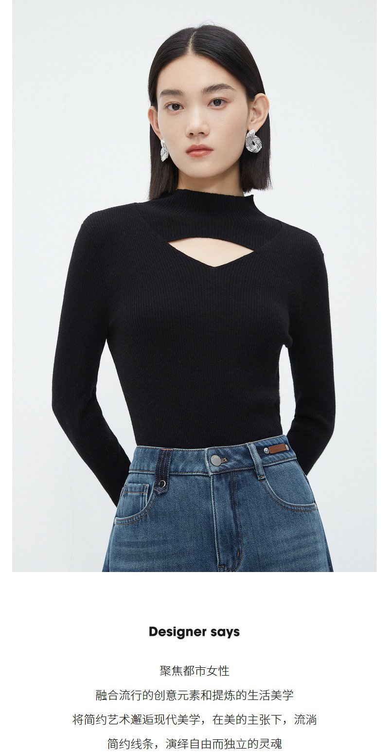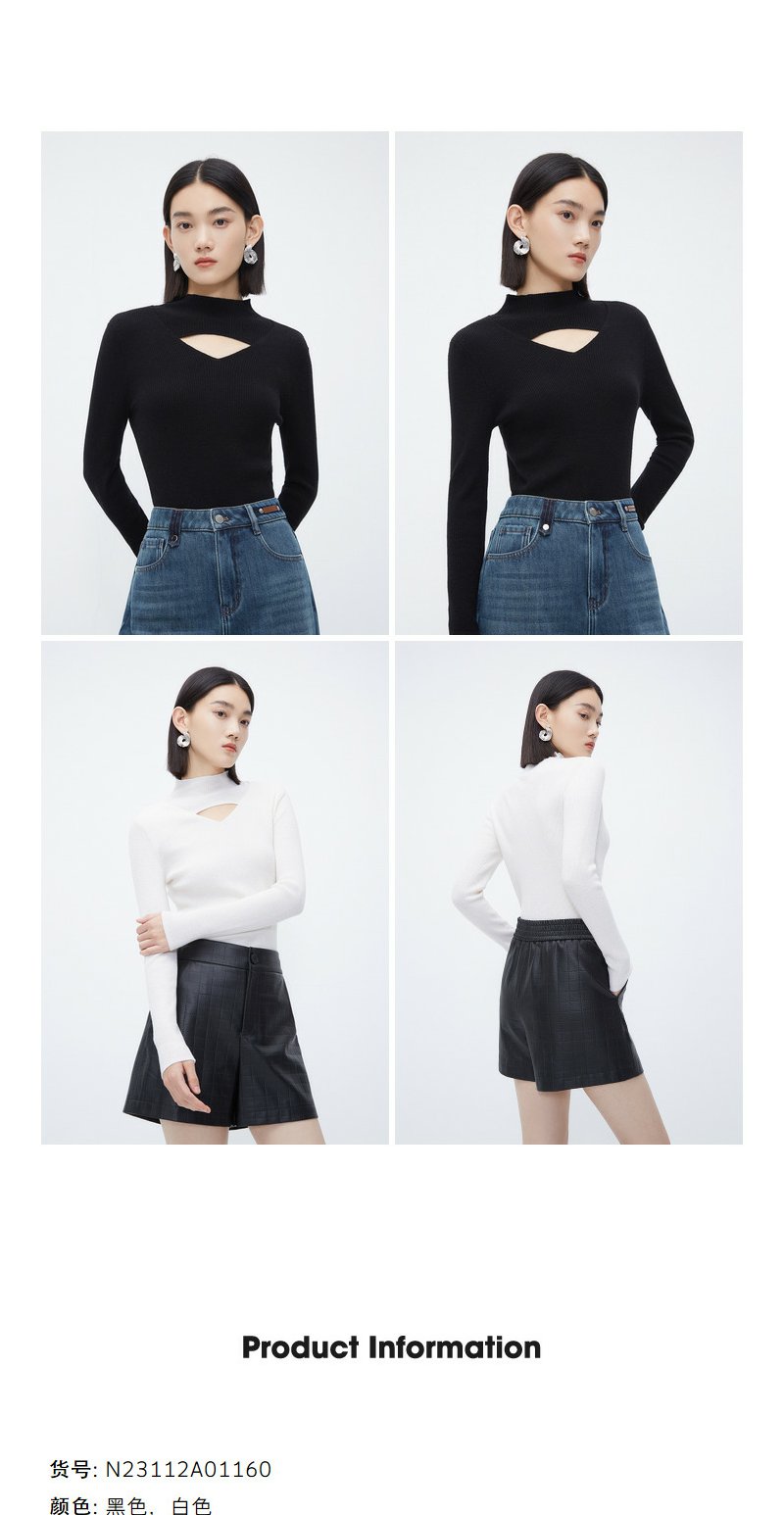 NEELLY纳俪商场同款立领镂空针织衫女冬季小心机设计感修身羊毛衫N23112A01160