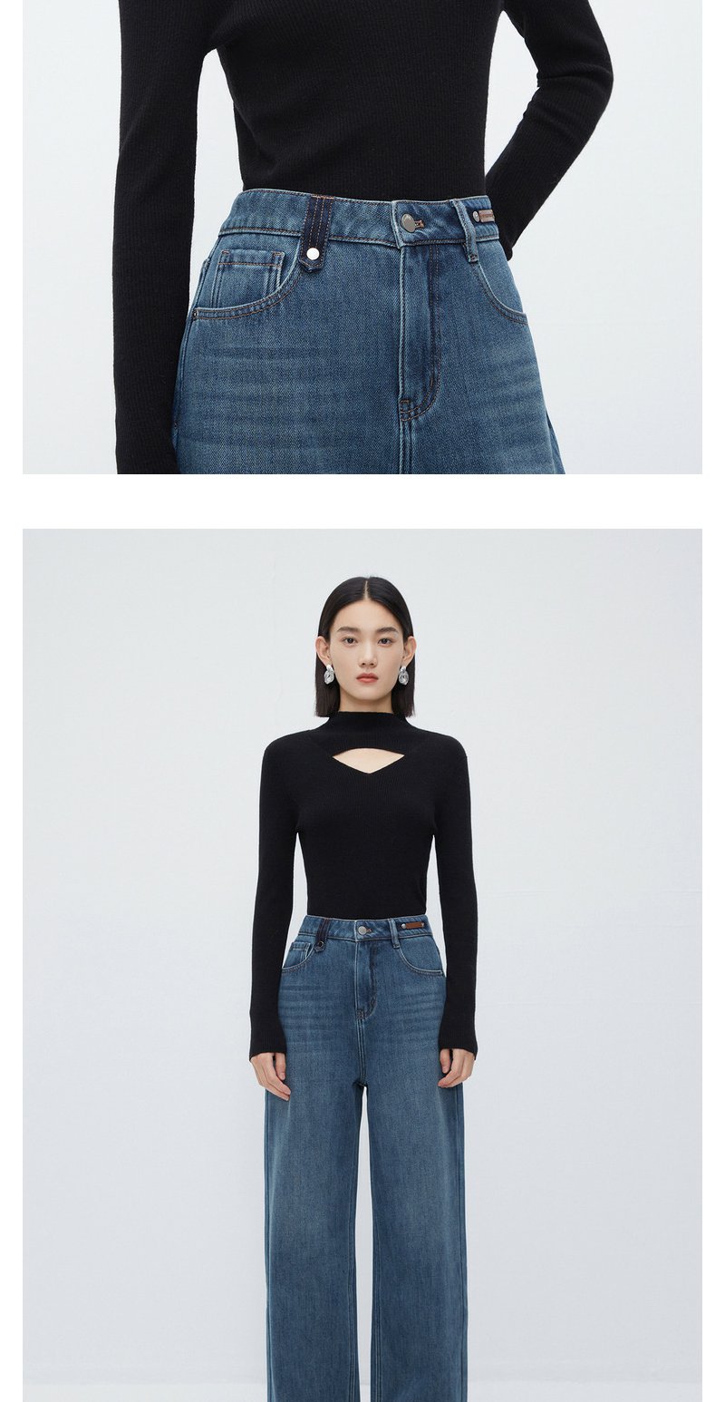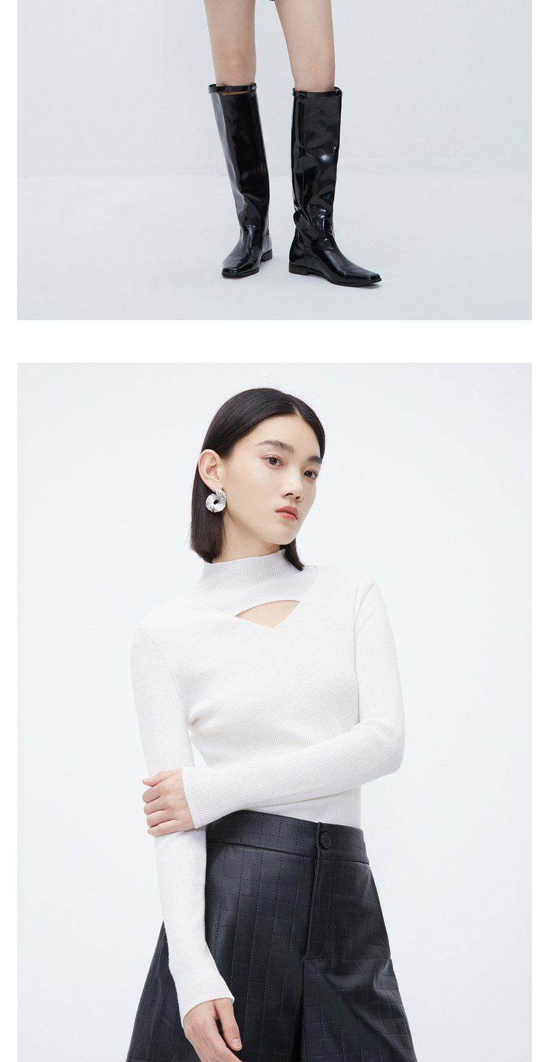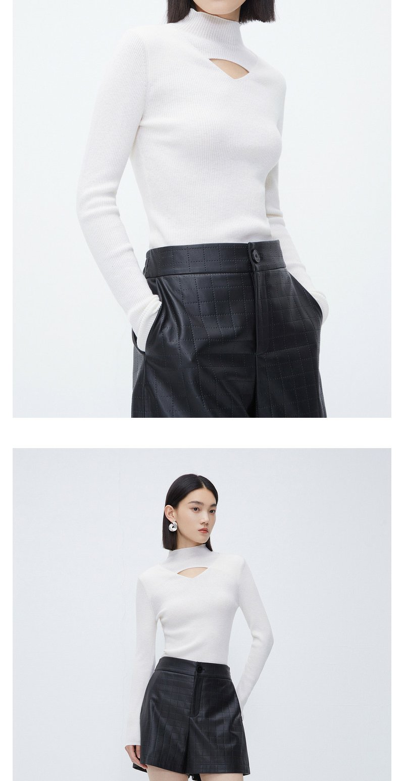 NEELLY纳俪商场同款立领镂空针织衫女冬季小心机设计感修身羊毛衫N23112A01160