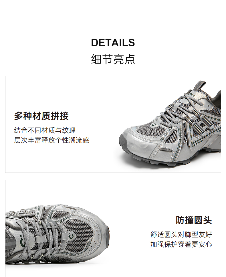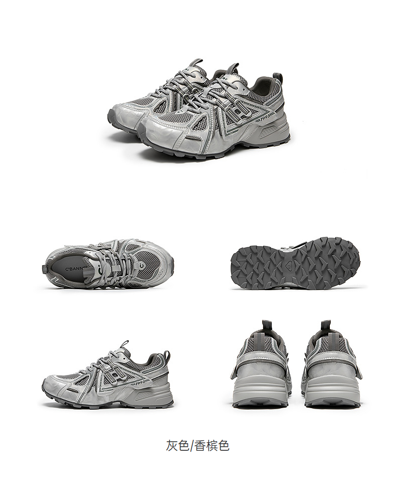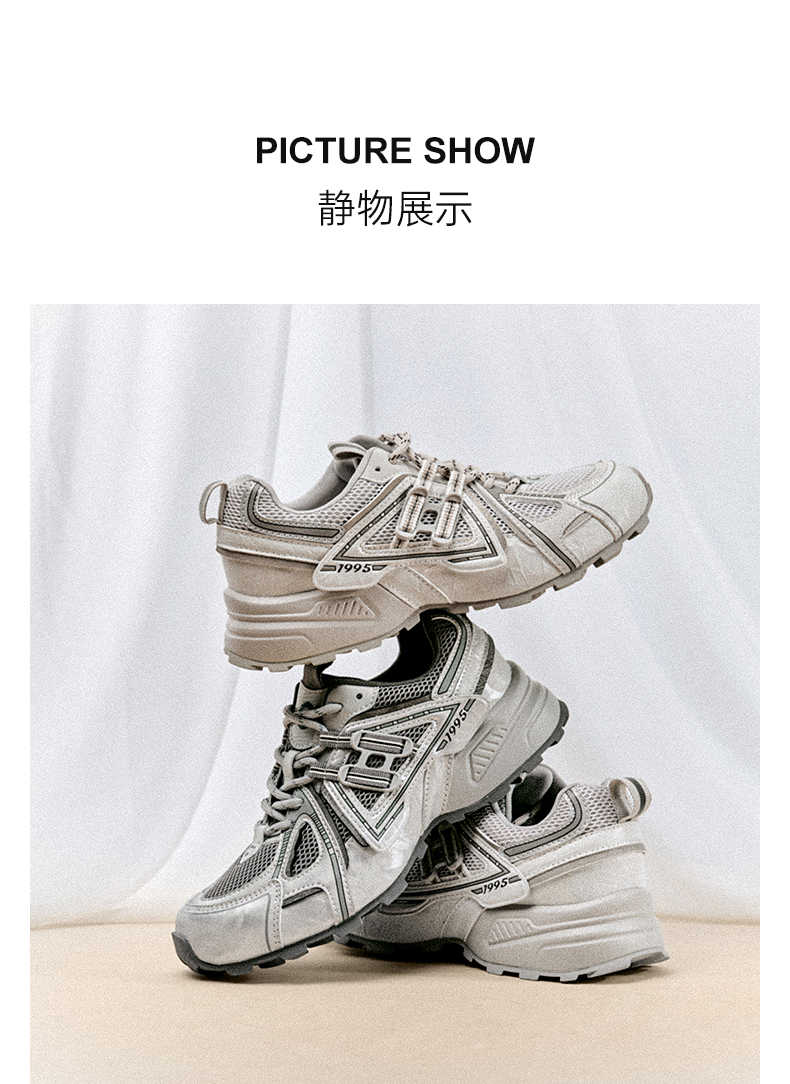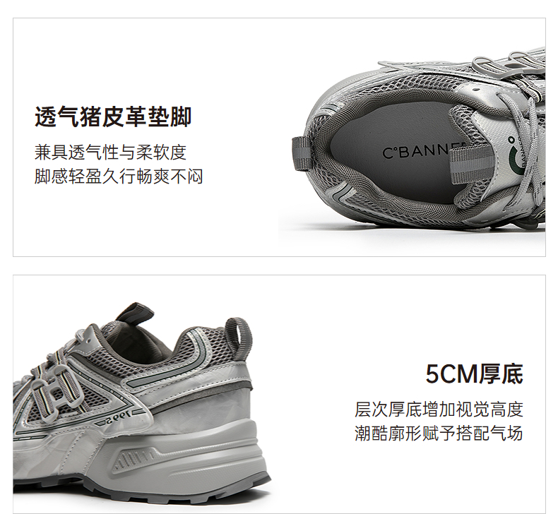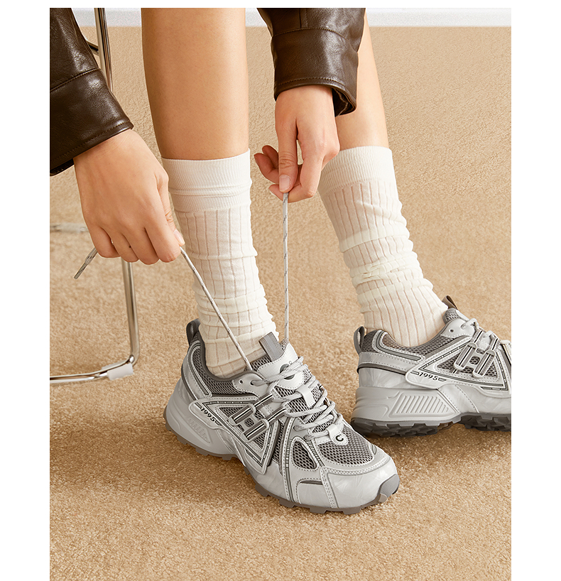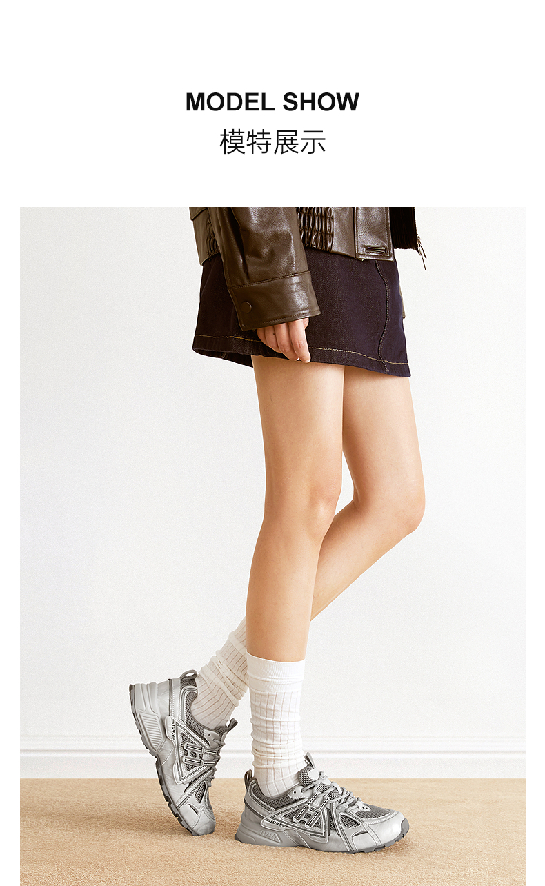 千百度厚底老爹鞋女2026春季新款防撞圆头网面增高透气运动休闲鞋A26107702