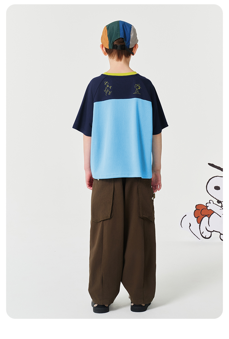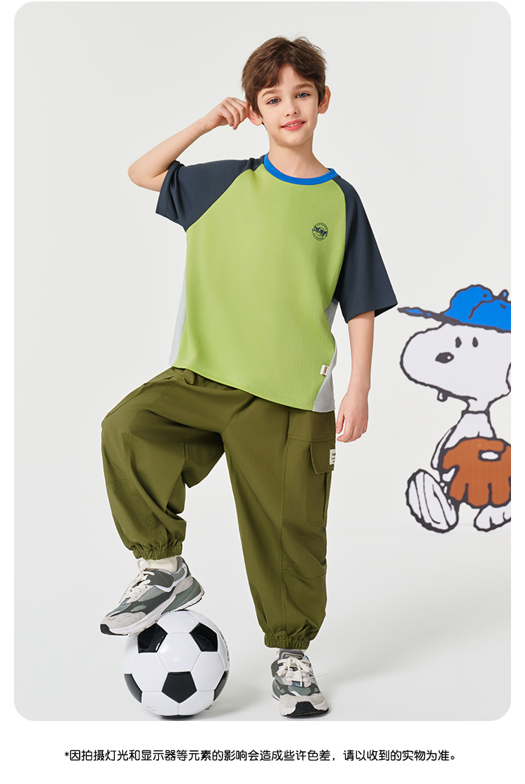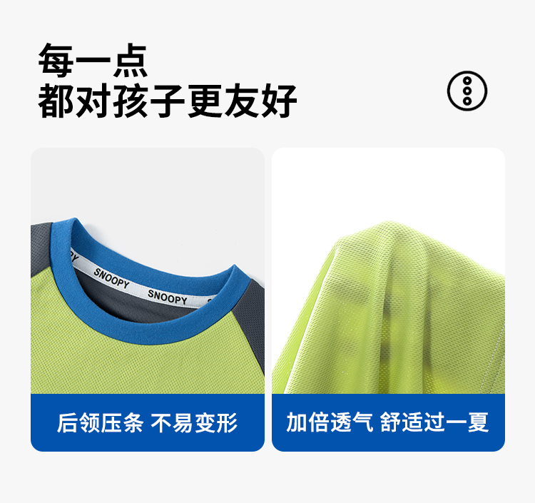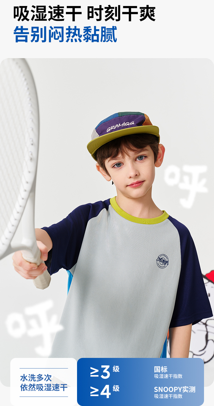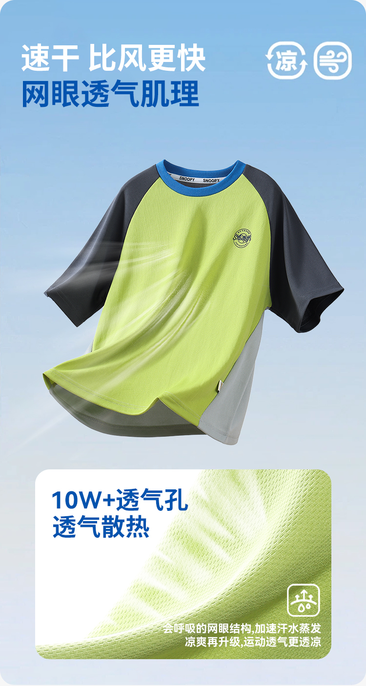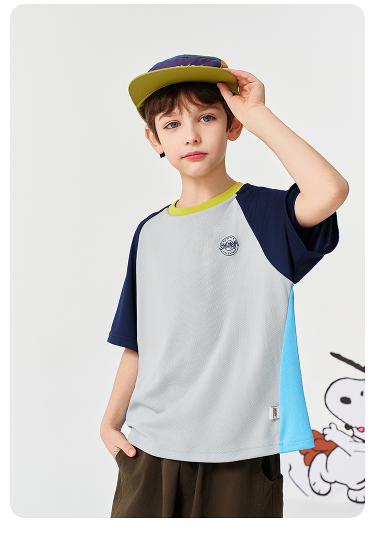 【速干网眼短袖】【130-170】【史努比】男童夏季短袖t恤圆领撞色卡通上衣