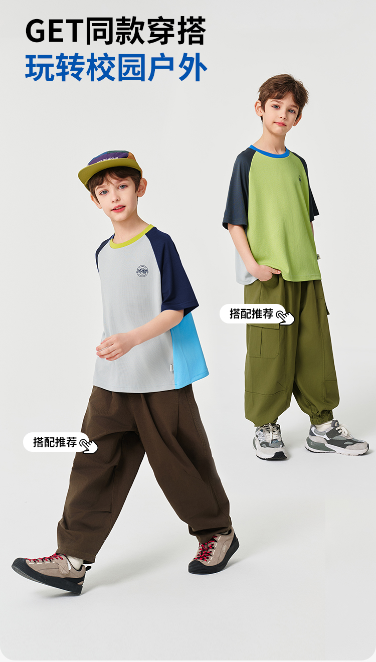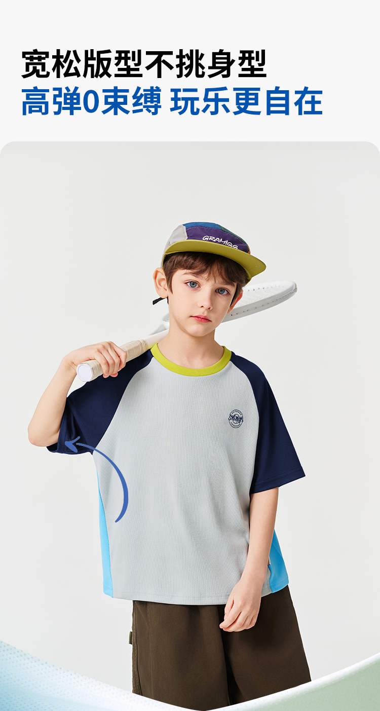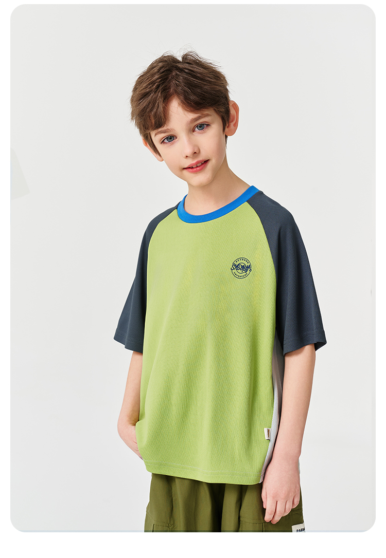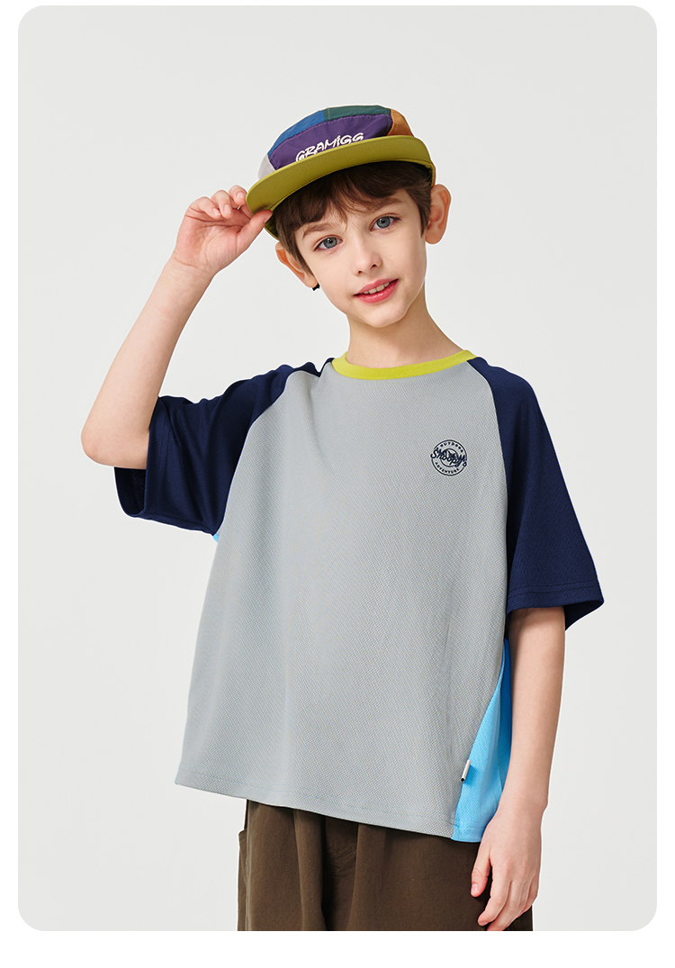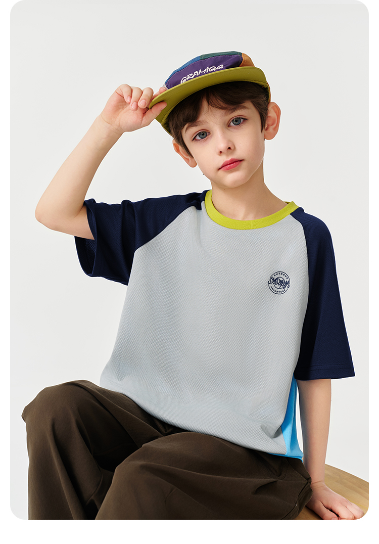 【速干网眼短袖】【130-170】【史努比】男童夏季短袖t恤圆领撞色卡通上衣