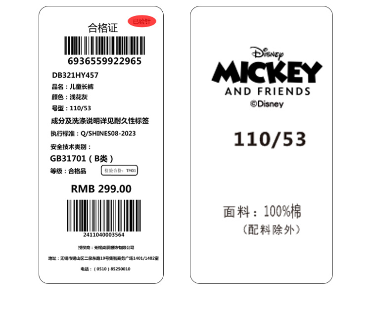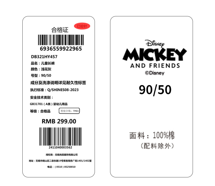【90-140】【迪士尼】女童春秋款休闲束脚百搭卫裤裤子