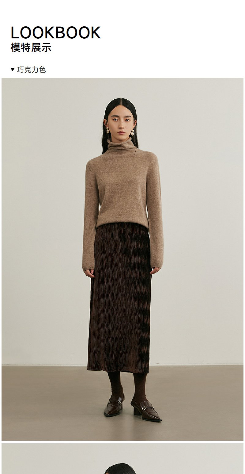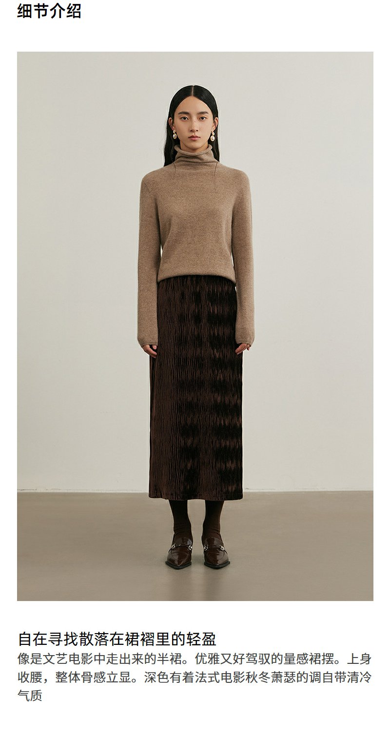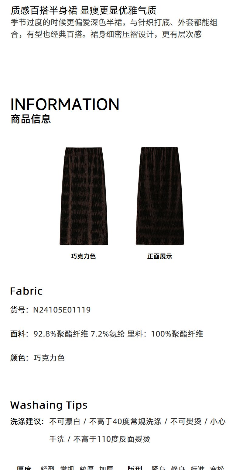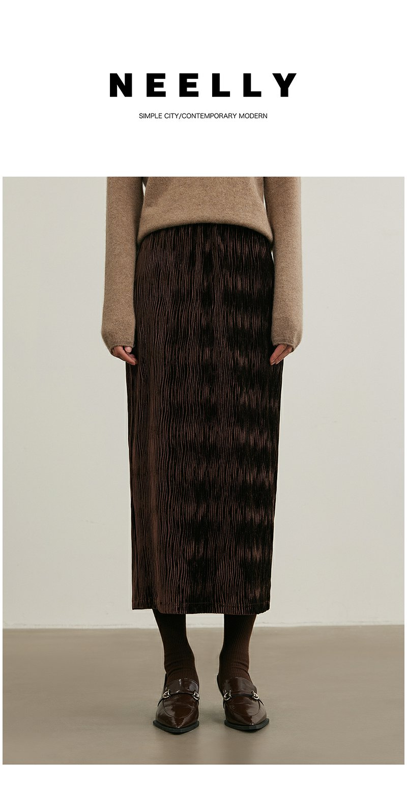 NEELLY纳俪商场同款冬季新款法式深色半身裙女压褶质感百搭针织裙N24105E01119