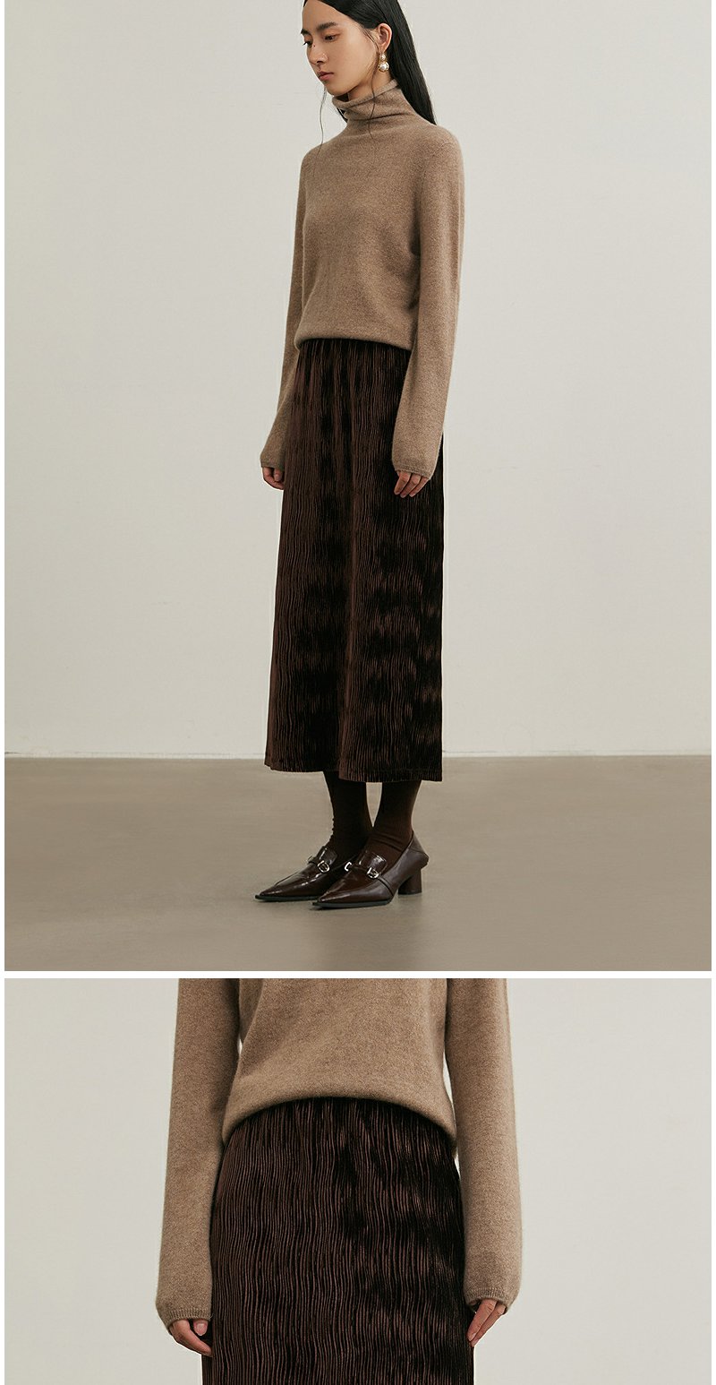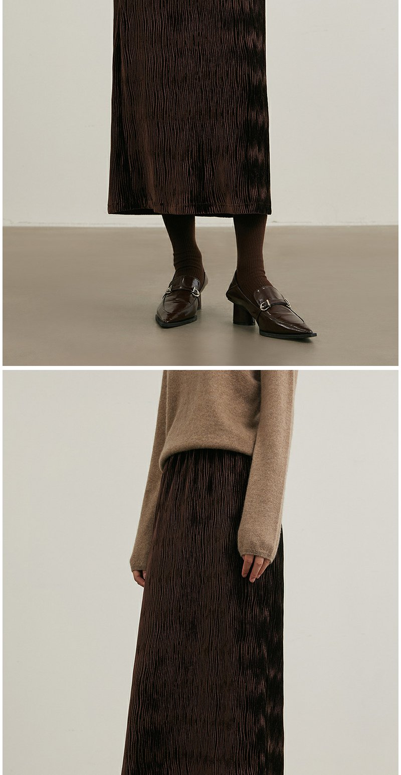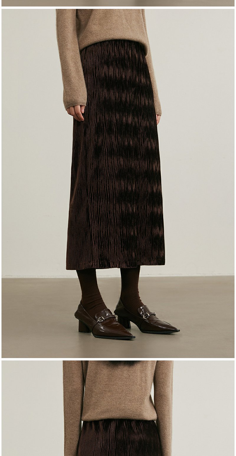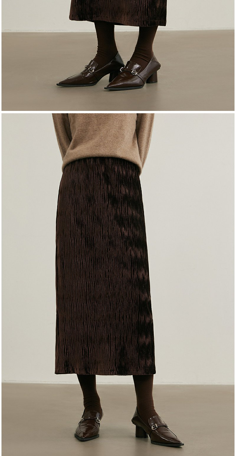 NEELLY纳俪商场同款冬季新款法式深色半身裙女压褶质感百搭针织裙N24105E01119
