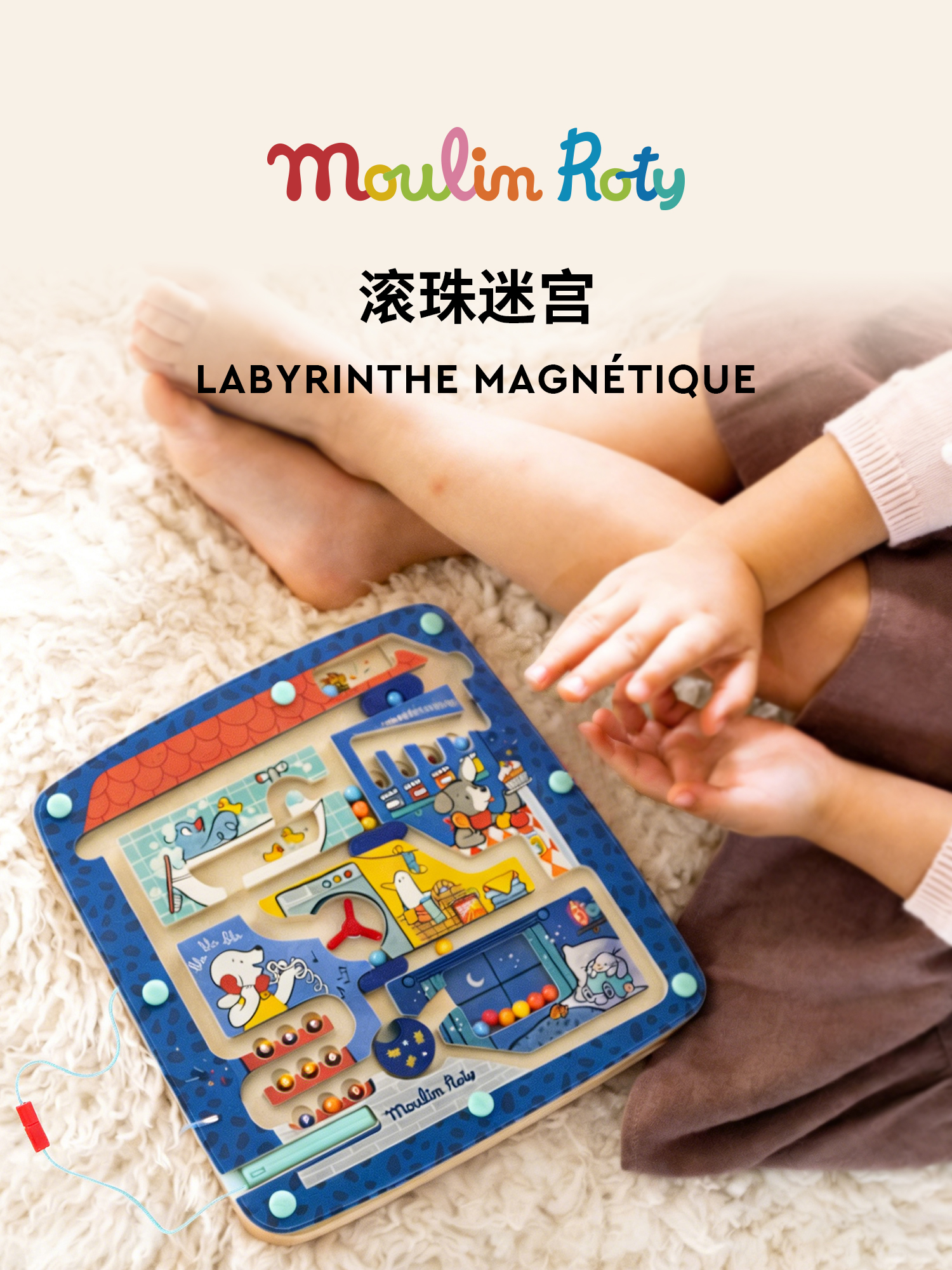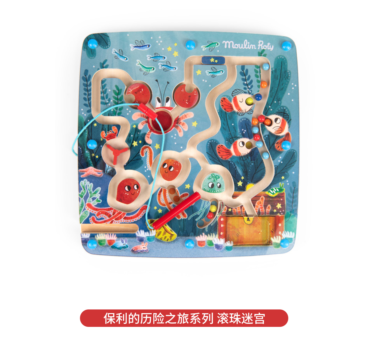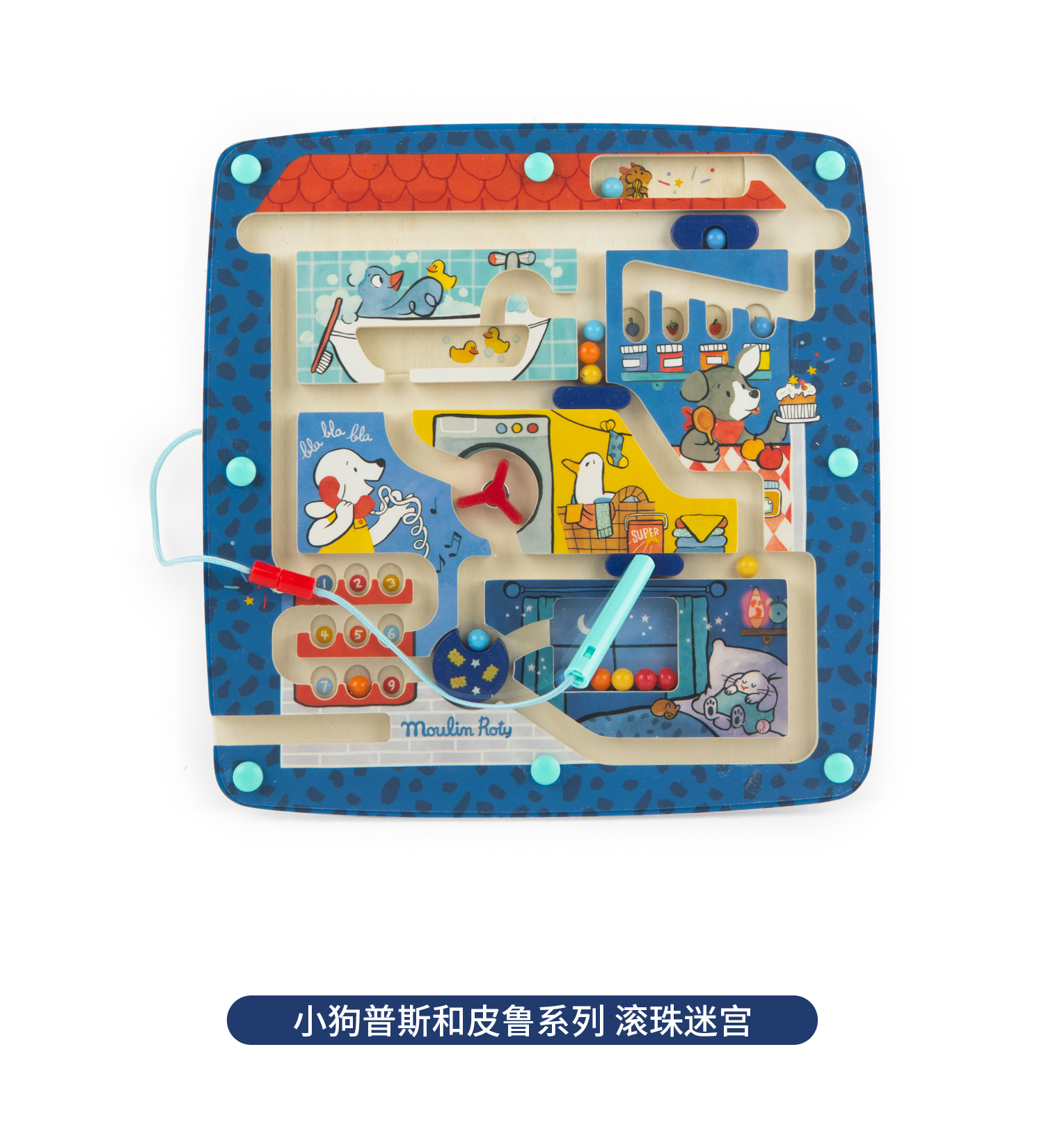 Moulin Roty 滚珠迷宫 小狗普斯和皮鲁系列 磁力游戏 木质益玩 适合1岁半以上 法国品牌 -684084
