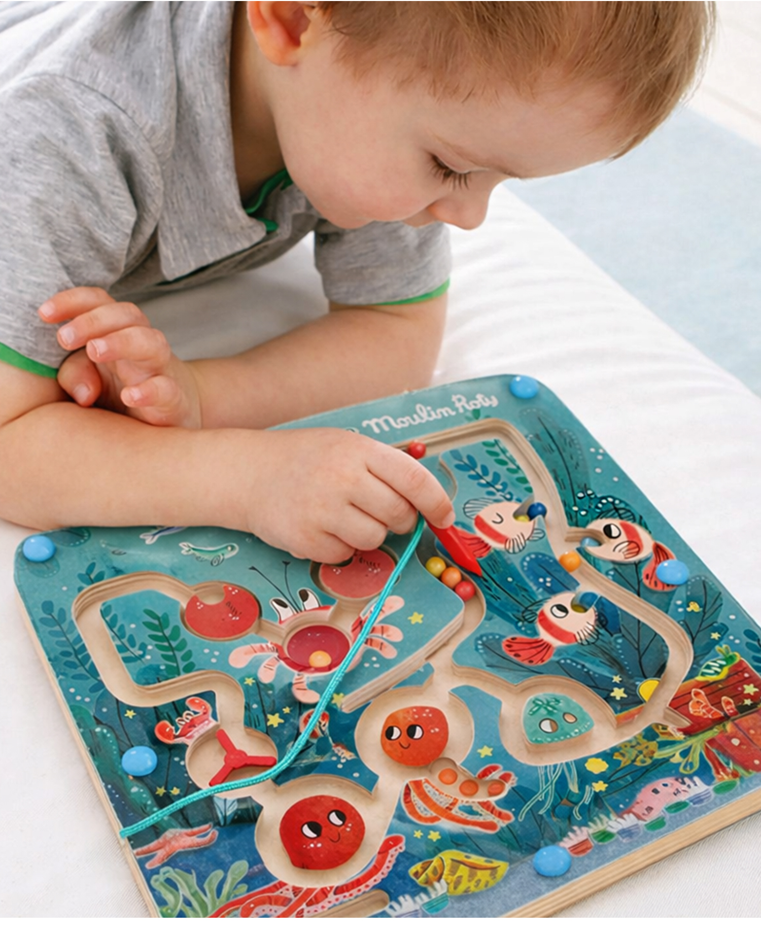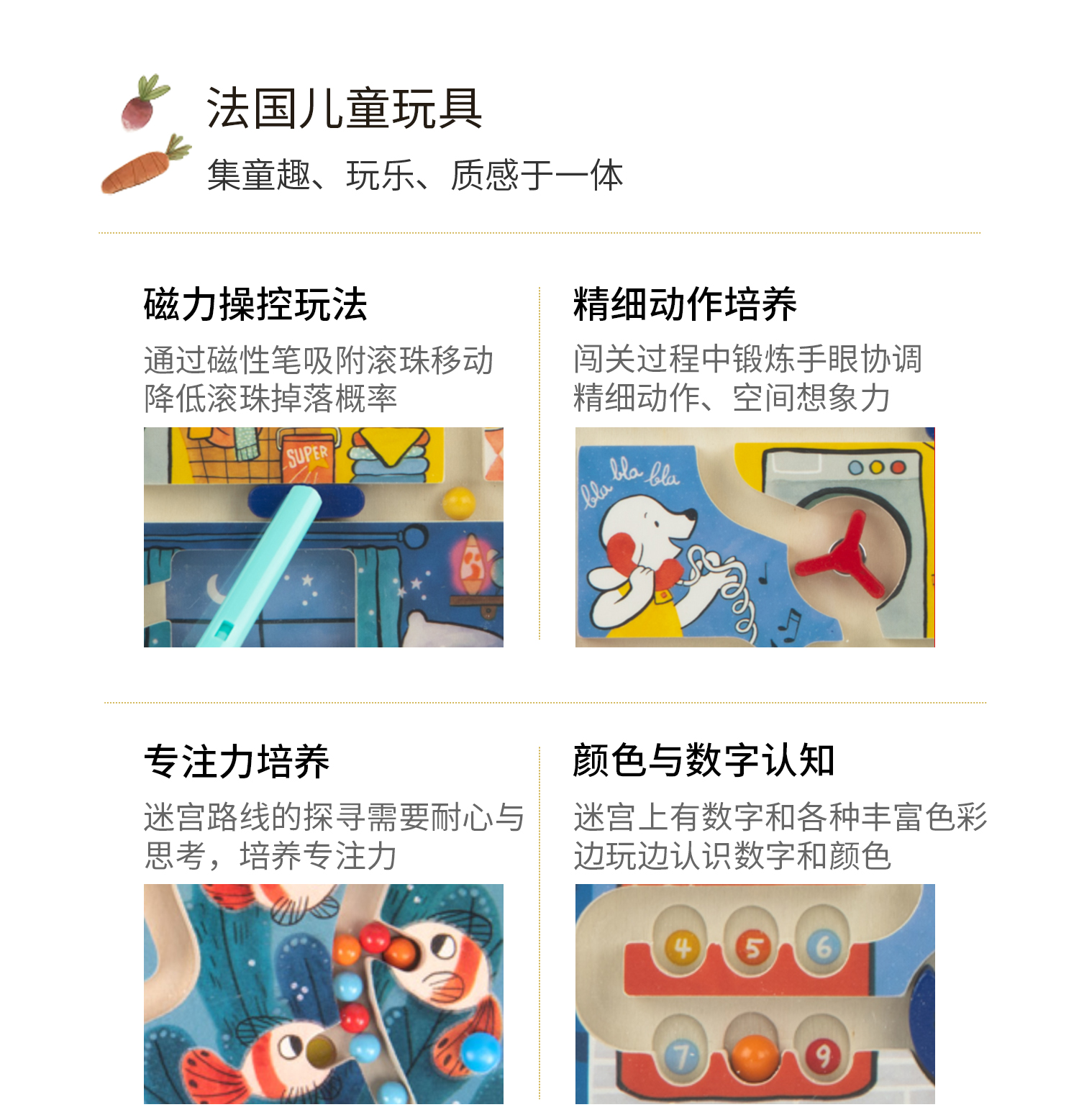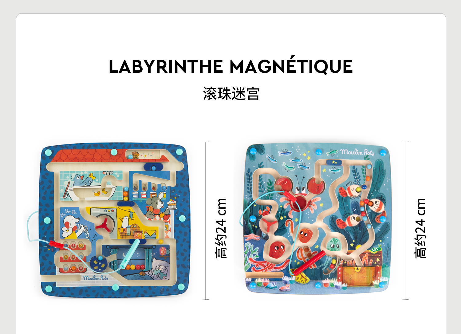 Moulin Roty 滚珠迷宫 小狗普斯和皮鲁系列 磁力游戏 木质益玩 适合1岁半以上 法国品牌 -684084