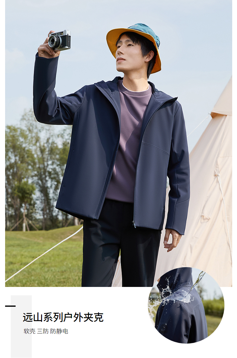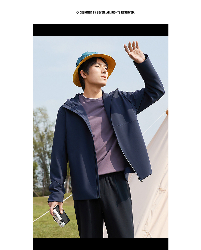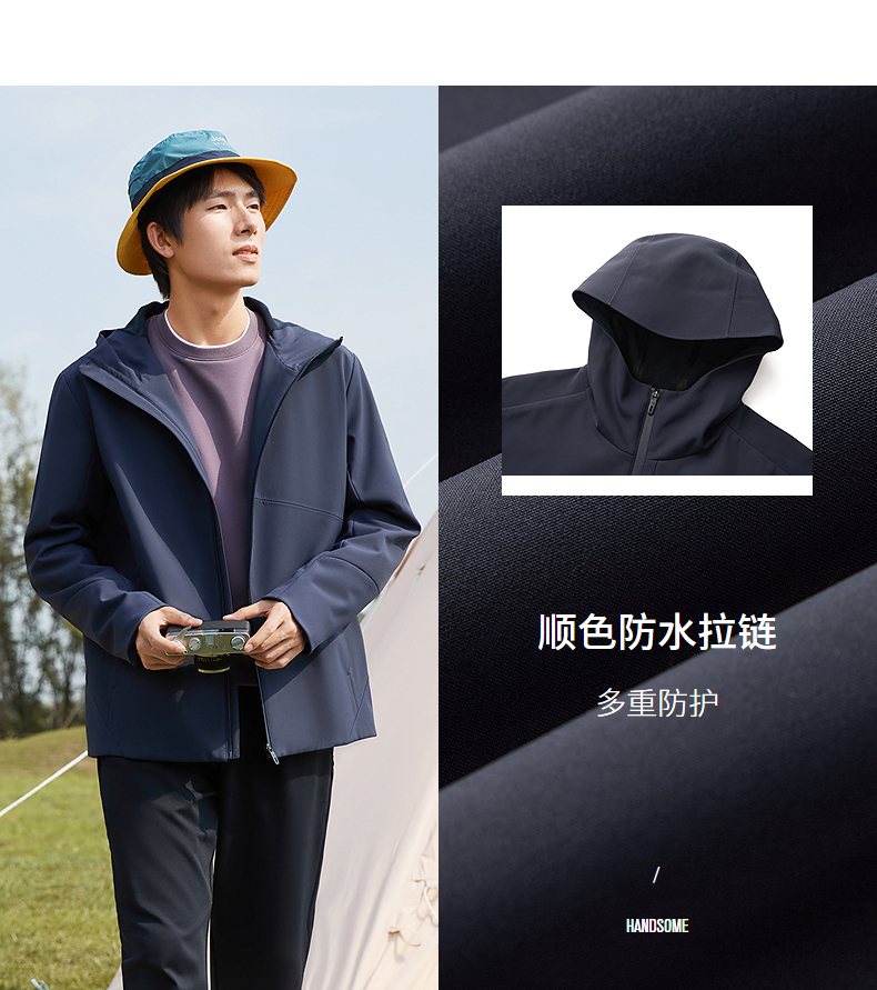 【三防】柒牌男装夹克男2024秋冬新款时尚休闲轻户外连帽软壳外套 127K70870