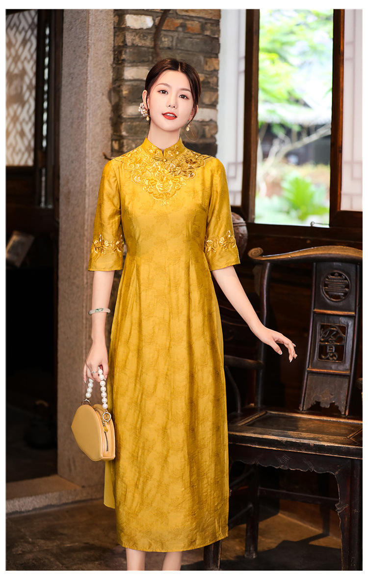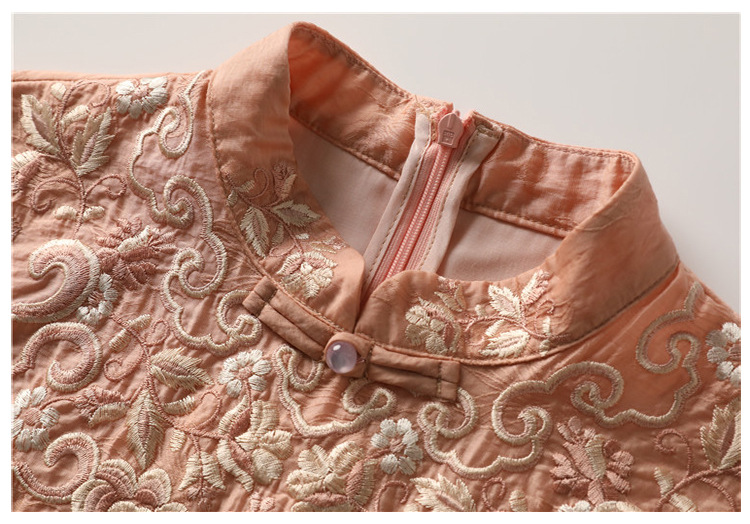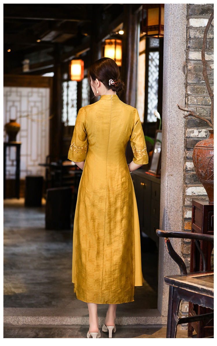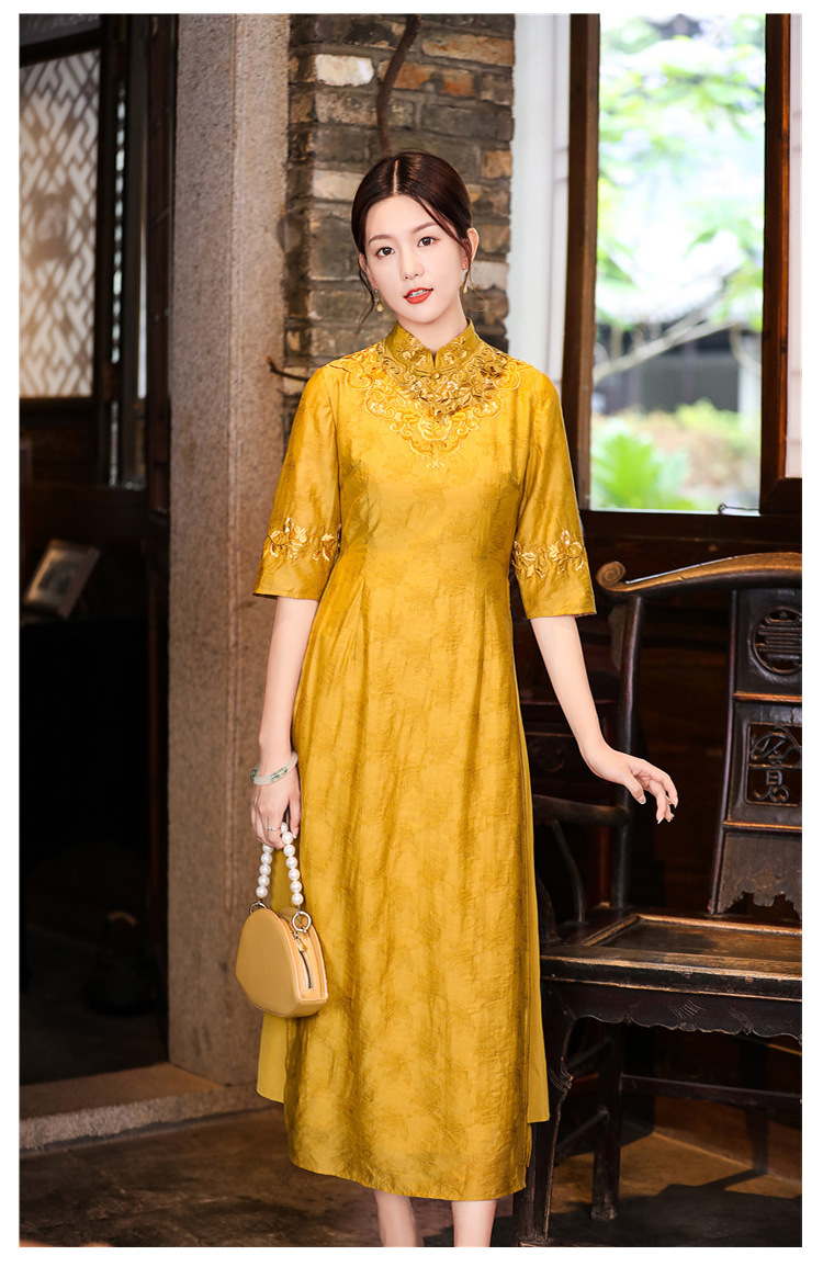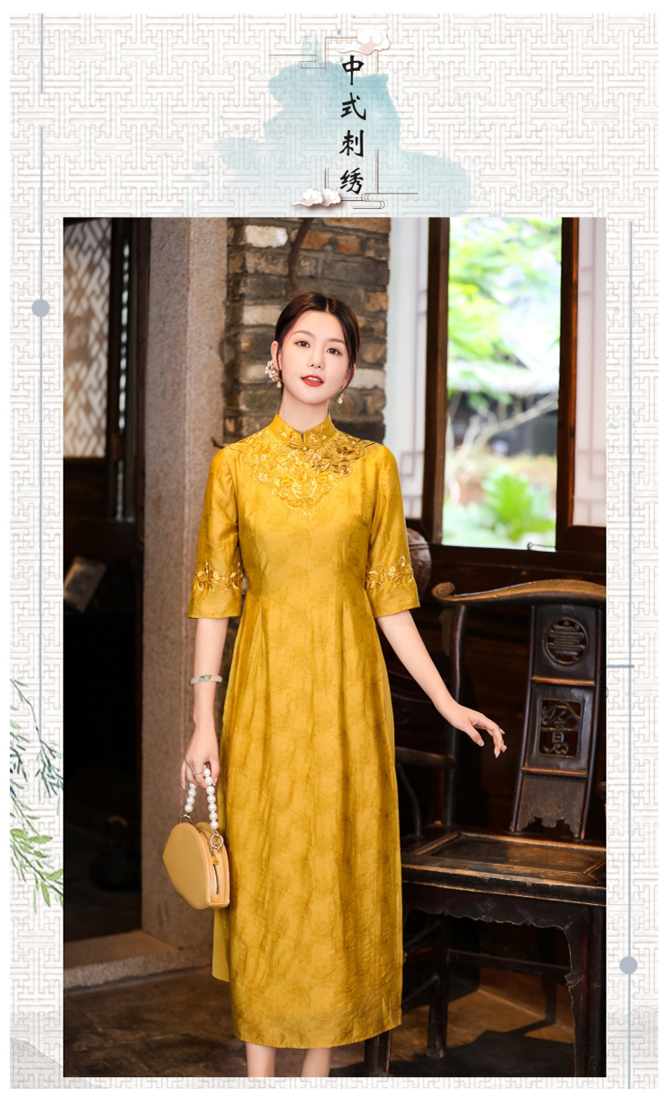 中式刺绣民族风唐装修身复古旗袍大码连衣裙FL-2195