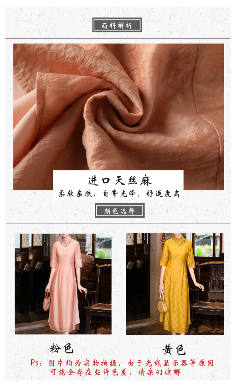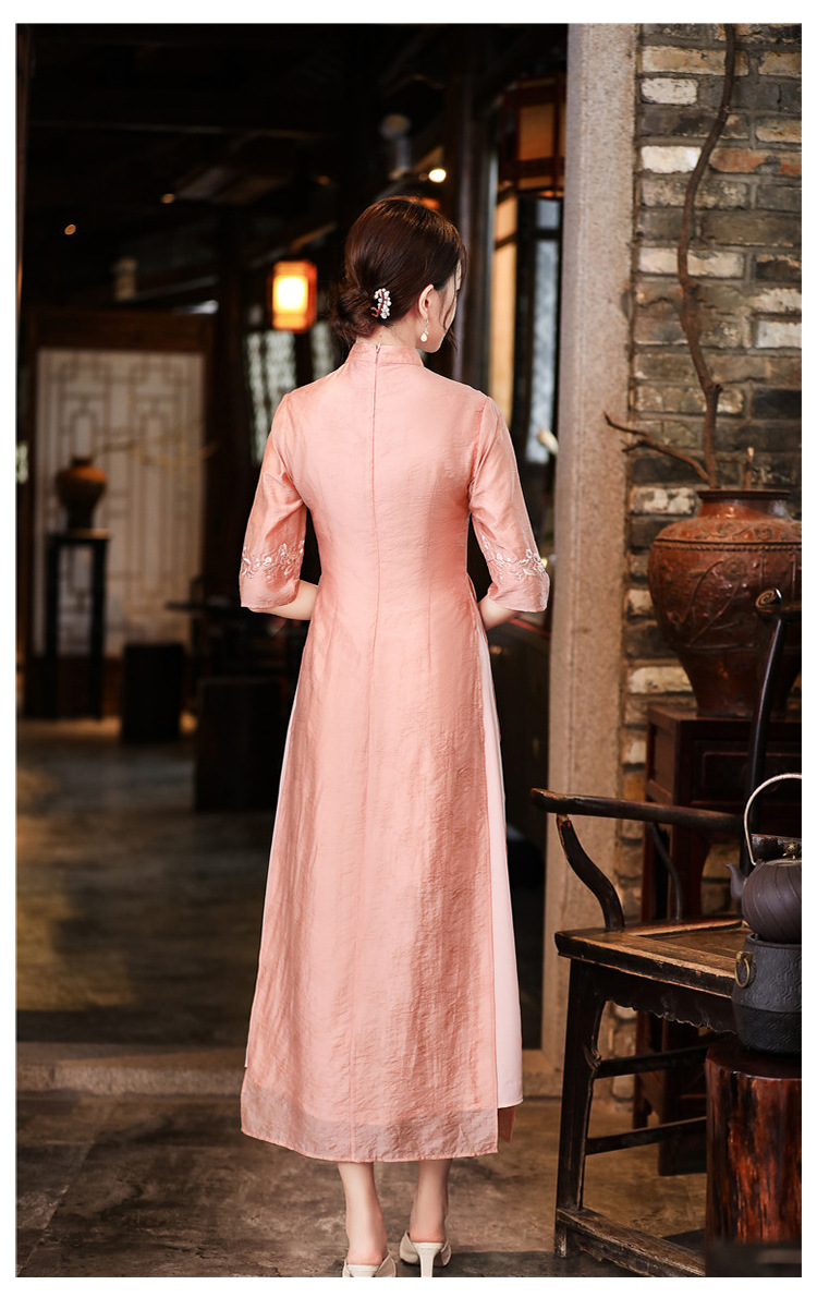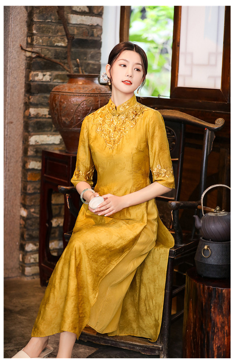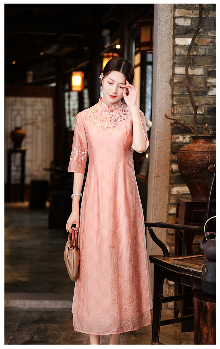 中式刺绣民族风唐装修身复古旗袍大码连衣裙FL-2195