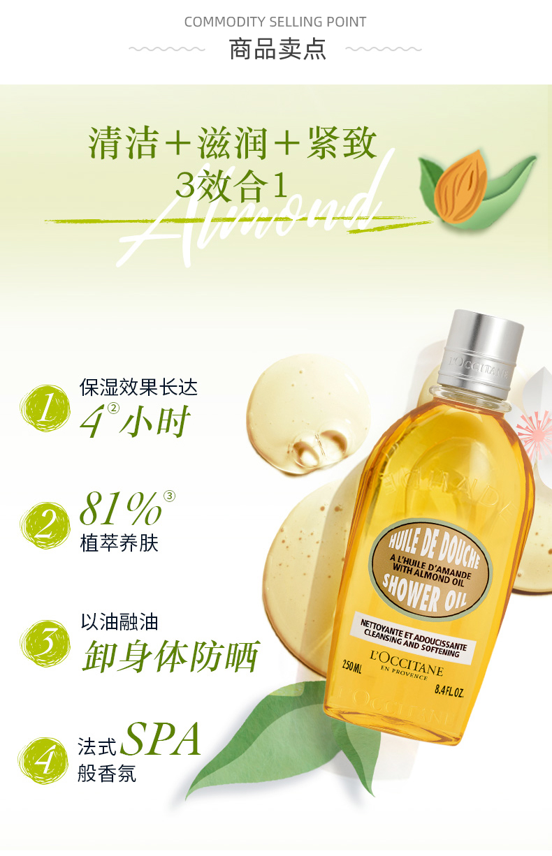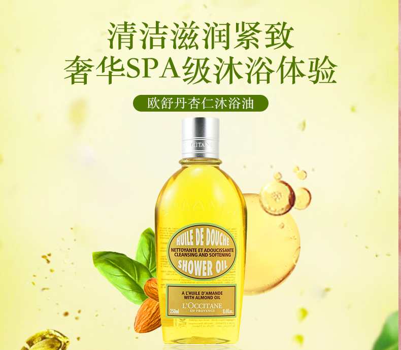 法国欧舒丹甜扁桃紧致沐浴油250ml/117661 全身清洁舒缓保湿温和洁净