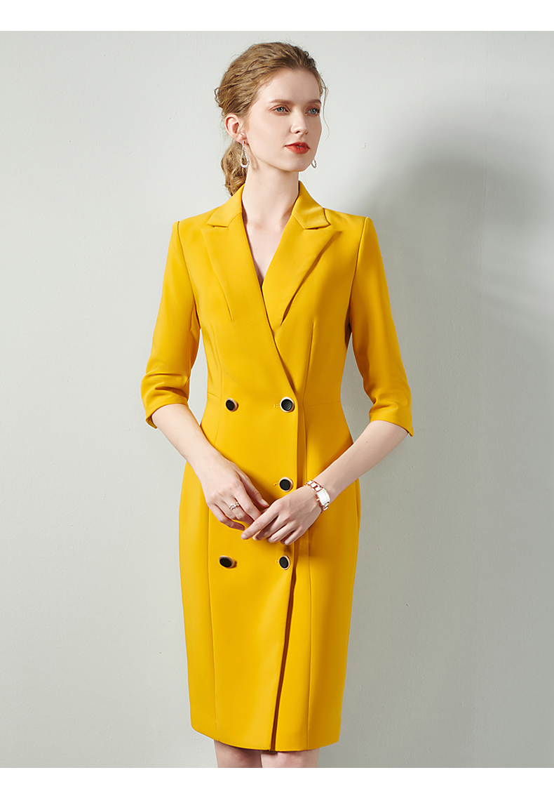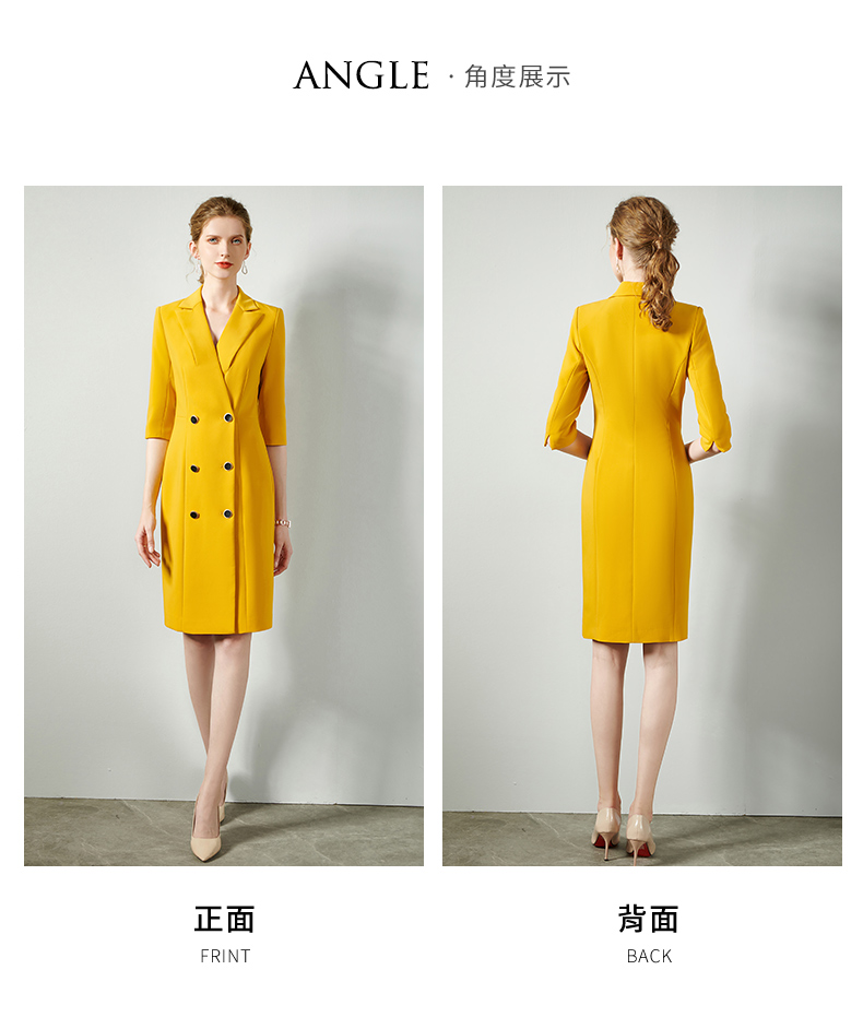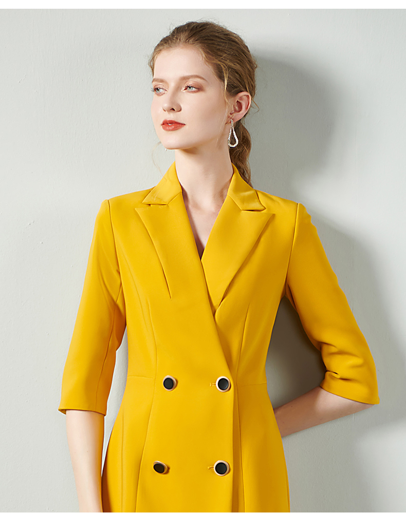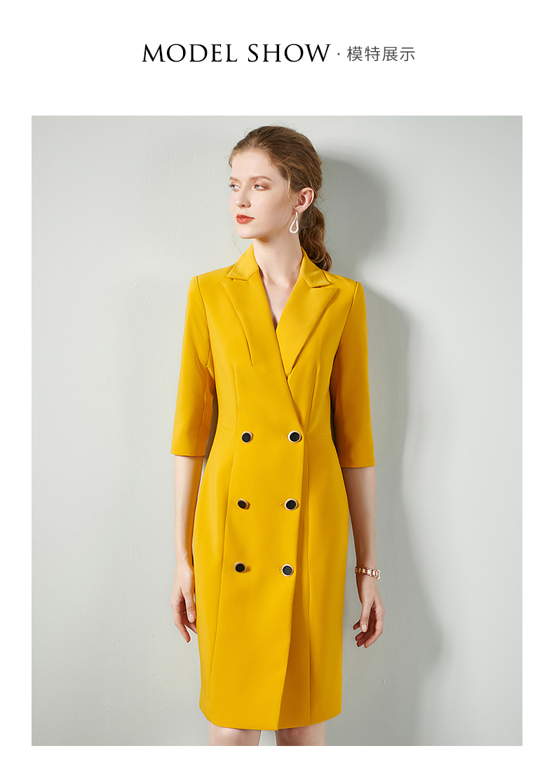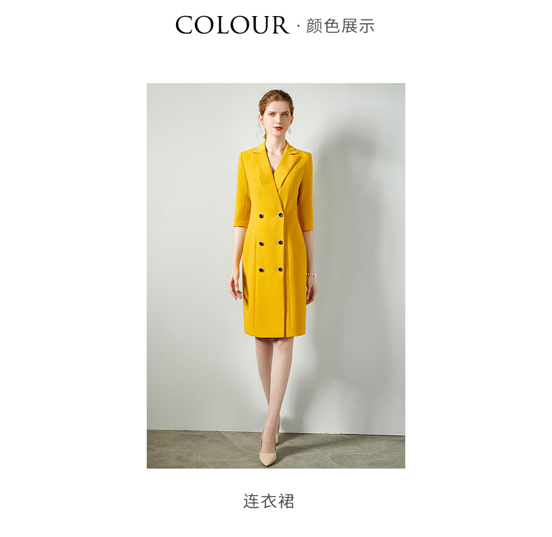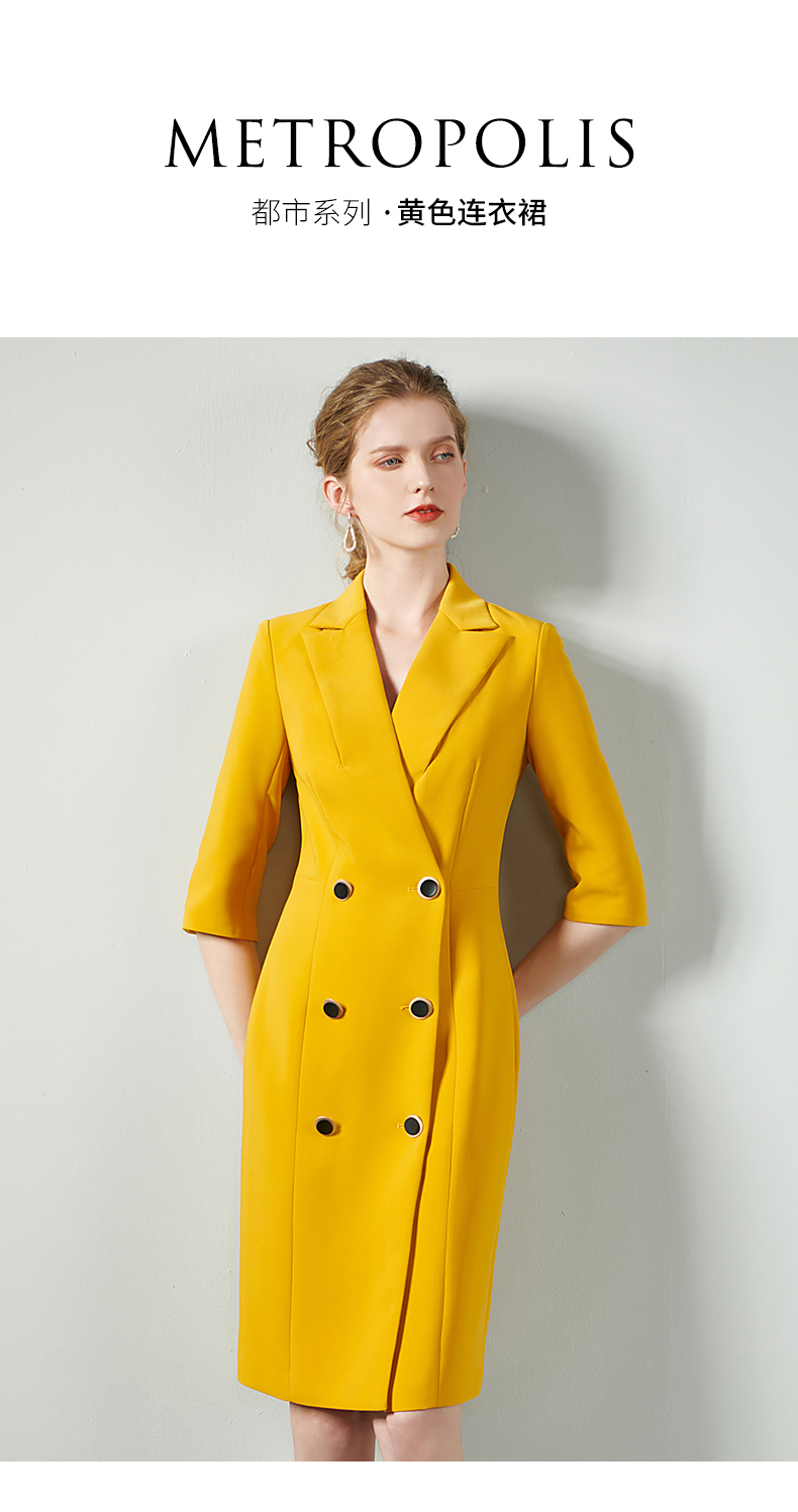 IWY/黄色时尚连衣裙套裙女修身双排扣02Q1