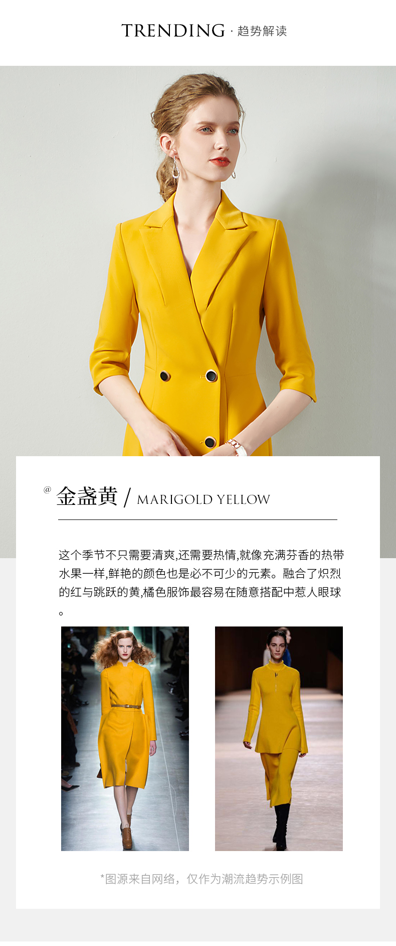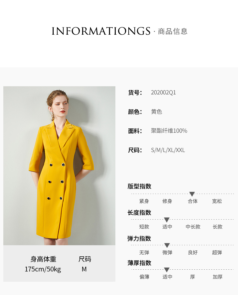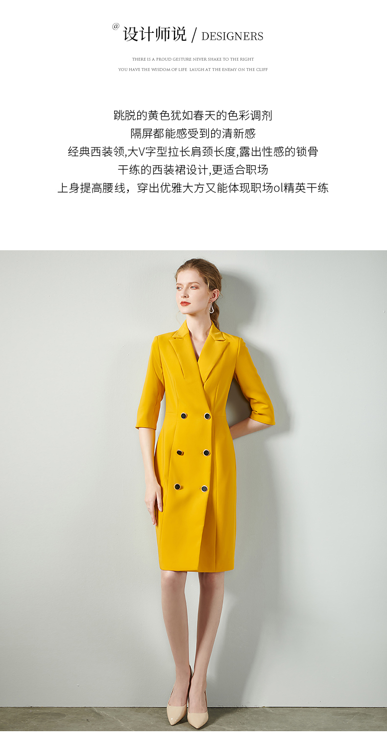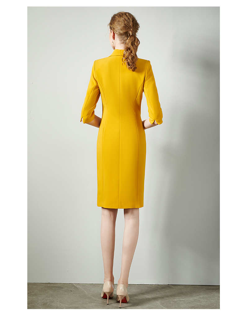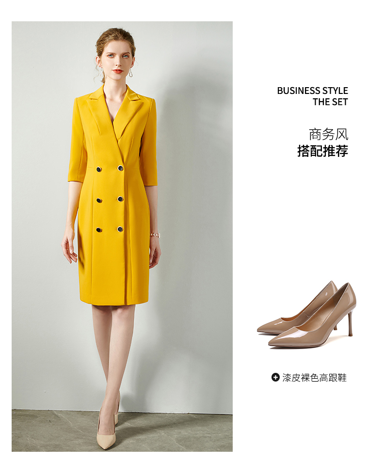 IWY/黄色时尚连衣裙套裙女修身双排扣02Q1
