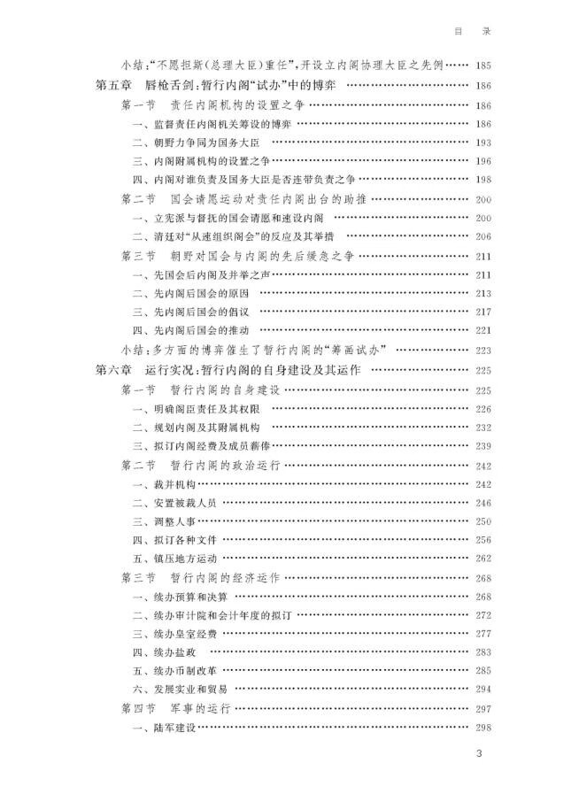 本书破除了学界对暂行内阁的既定认识,作者没有受以往思维定式的束缚,没有简单地依据革命或进步史观来对清末的暂行内阁作价值评判,而是将其放在当时的复杂历史情境中,论述一个危机四伏、行将没落的王朝为挽救朝运所做的自我改良和自我拯救。作者结合历史背景,在指出暂行内阁先天的弊端和局限性的同时,强调暂行内阁是当时现实中的合理过渡,肯定其因应时代呼声(虽然这种响应是低程度的响应),对中国政治、法制进程推动的一面,肯定其施政时在诸多方面的作为。作者力图通过对历史情境、事实的还原、辨析和理解来还暂行内阁以应有的历史地位。这无疑有助于丰富我们对历史的认识和了解。