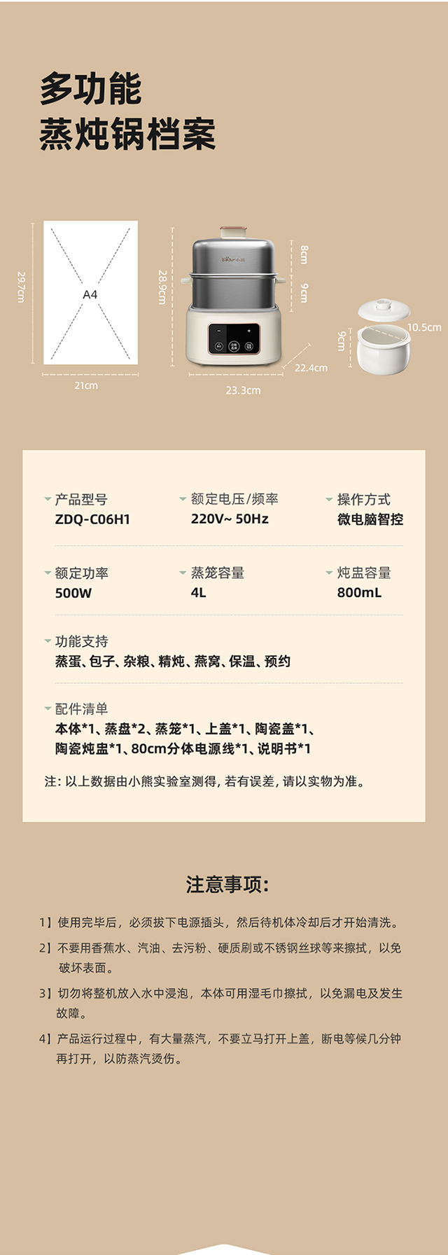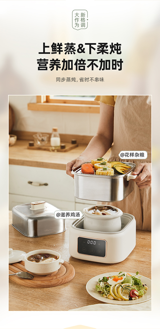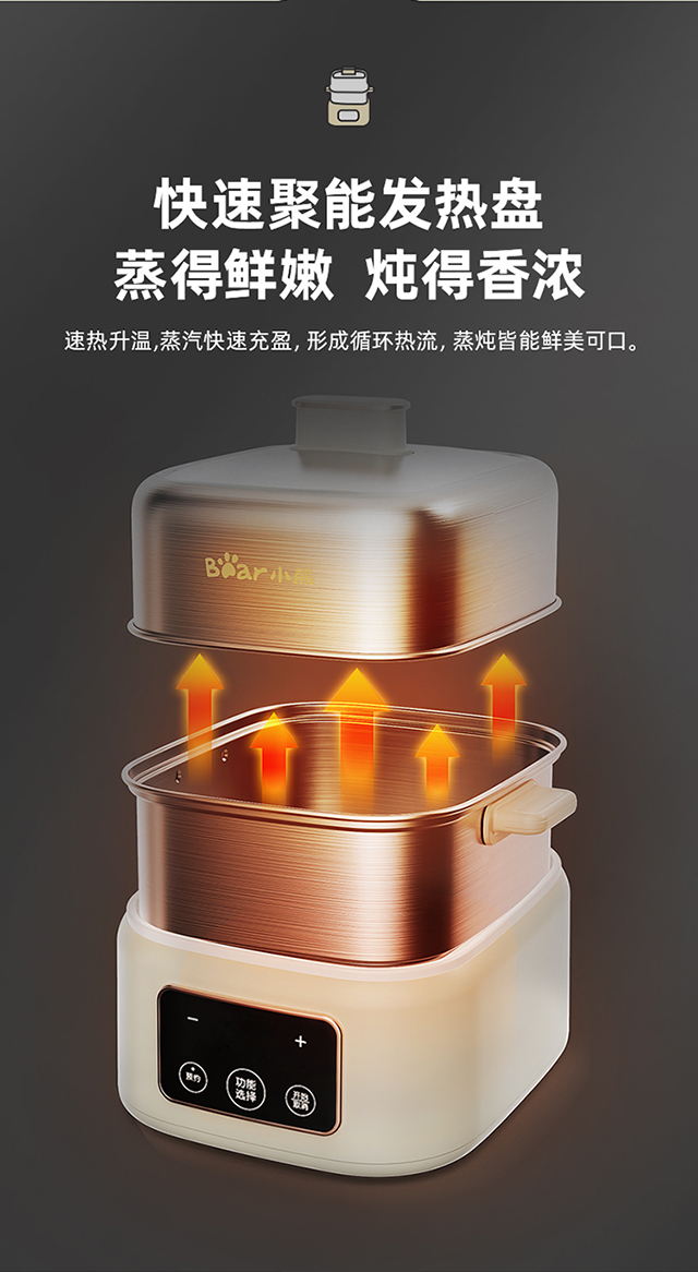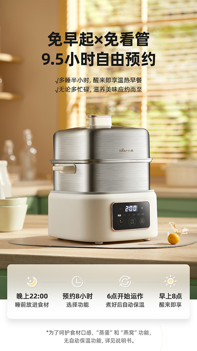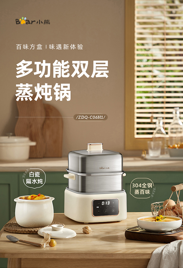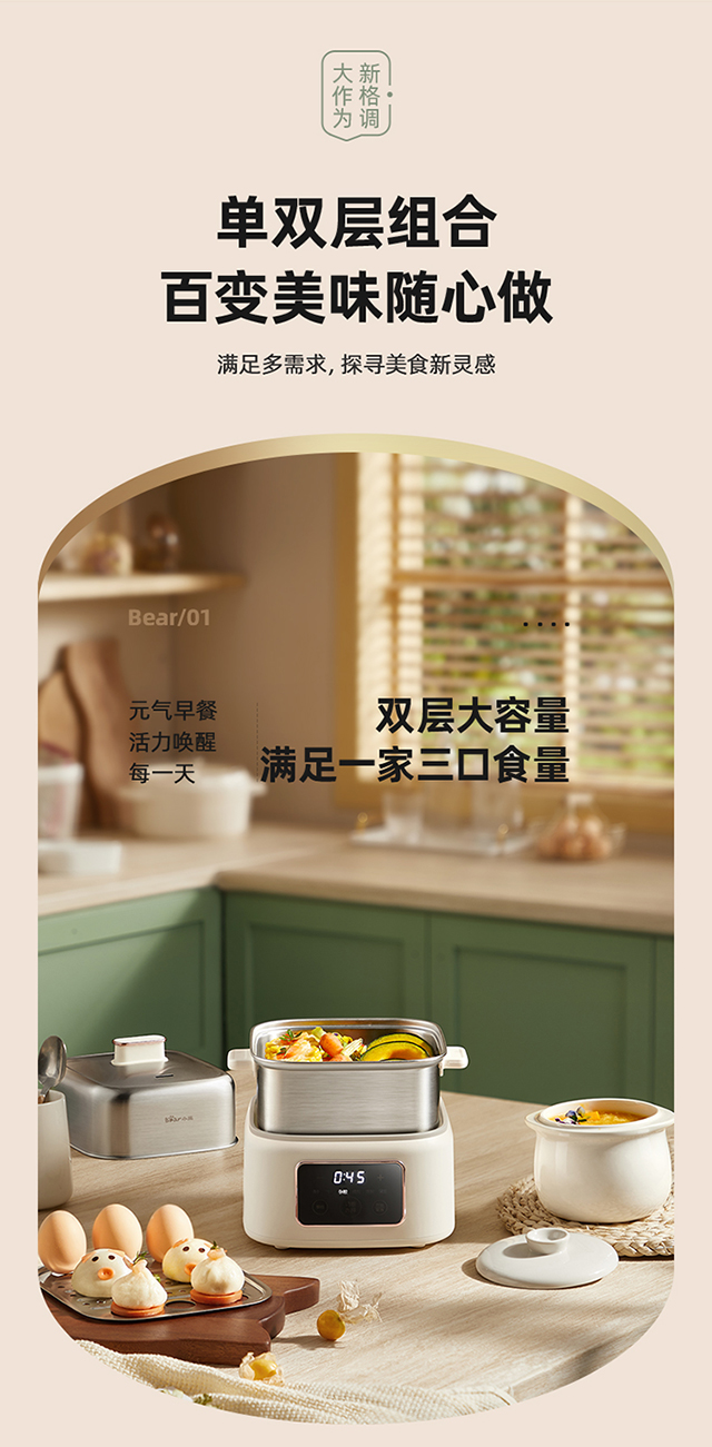 【小程序】小熊煮蛋器(早餐机) 多功能蒸炖锅 ZDQ-C06H1-P01 米黄色 上蒸下炖