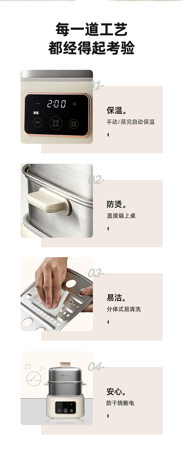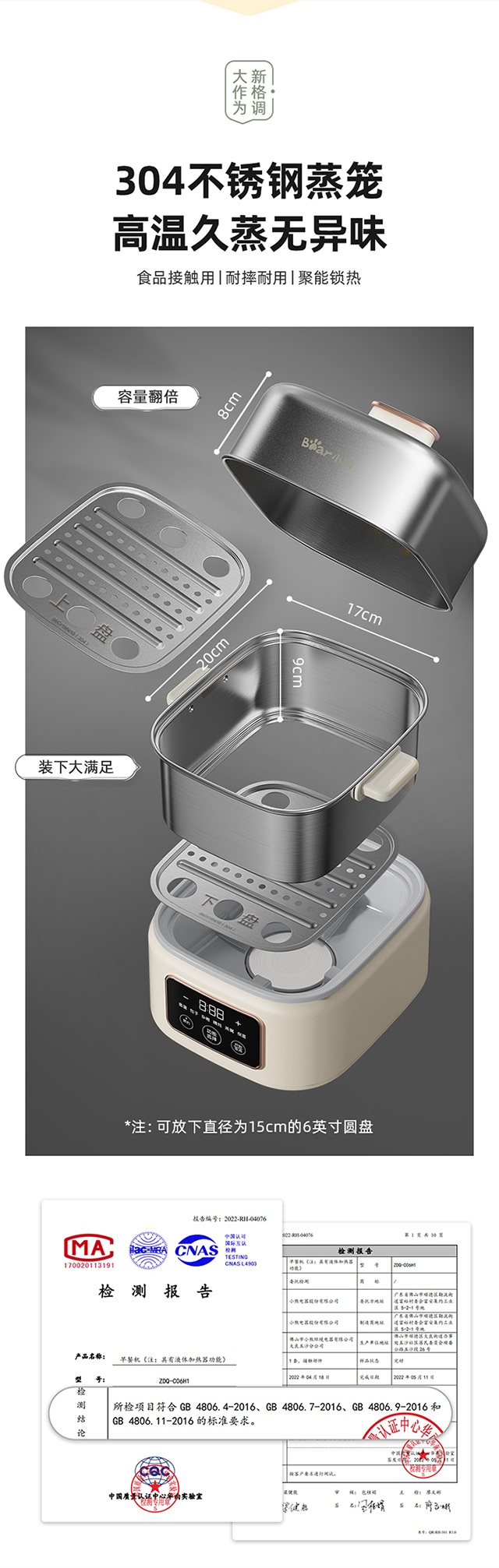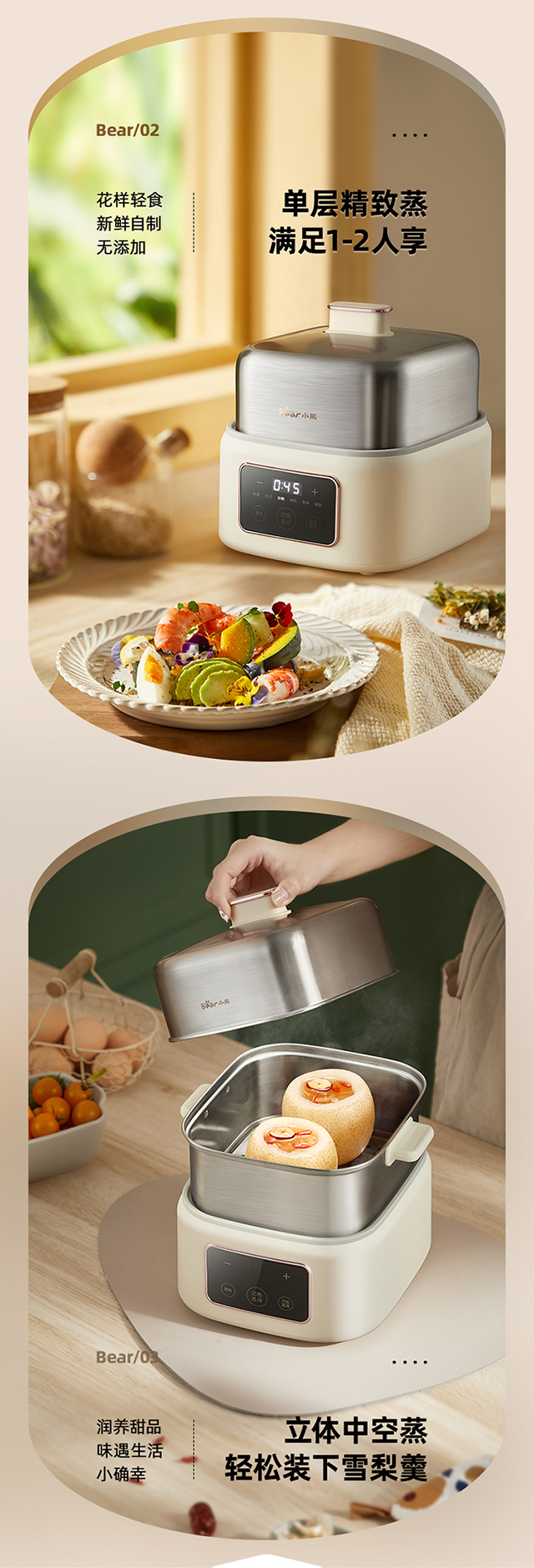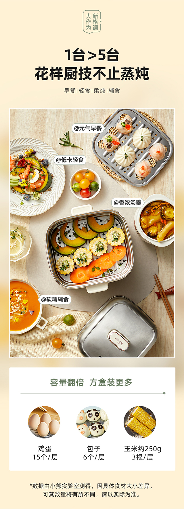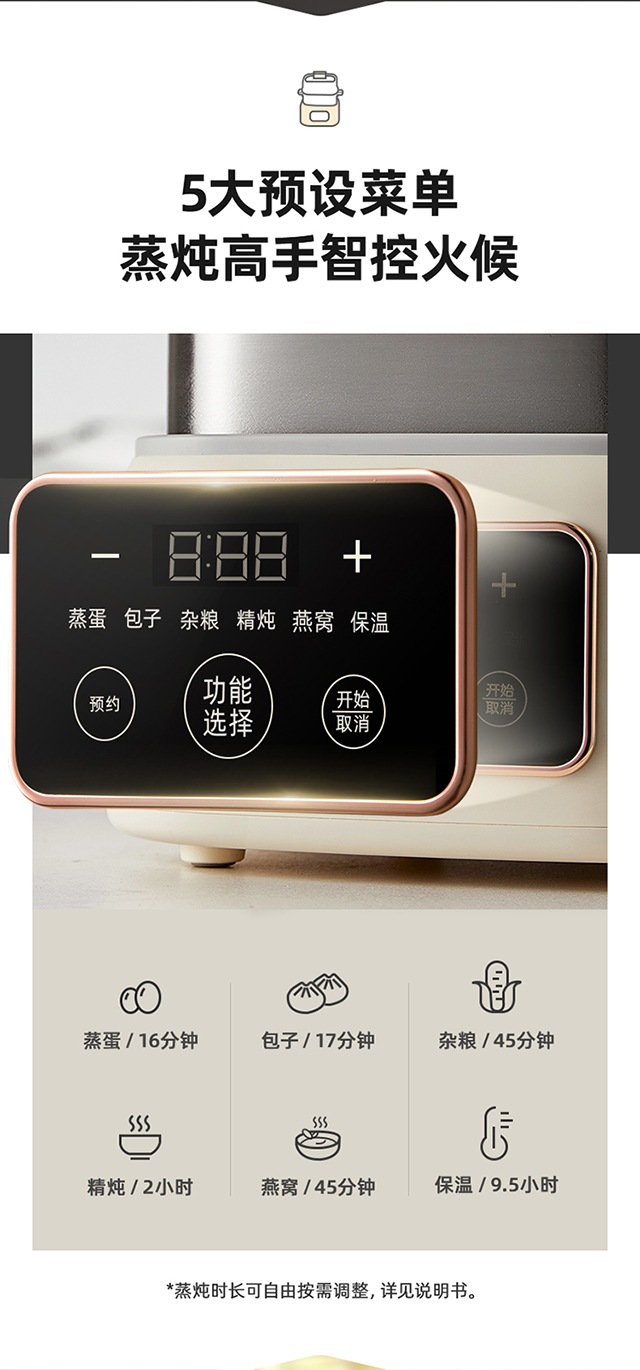 【小程序】小熊煮蛋器(早餐机) 多功能蒸炖锅 ZDQ-C06H1-P01 米黄色 上蒸下炖