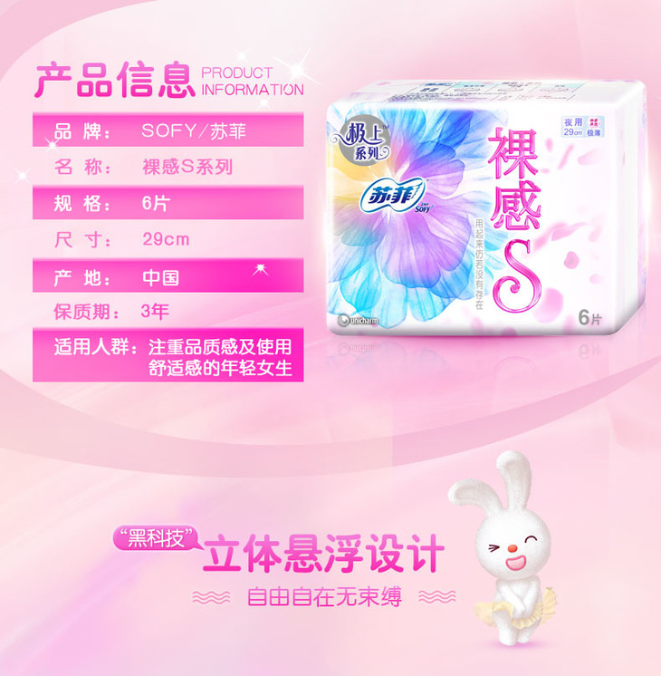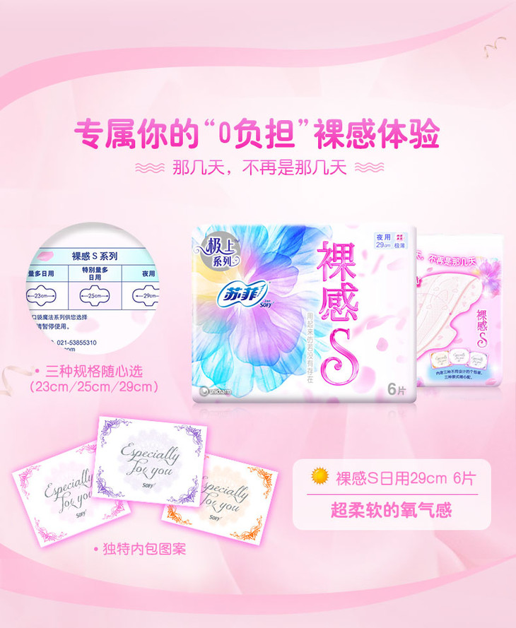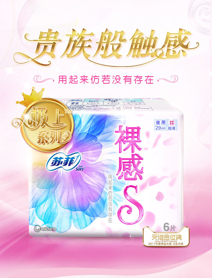 苏菲裸感极薄夜用棉柔卫生巾29cm6片