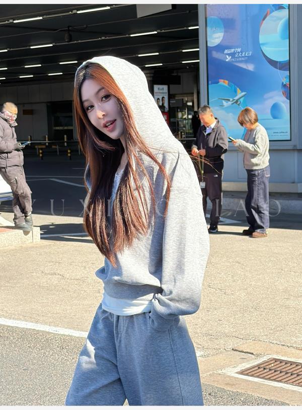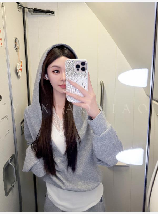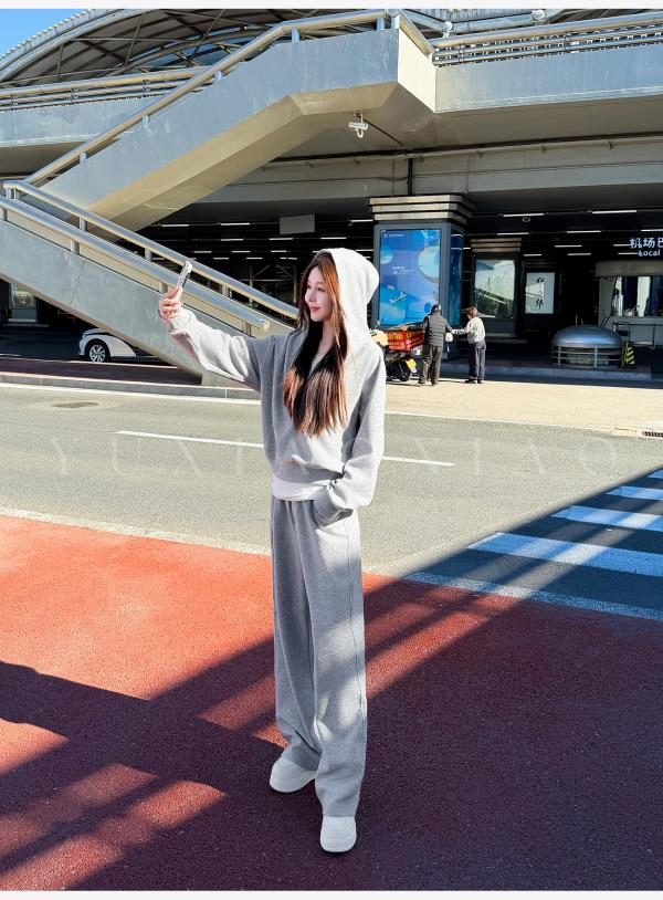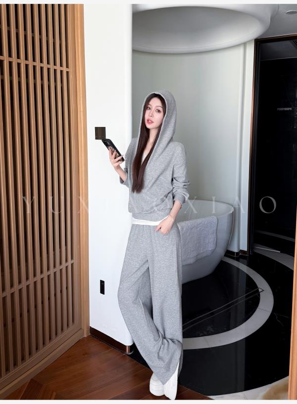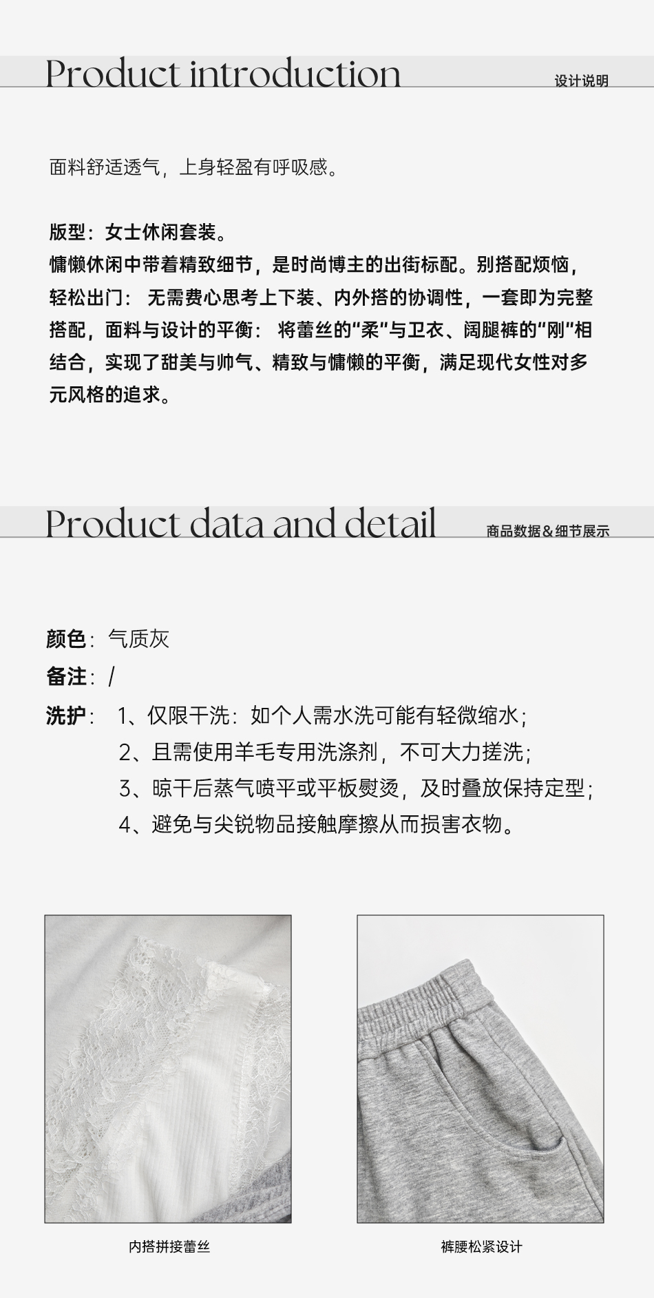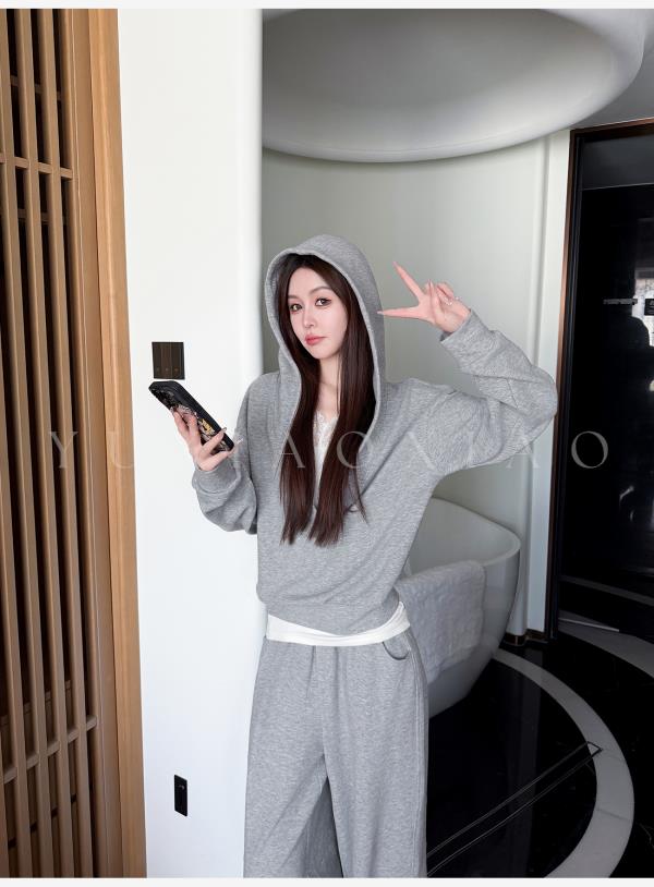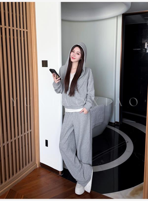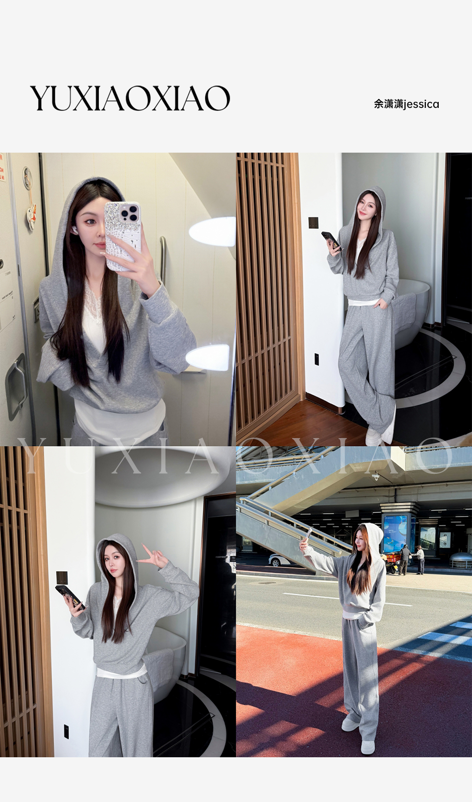 余潇潇【电台情歌】含羊毛天丝休闲连帽卫衣&阔腿裤&蕾丝内搭三件套