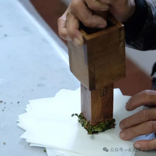 揉捻叶,木槌加压造型