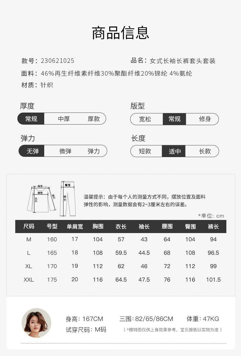 【门店同款】康妮雅睡衣家居服 女式长袖长裤套头套装